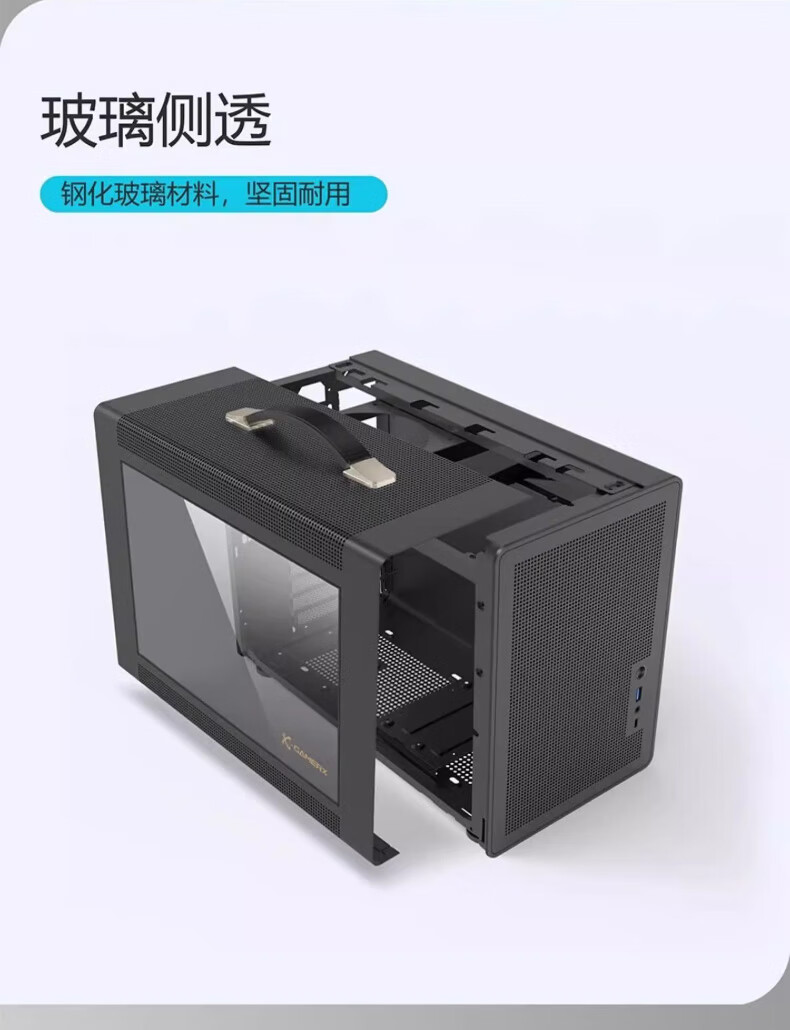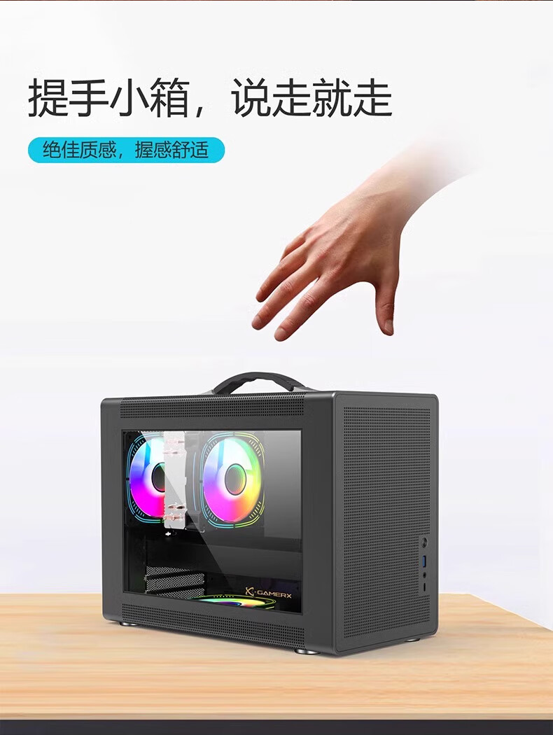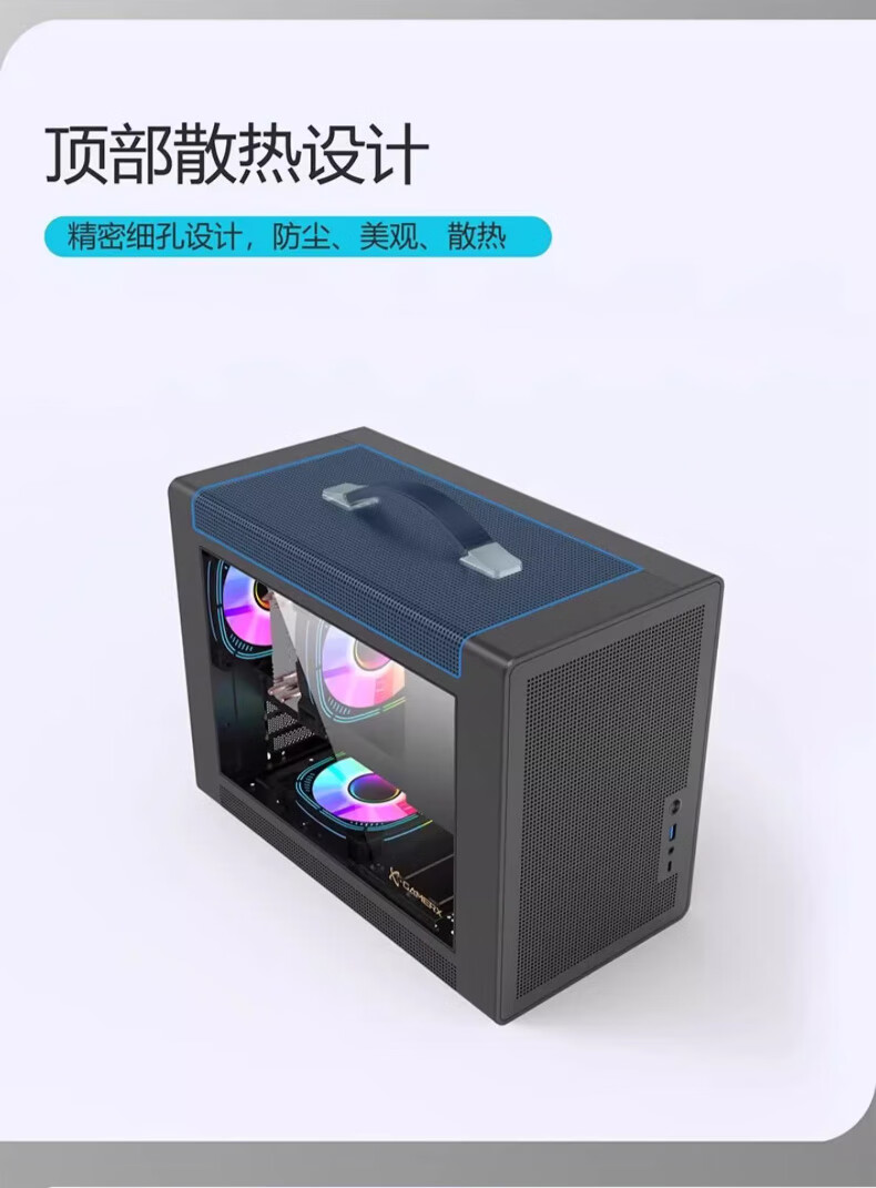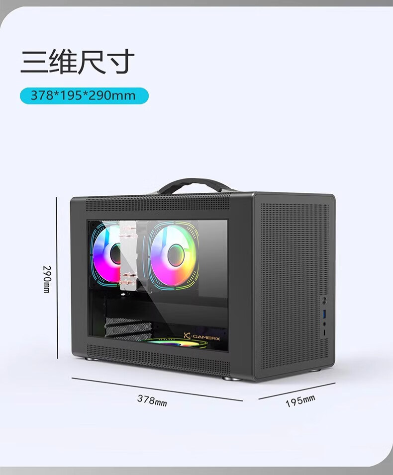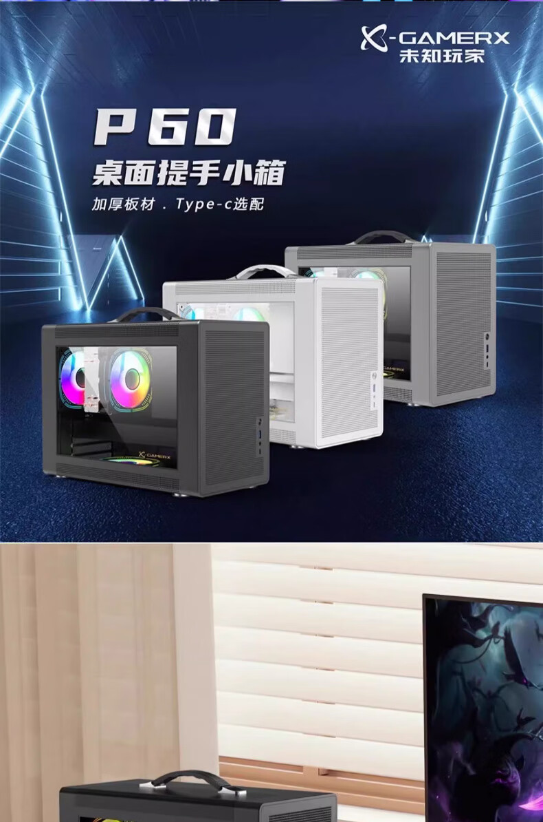 Unknown Player P60 Portable MATX Compact MINI Desktop Small Chassis Glass Side Transparent ITX Desktop TypeC Gaming Mini Computer Chassis P60 Chassis - Black + Prism 4pro Fans 3 pcs 2 positive 1 reverse