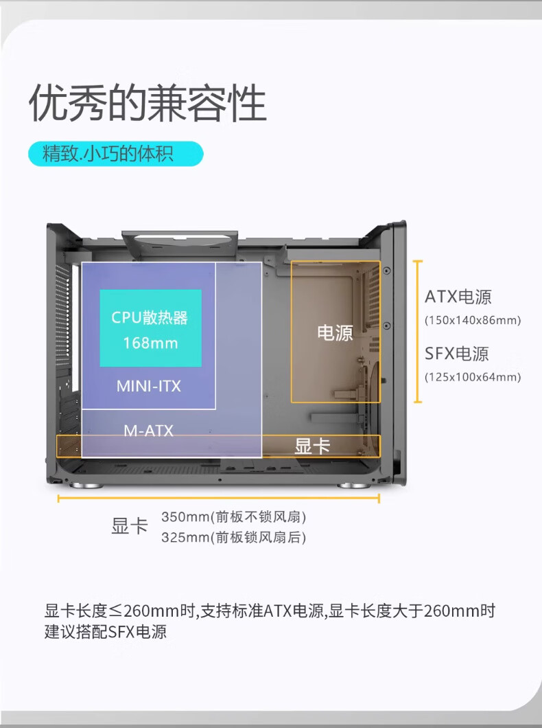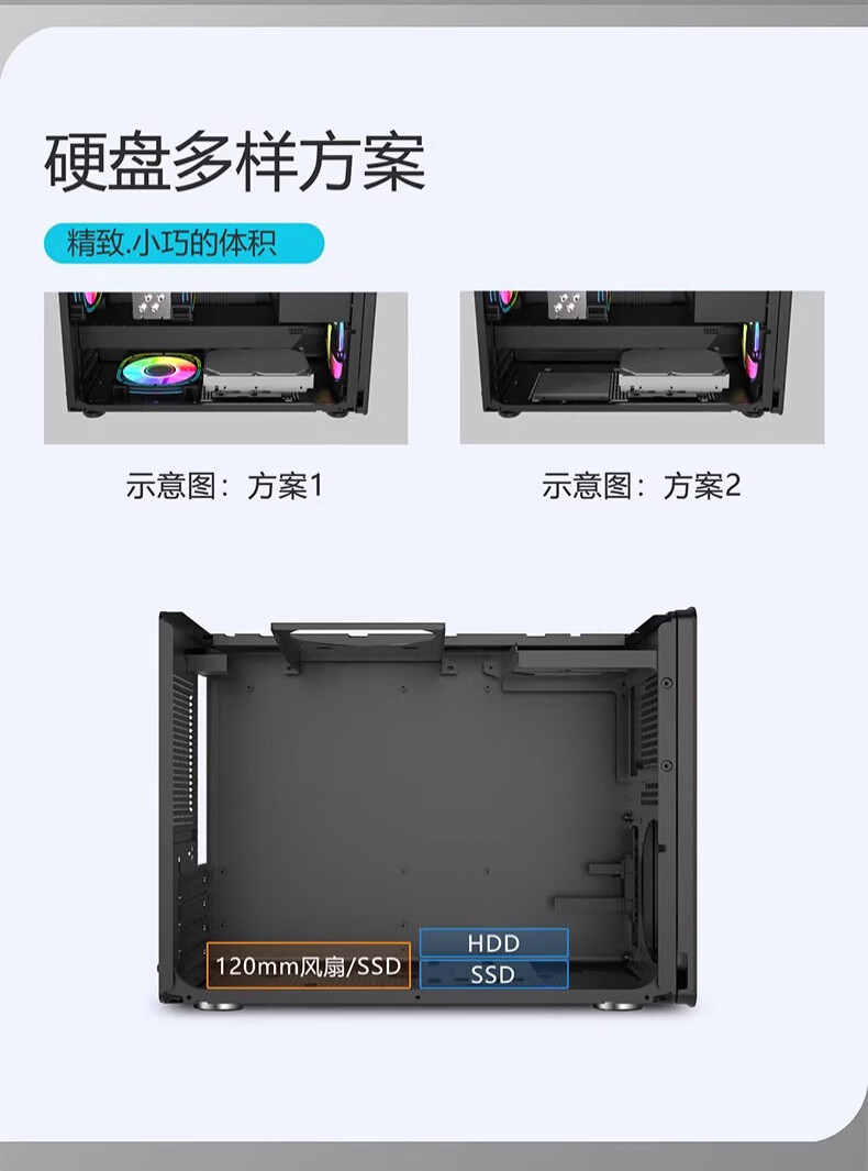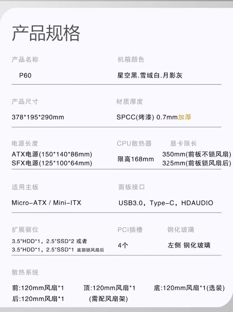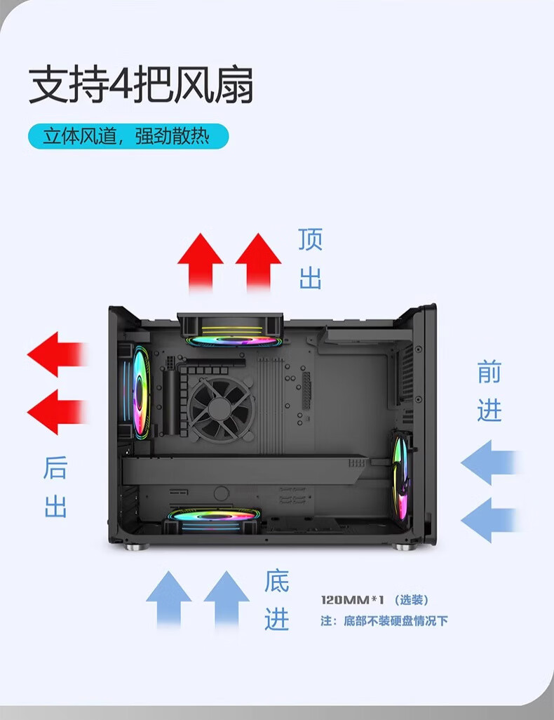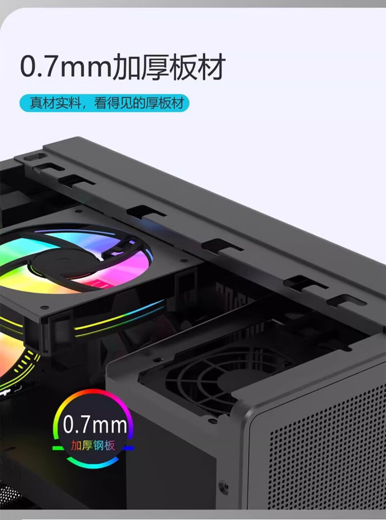 Unknown Player P60 Portable MATX Compact MINI Desktop Small Chassis Glass Side Transparent ITX Desktop TypeC Gaming Mini Computer Chassis P60 Chassis - Black + Prism 4pro Fans 3 pcs 2 positive 1 reverse