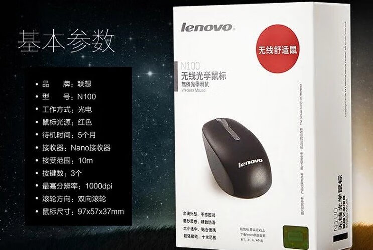 沃优选【京仓配送】联想USB无线鼠标n100笔记本办公游戏电脑台式机小新 联想充电款无线鼠标(黑色 标配