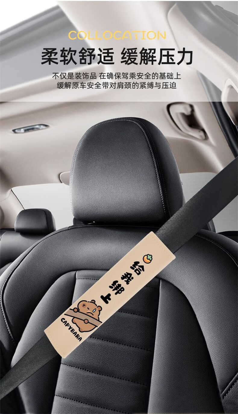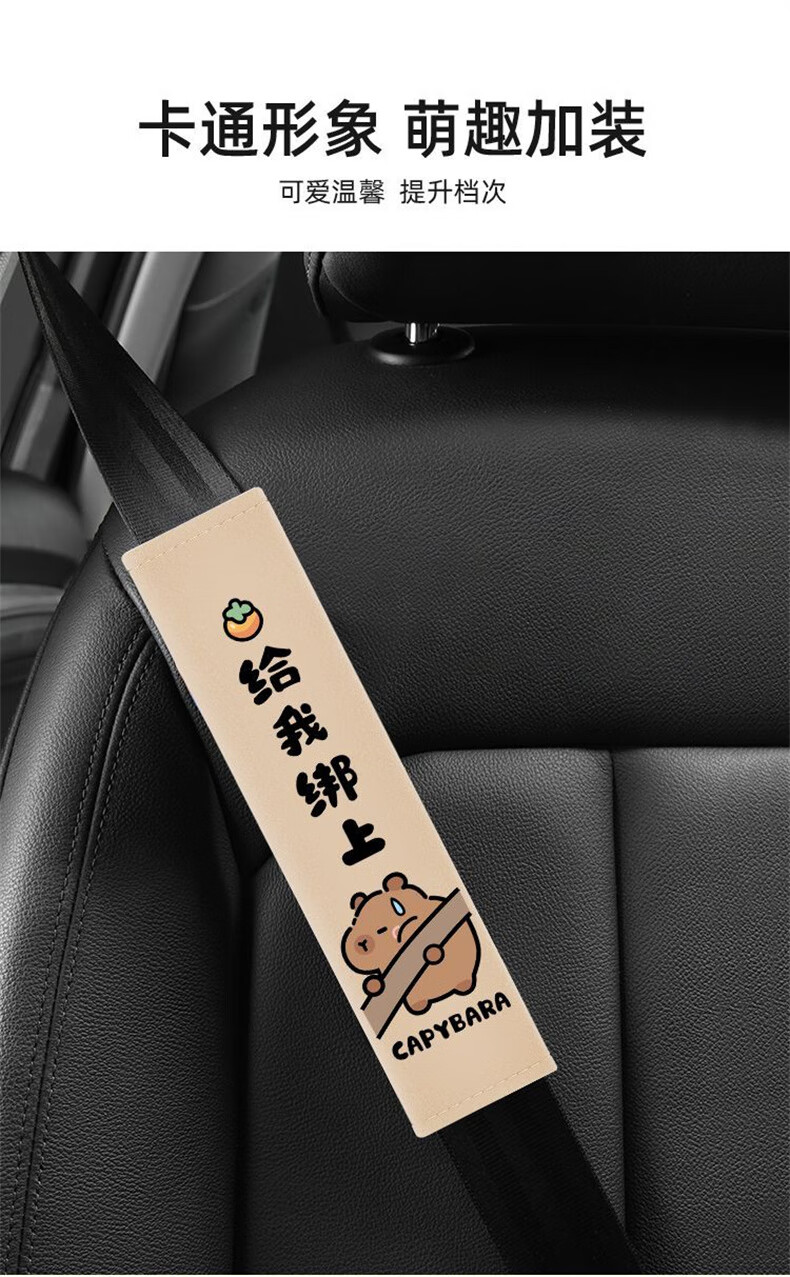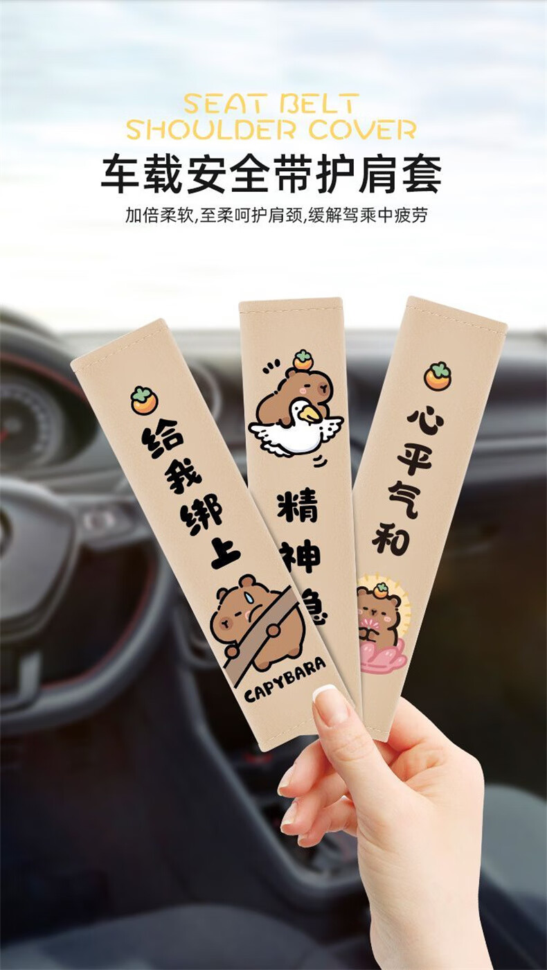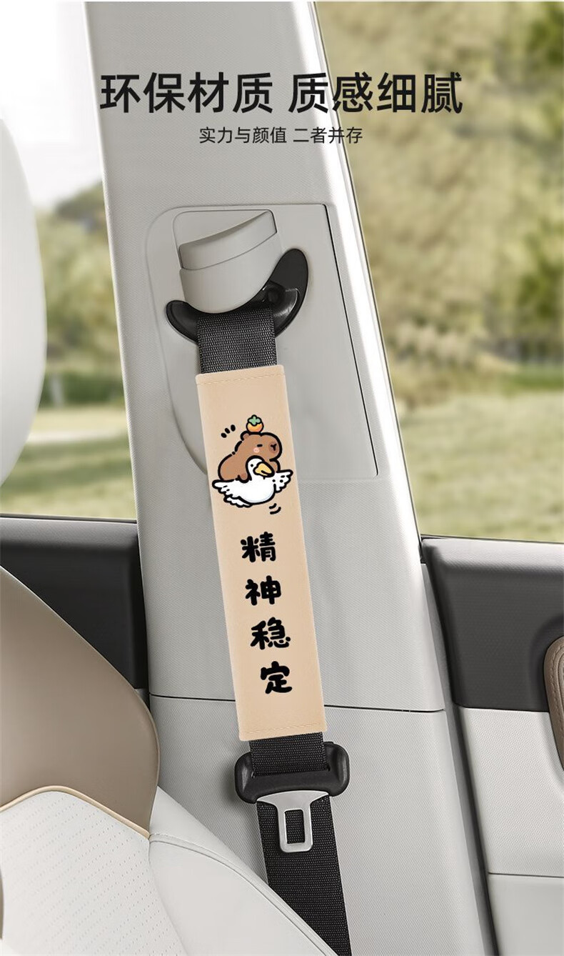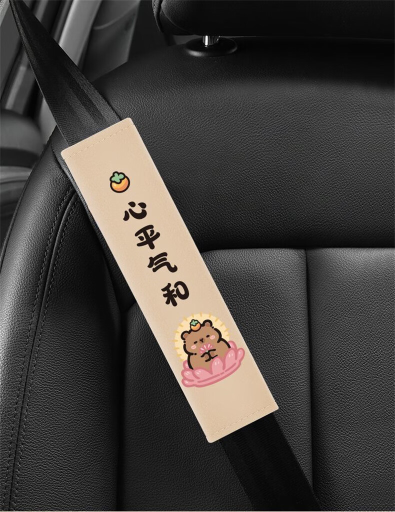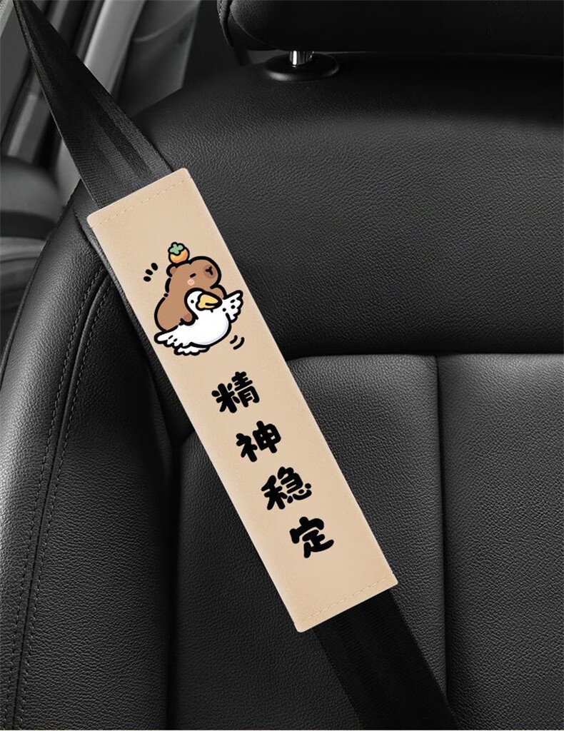 Qi Selection Kapibara Car Seat Belt Shoulder Cover Child Seat Belt Anti-Strangle Shoulder Strap Decoration Car Supplies Practical Black Mental Stability - Pack of Two