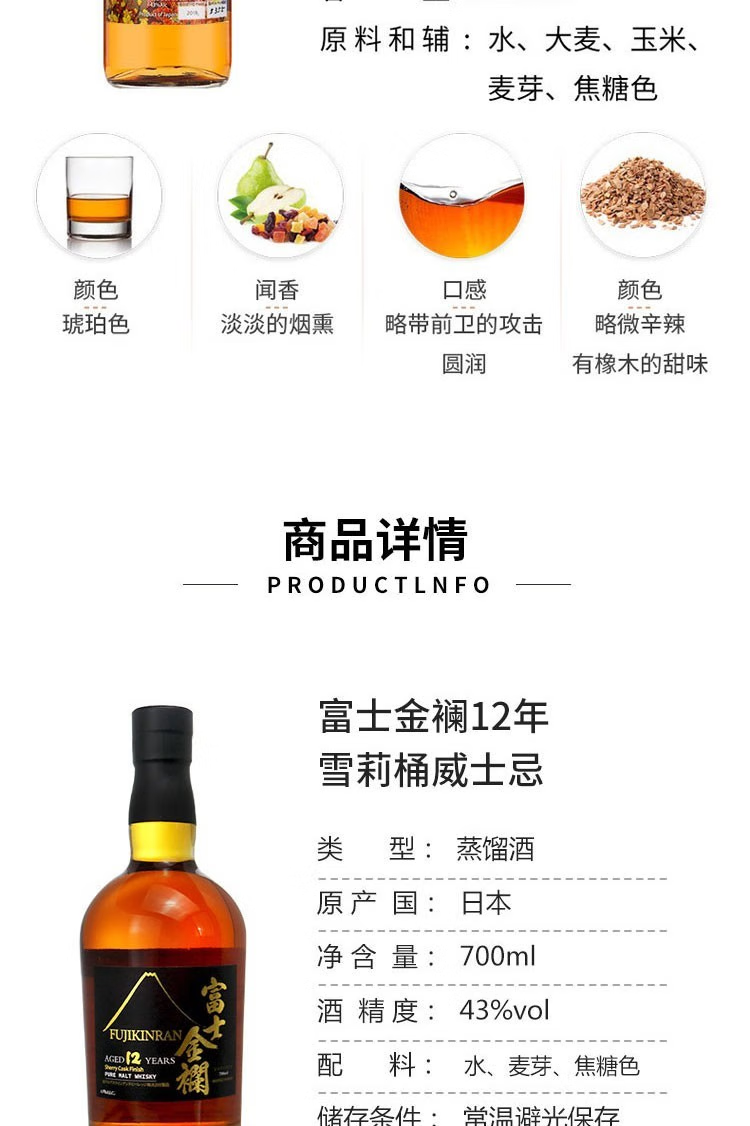 富士金襕富士金澜 调和威士忌 日本进口洋酒 【无盒】富士金襕双桶700ml