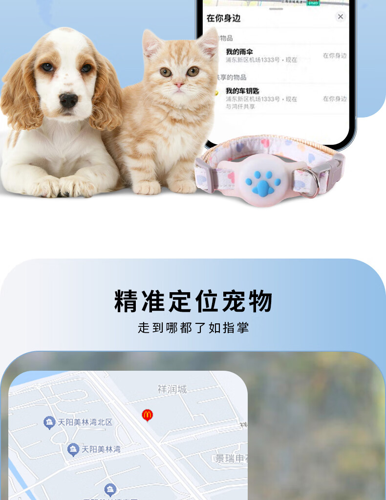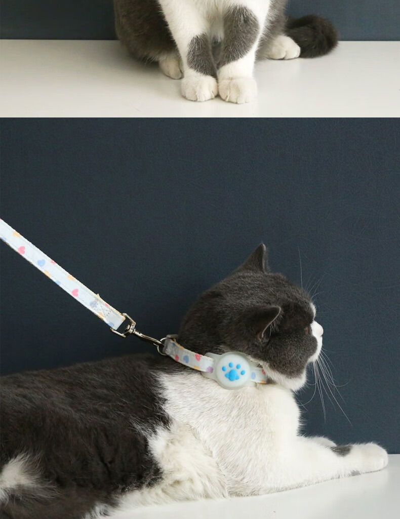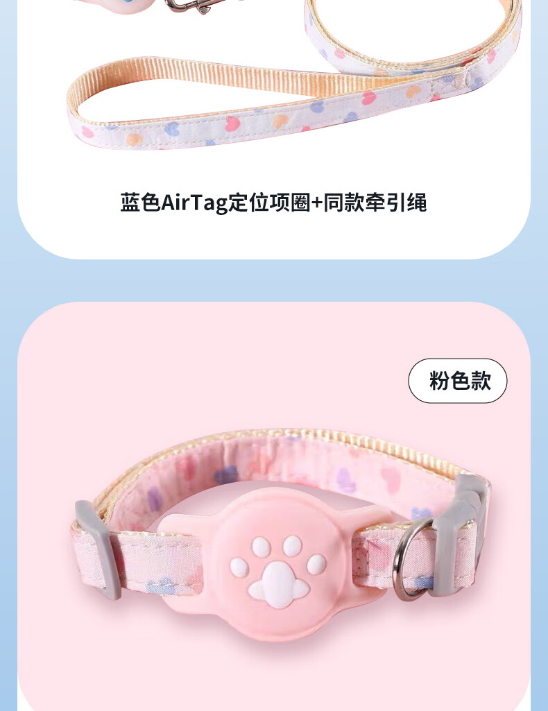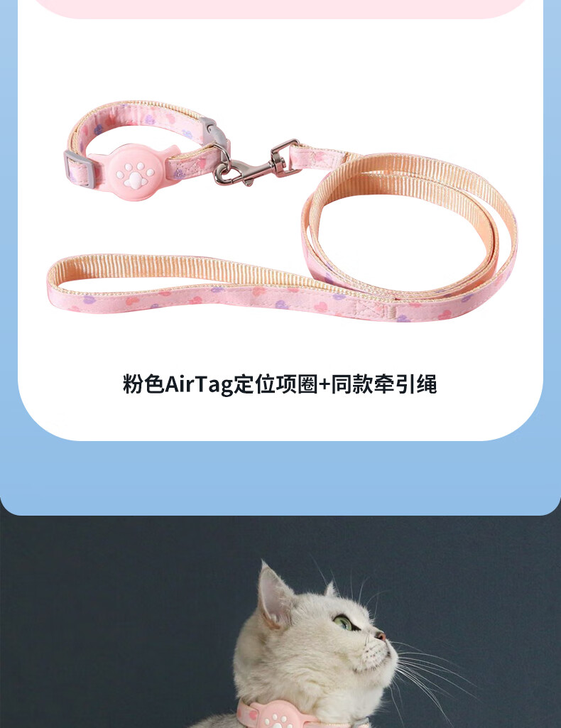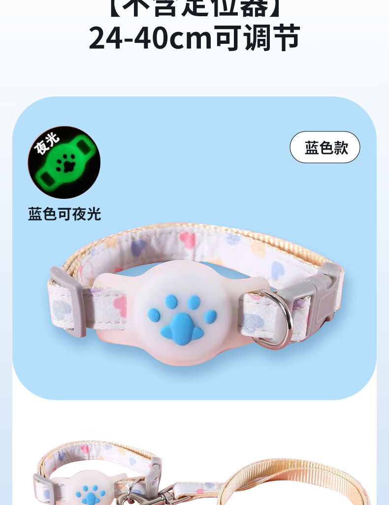 创客尚No.1宠物定位项圈猫咪狗狗追踪器gps动物追踪器airtag跟踪器防丢器防丢失狗子电子颈圈追跟神器 蓝色猫爪项圈+牵引绳+365天续航+全球定位 苹果定位器