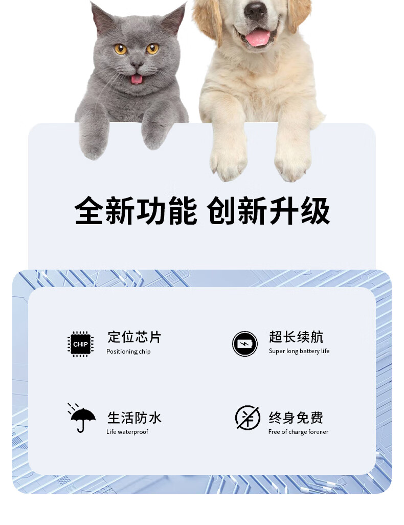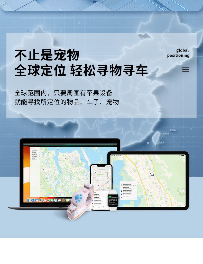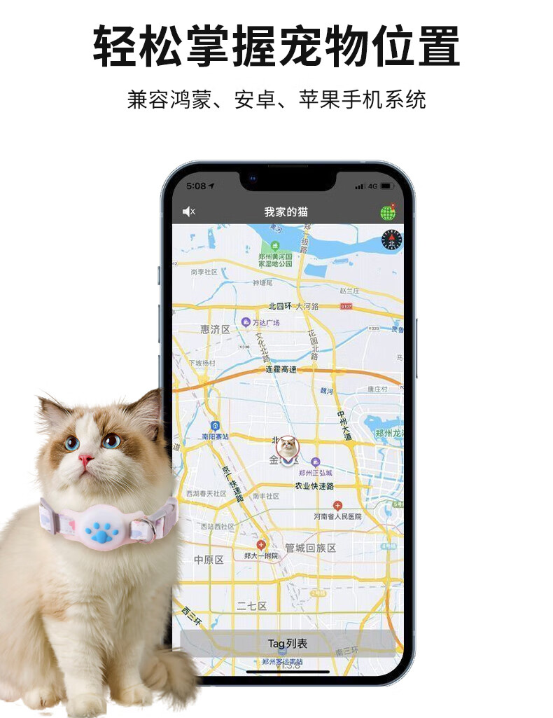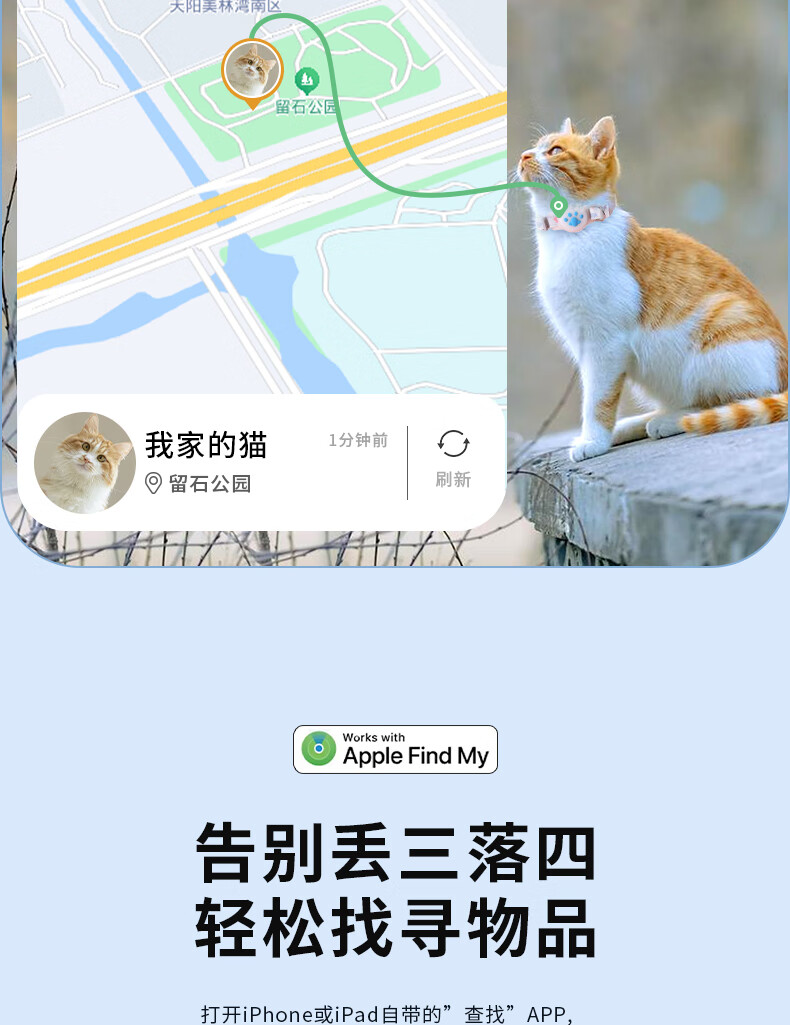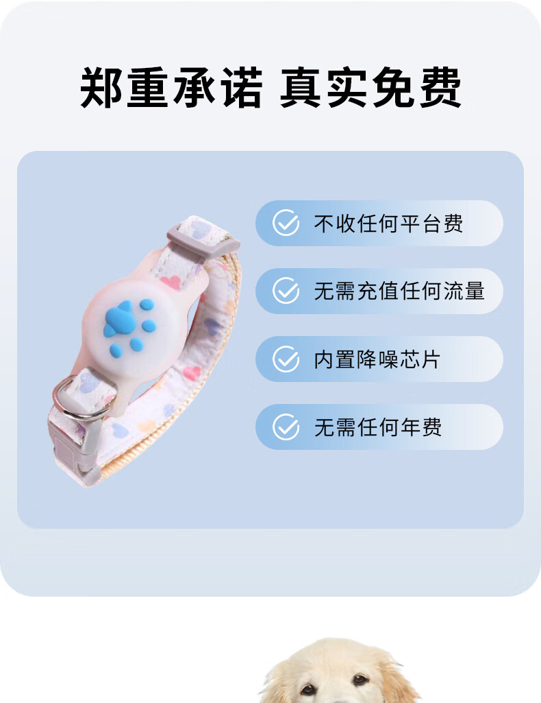 创客尚No.1宠物定位项圈猫咪狗狗追踪器gps动物追踪器airtag跟踪器防丢器防丢失狗子电子颈圈追跟神器 蓝色猫爪项圈+牵引绳+365天续航+全球定位 苹果定位器