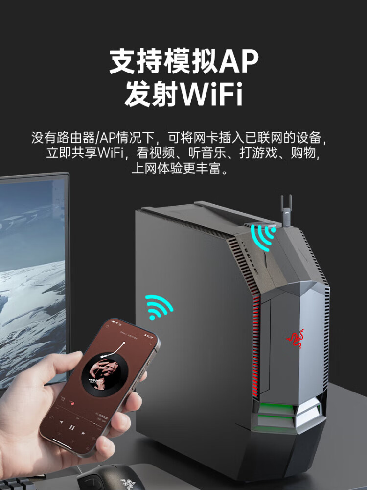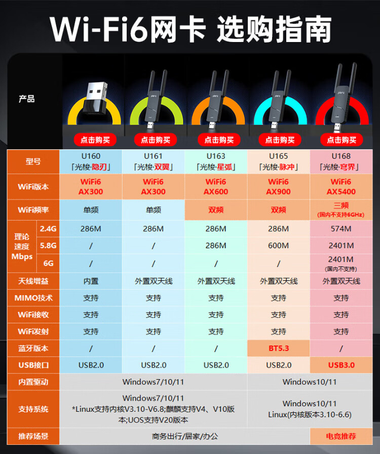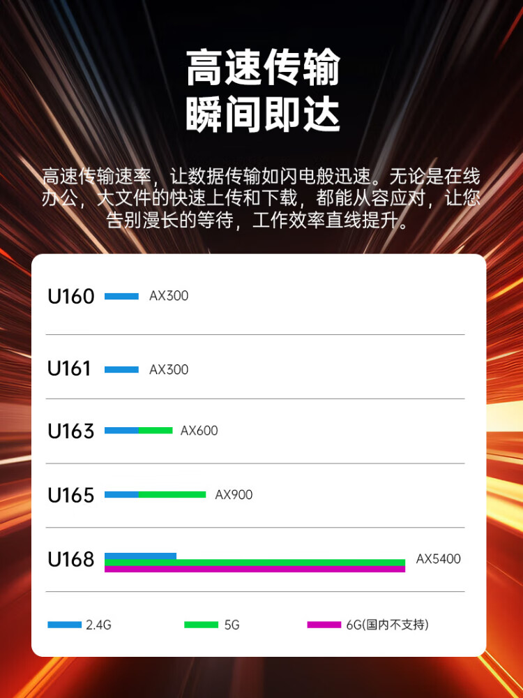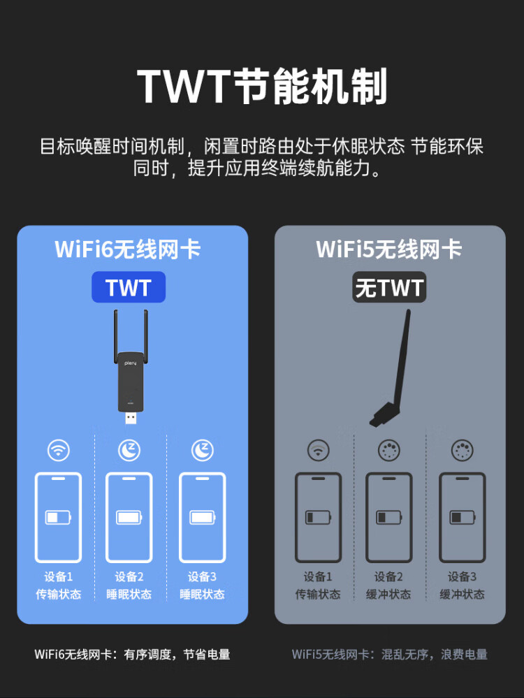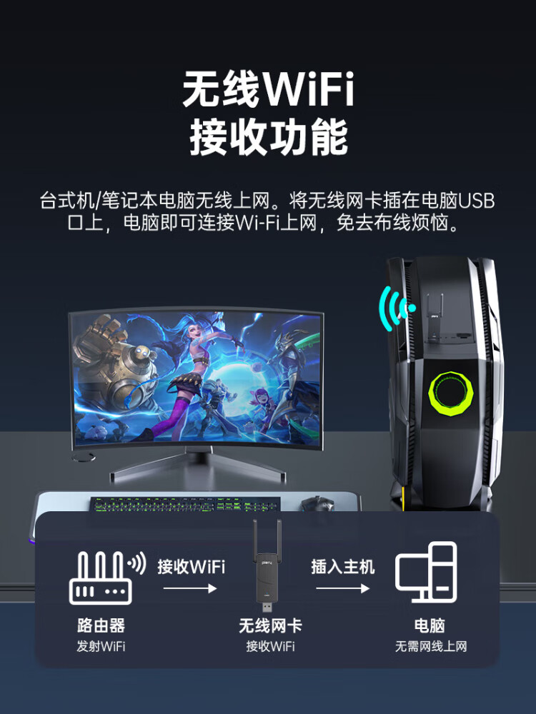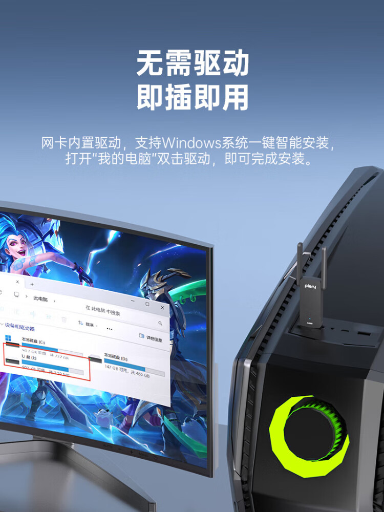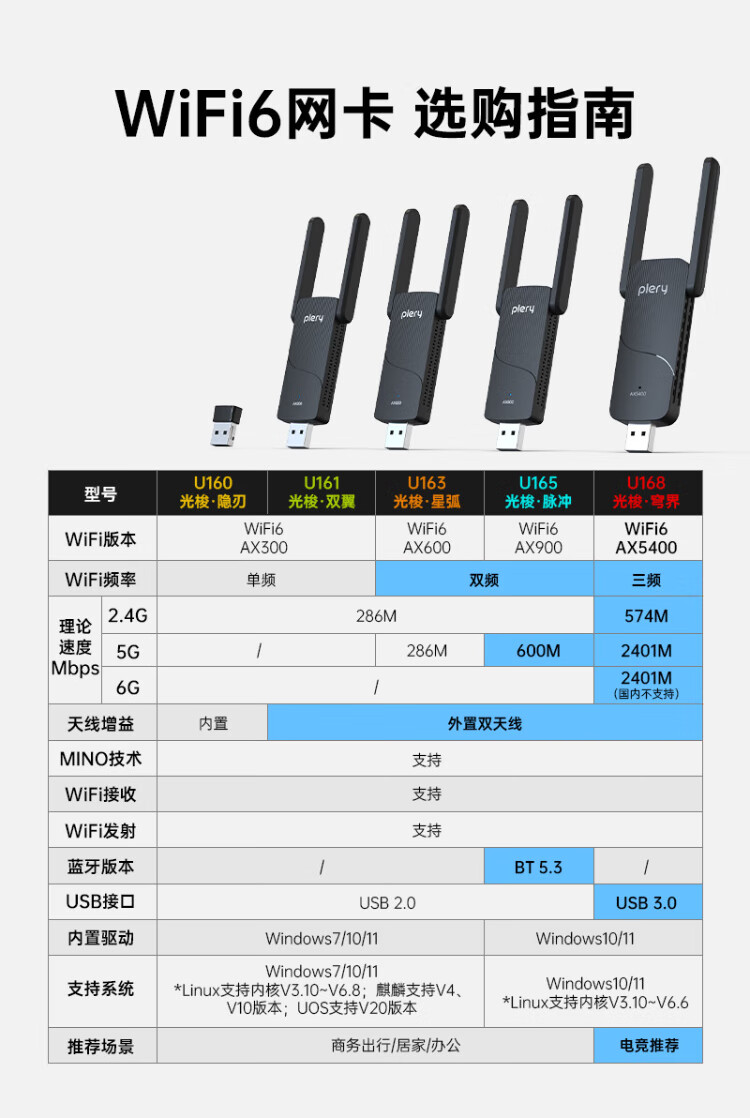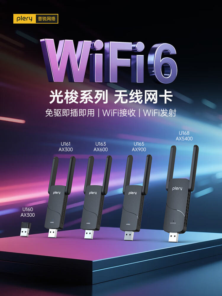 PLERY U160 USB wireless network card WiFi6 smart drive-free AX300 wireless WiFi receiver desktop laptop external host network transmitter light shuttle/star arc AX600 dual frequency/WiFi6/wall-through model