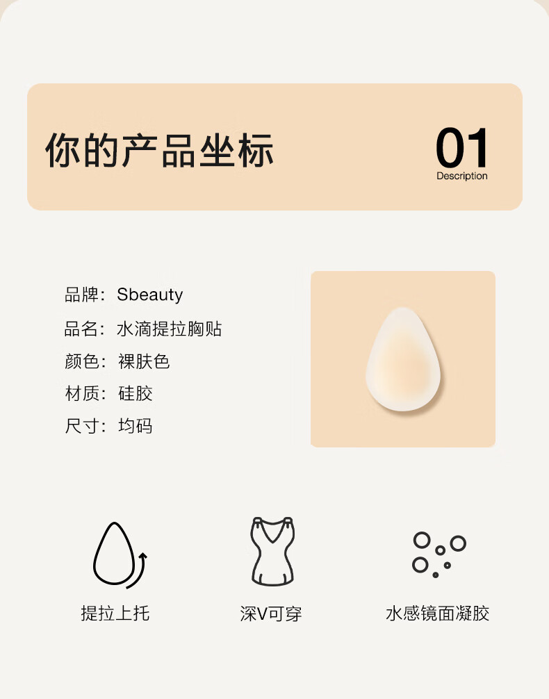 SBEAUTY Yi Mengling Sbeauty Wassertropfen-Lifting-Brustpflaster Damen-Silikon-Antikonvex-Brustpflaster HH nackte Hautfarbe Wassertropfen-Stil 1 Paar One-Second-Lifting