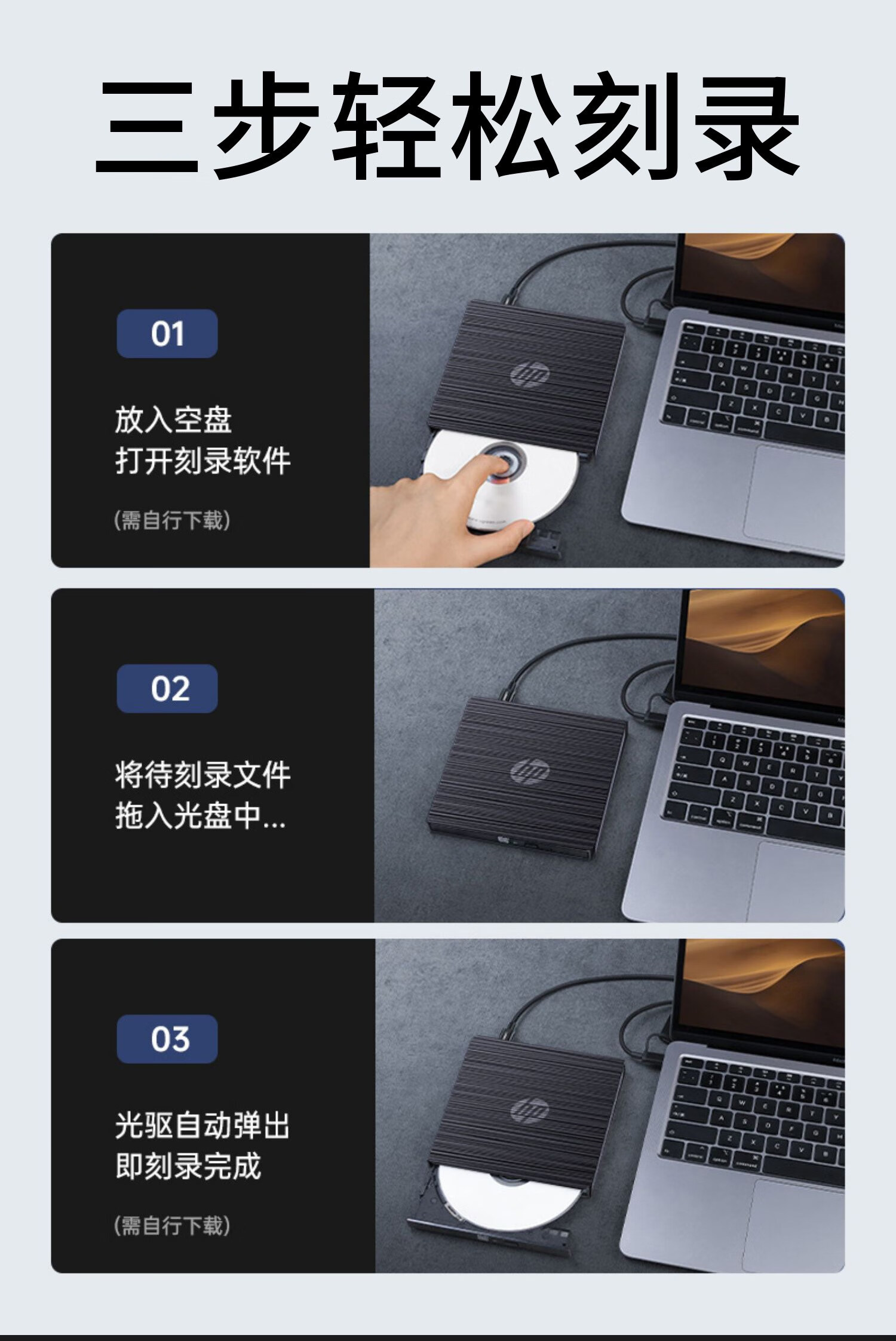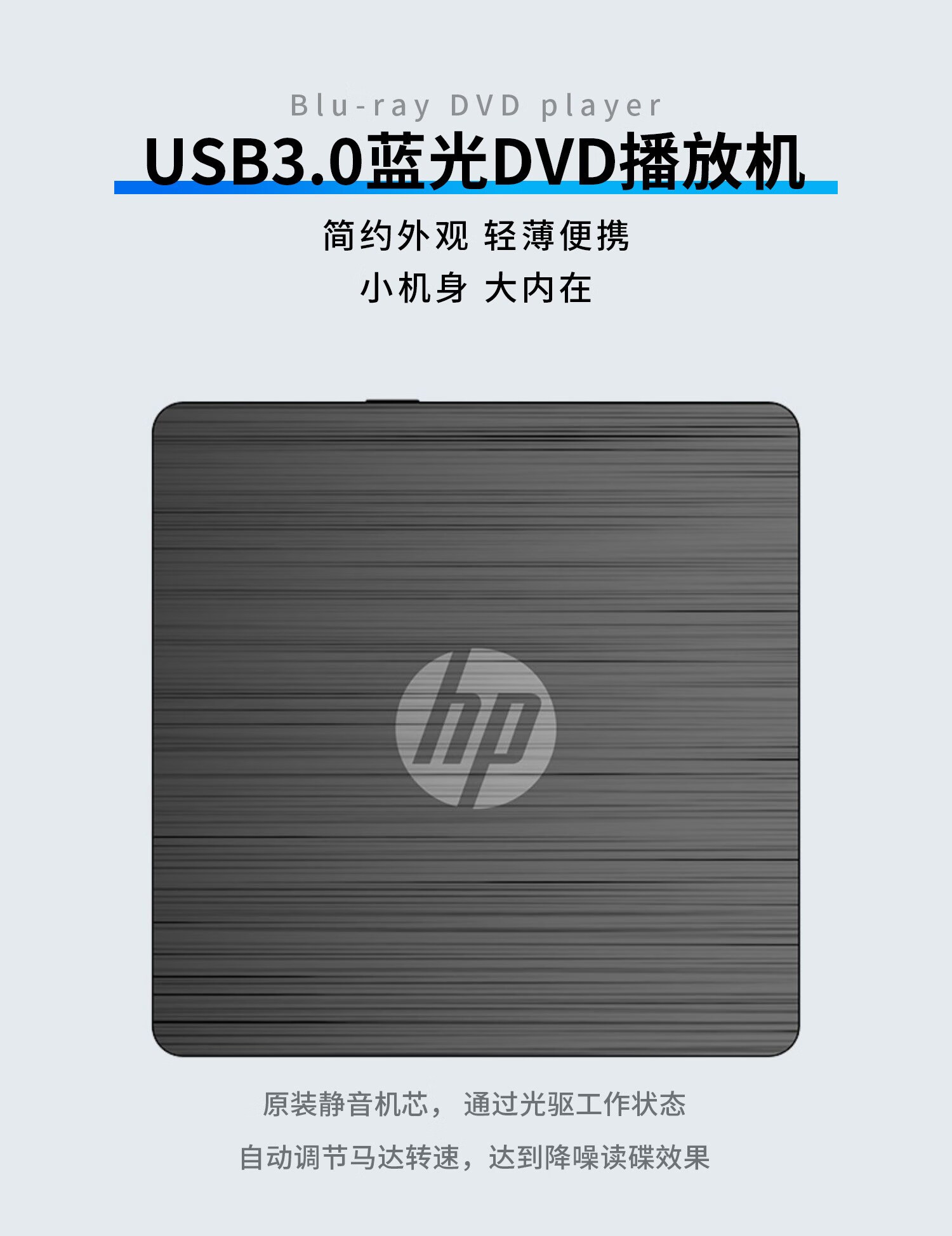 惠普外置蓝光DVD刻录机BD/DVD/CD刻录播放读取电脑通用 蓝光DVD.CD.BD刻录播放BU20