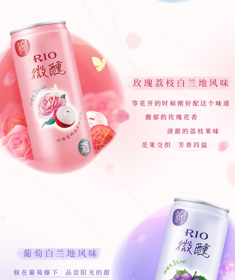 RIO T (RIO) foreign wine pre-mixed cocktail, tipsy, refreshing, strong and refreshing series of low-alcohol wine 330ml combination, tipsy rose lychee*5 cans + random drinks*1 can