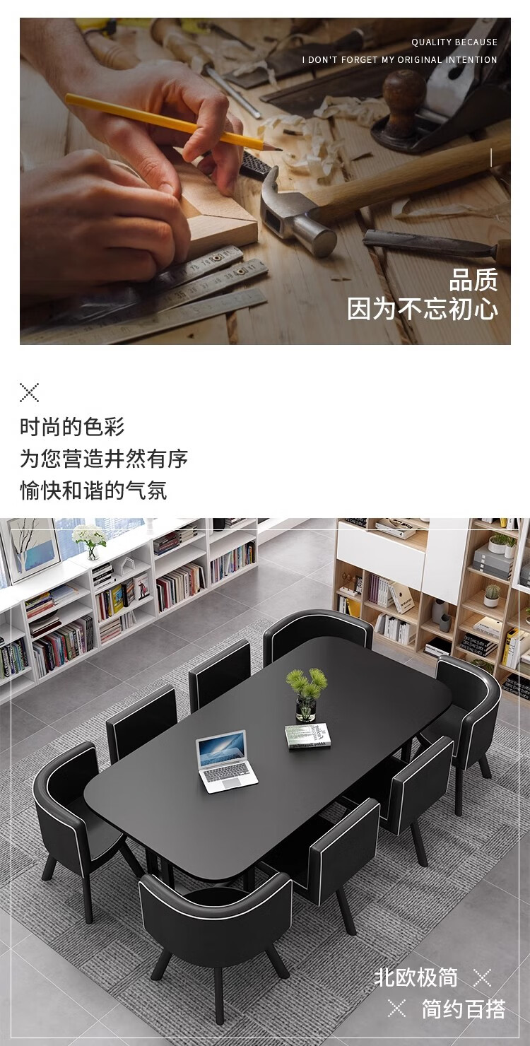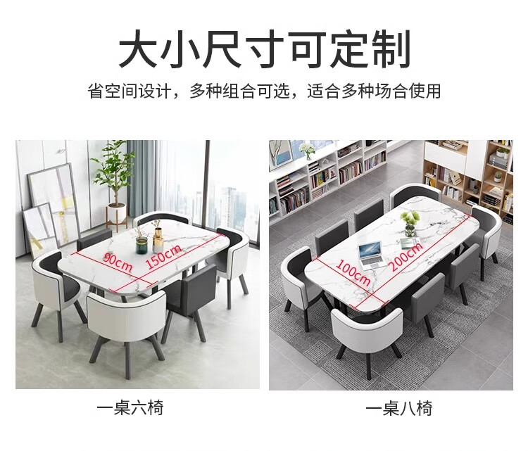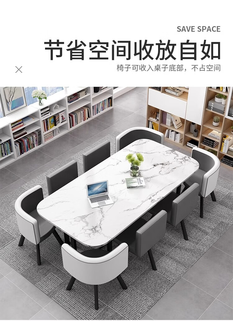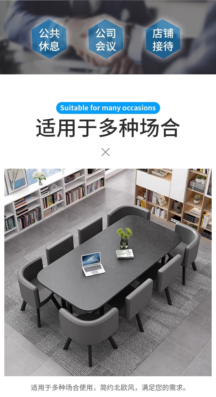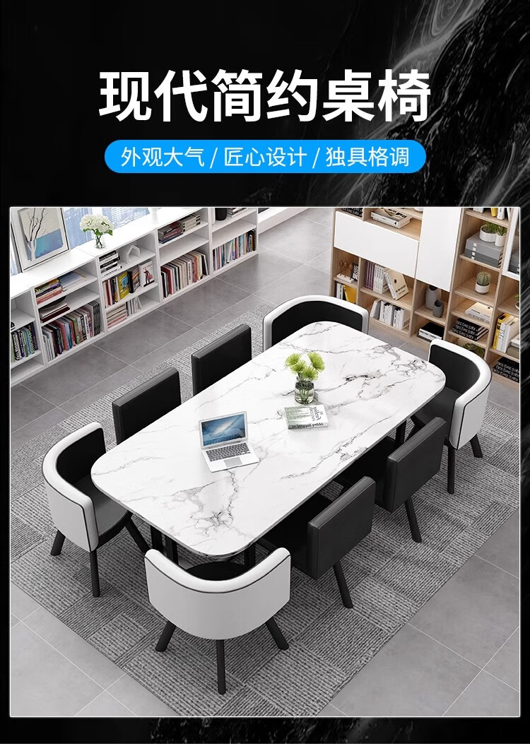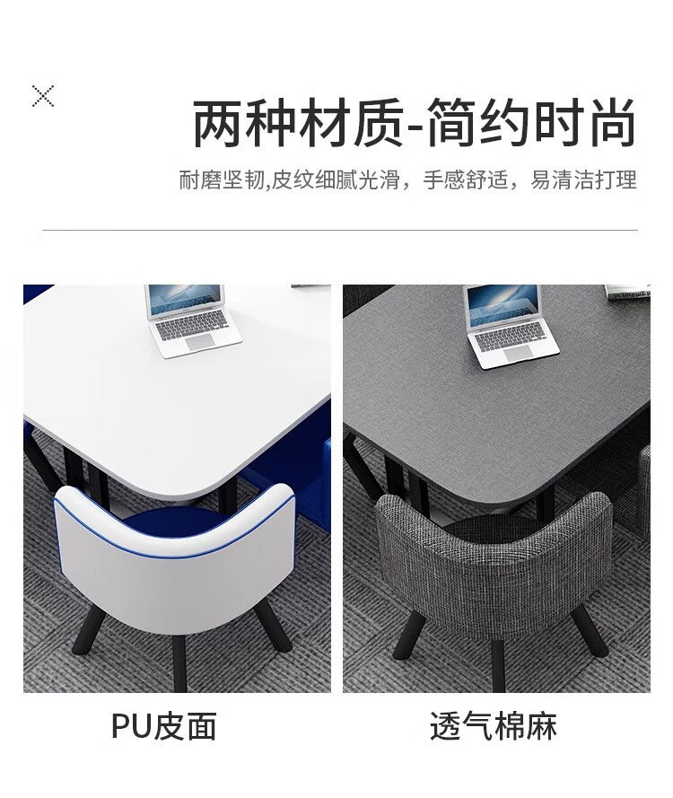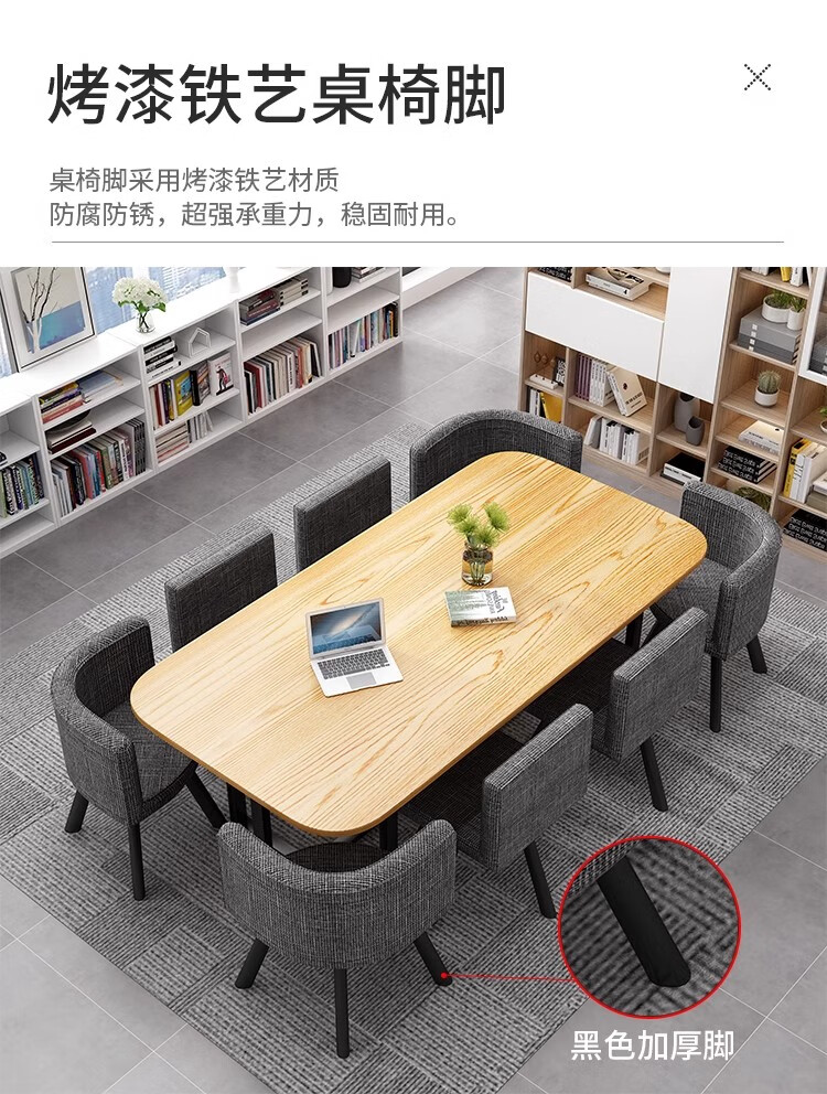 Xiangmaoheng small conference table 8 people simple modern business training rectangular long table reception and negotiation table and chair combination 90*150 imitation white table gray cloth