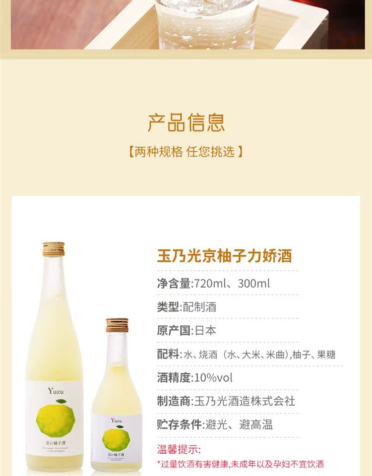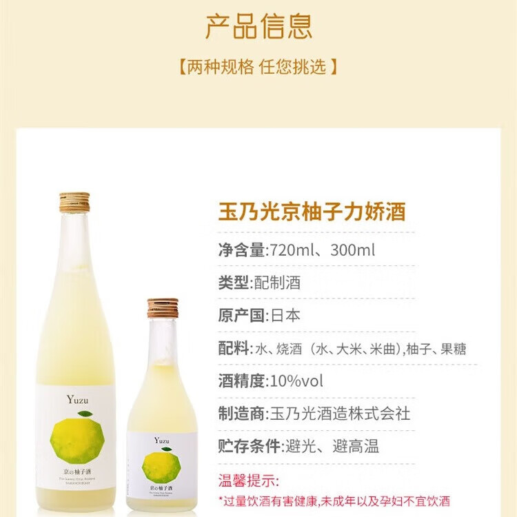 玉乃光京柚子力娇酒 日本进口果酒 鲜榨柚子酒 女生微醺低度利口酒洋酒 玉乃光 京柚子力娇酒 300ml