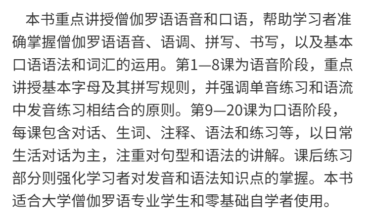 Базовый сингальский язык (1) Профессиональные университетские учебники, книги по изучению малых языков, произношению, разговорной речи и правописанию с нуля.