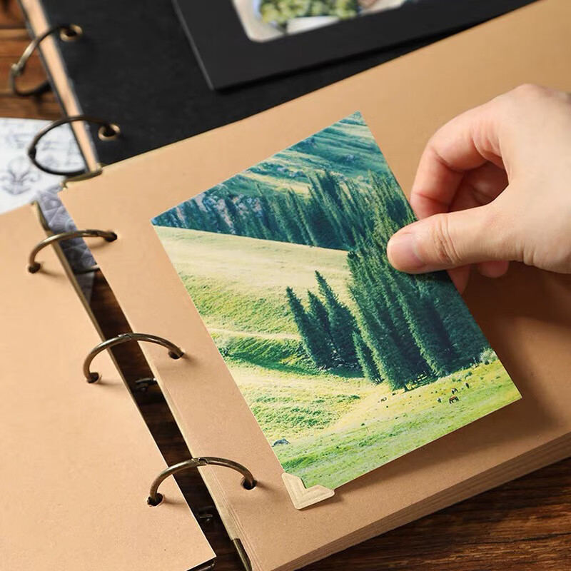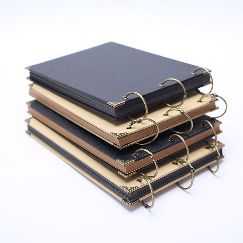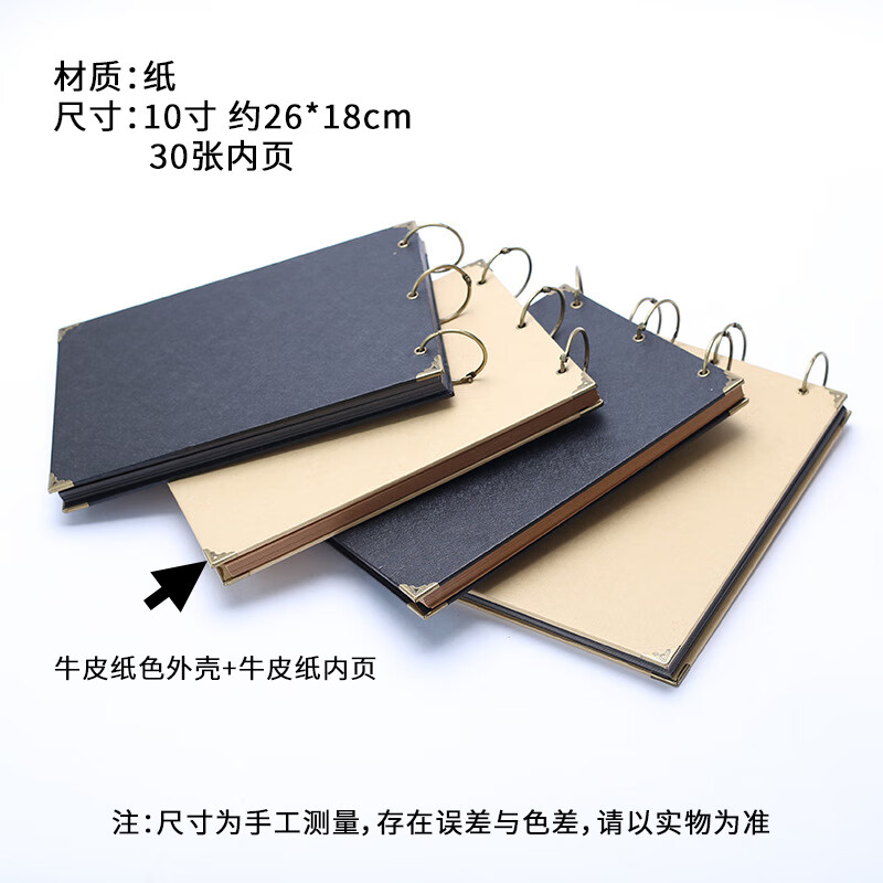 坤随 复古牛皮纸diy相册空白相册手账本手工制作自粘贴式情侣照片纪念册影集收纳册宝宝成长记录册 【30张黑色纸内页】黑色封面活页本*1