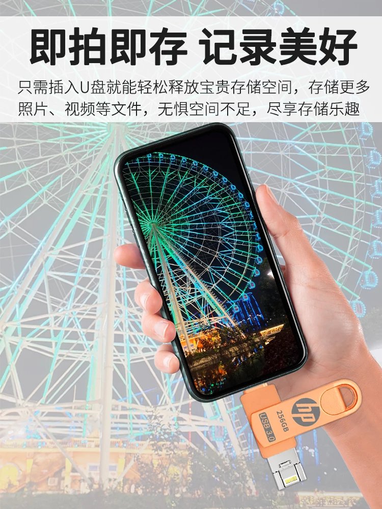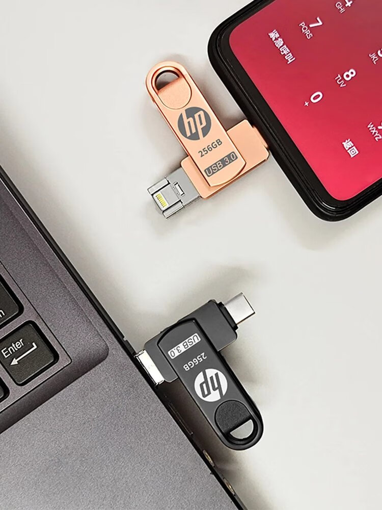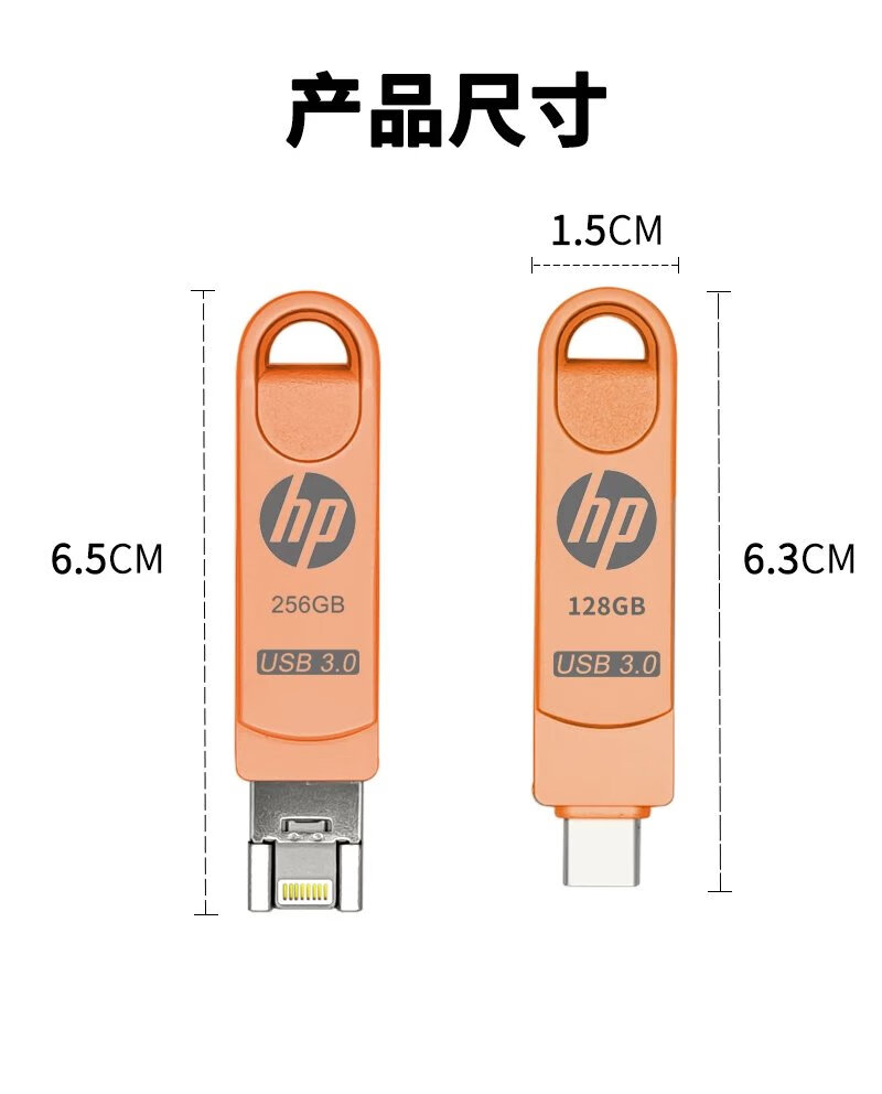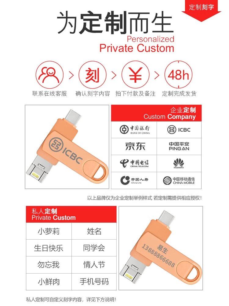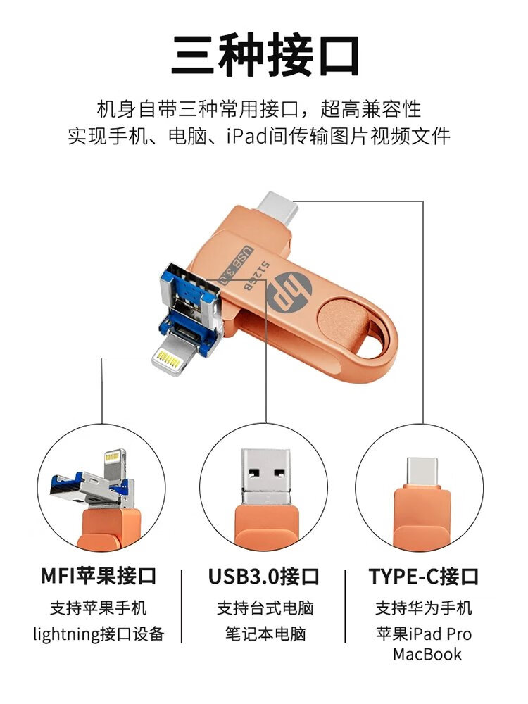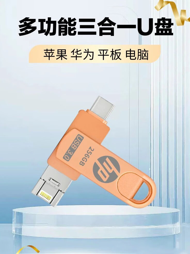 Three-in-one Huawei typec dual-interface three-purpose USB flash drive for Apple mobile phones, computers, tablets, and iPads, orange, three-in-one pink, 256G