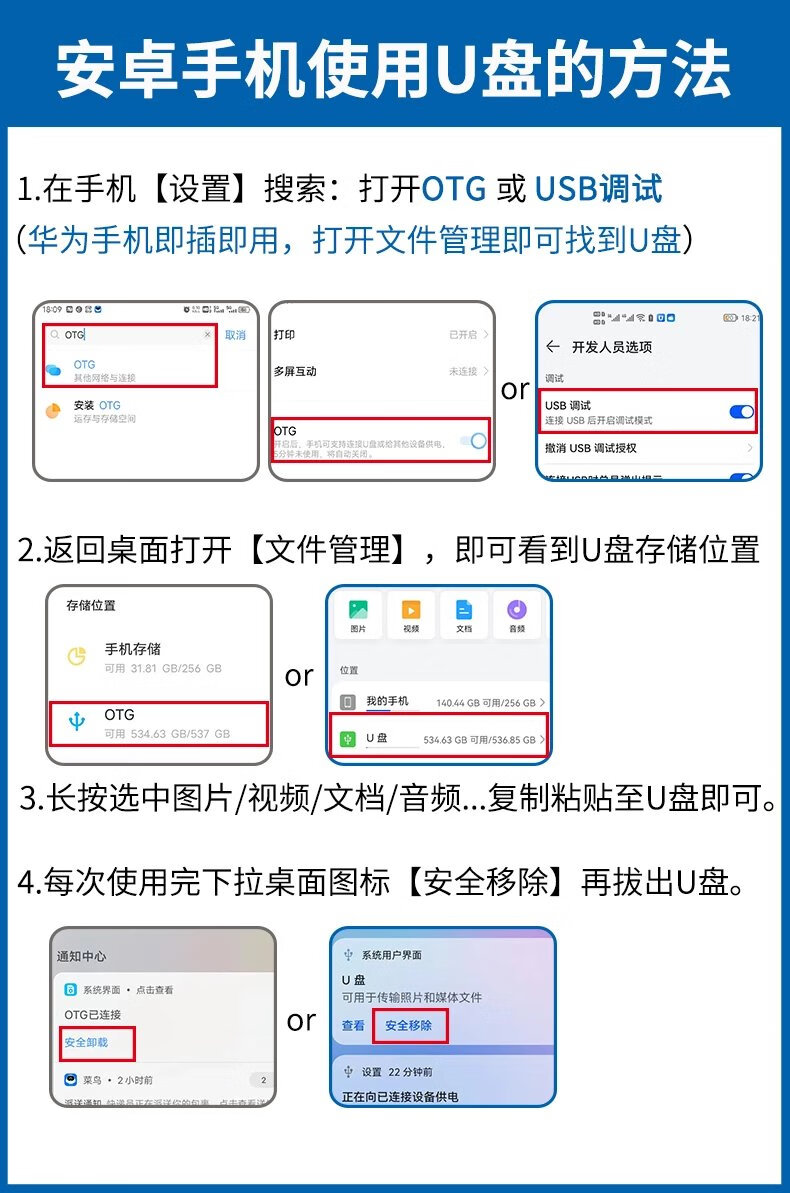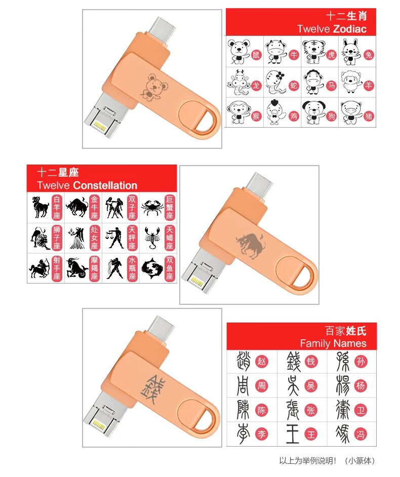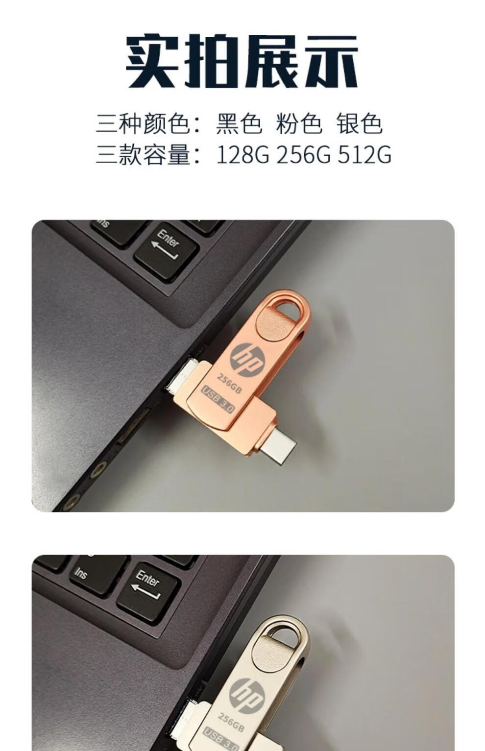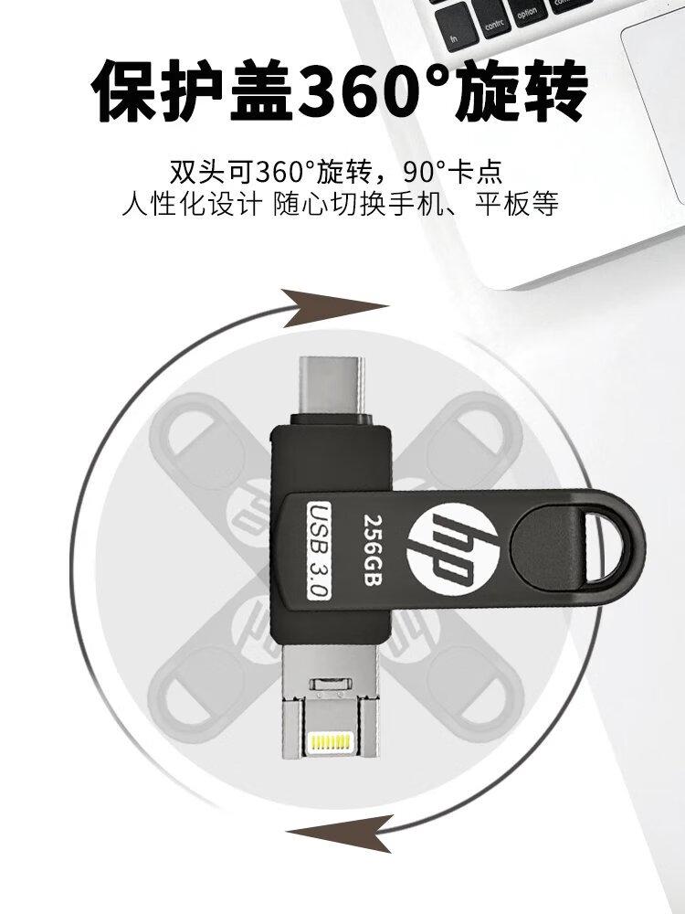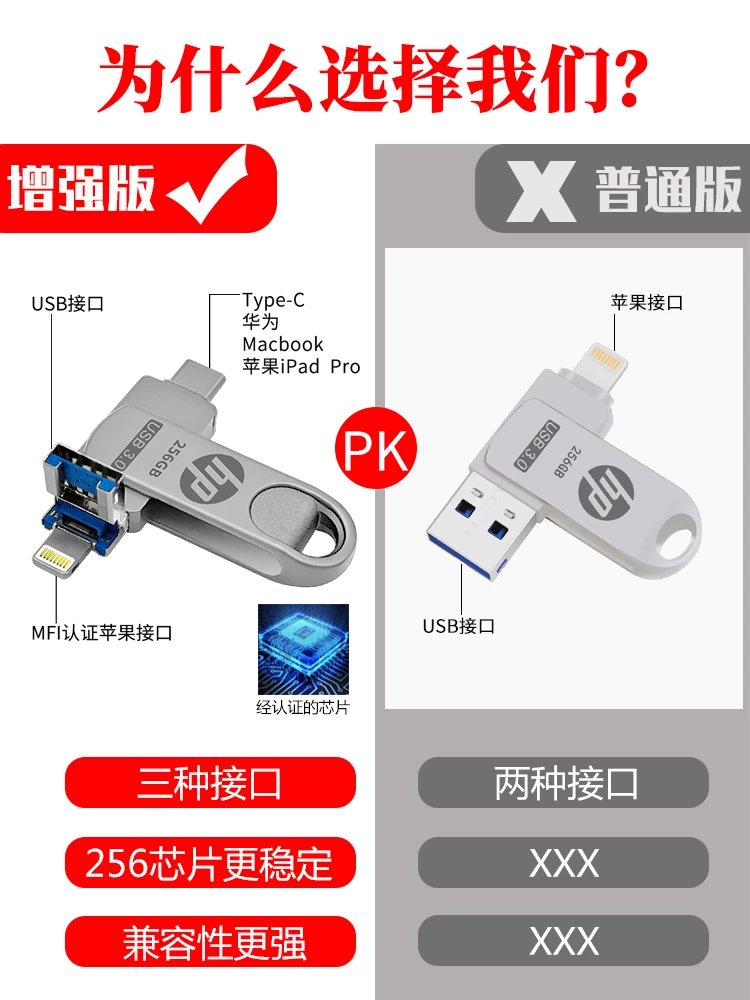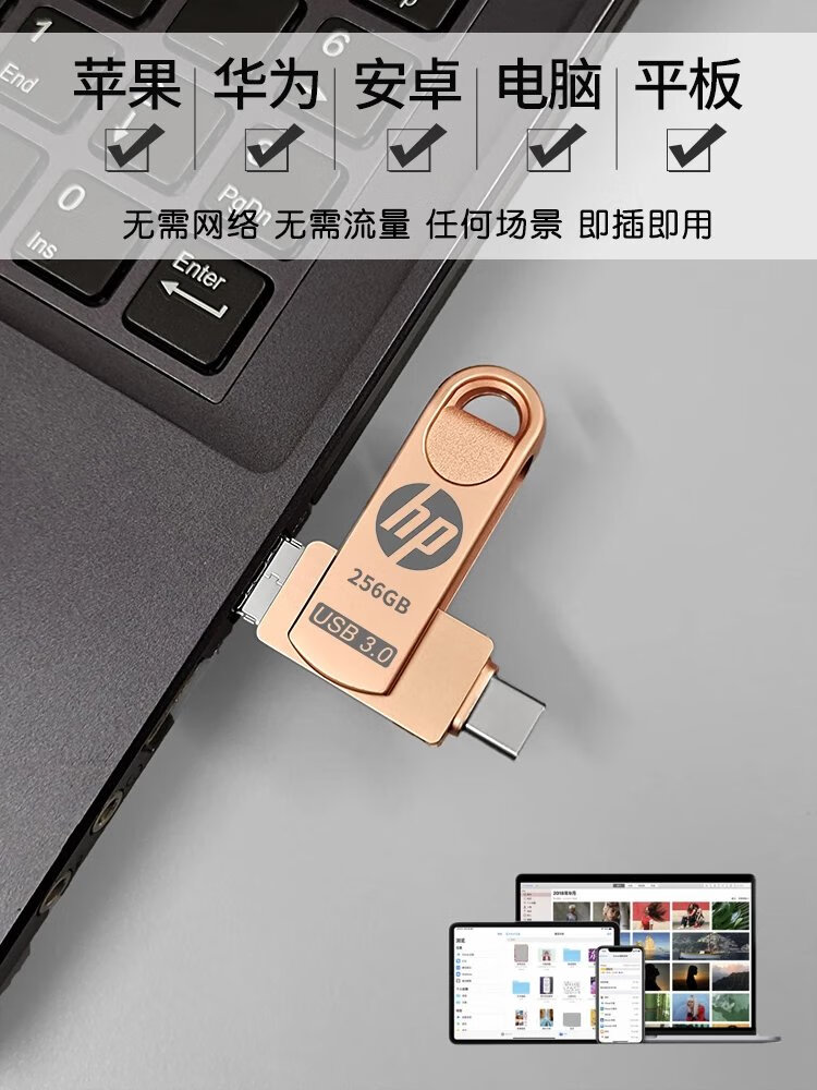 Three-in-one Huawei typec dual-interface three-purpose USB flash drive for Apple mobile phones, computers, tablets, and iPads, orange, three-in-one pink, 256G