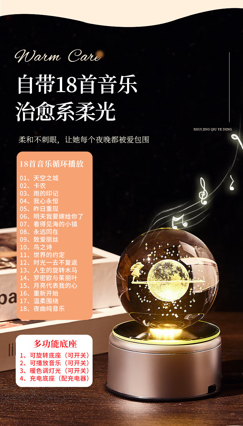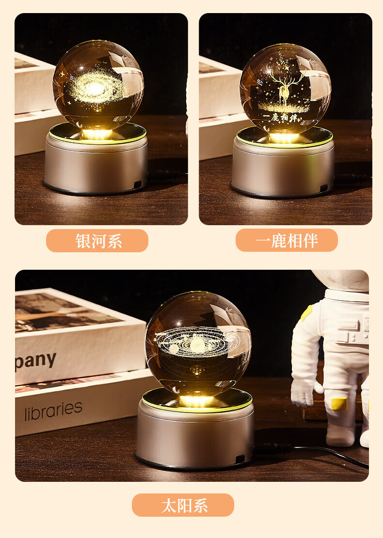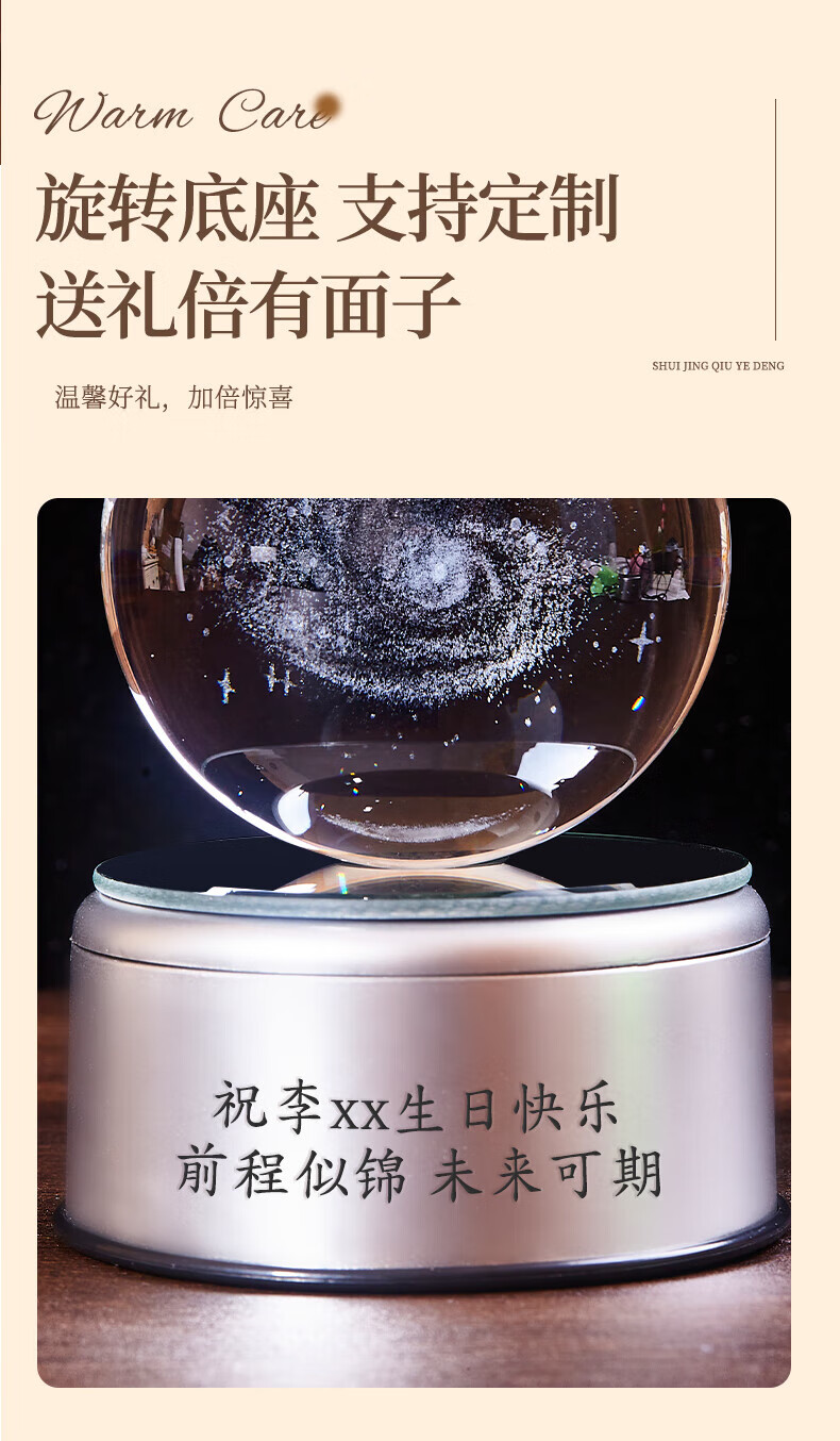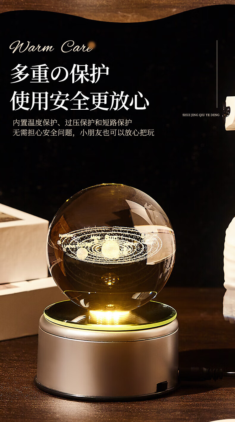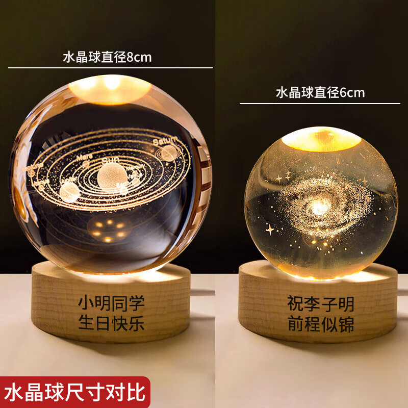 Journal Big Cat Cadeau d'anniversaire Boule de cristal rotative Coffret cadeau musical Papeterie personnalisable pour filles garçons camarades de classe Enseignant Mentor Souvenir Boîte aveugle Cadeau adulte de 18 ans Récompense Petit cadeau Gravure gratuite Système solaire 8 cm + Base en bois massif sans musique + Coffret cadeau Sac cadeau