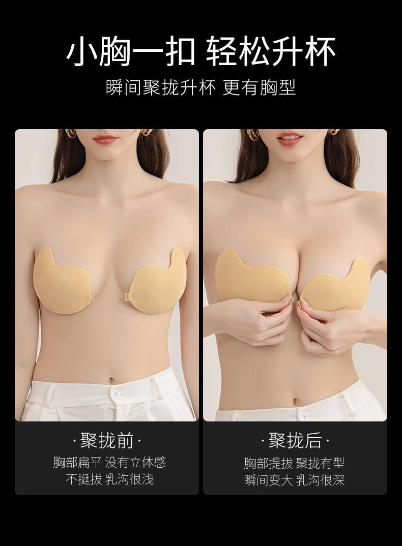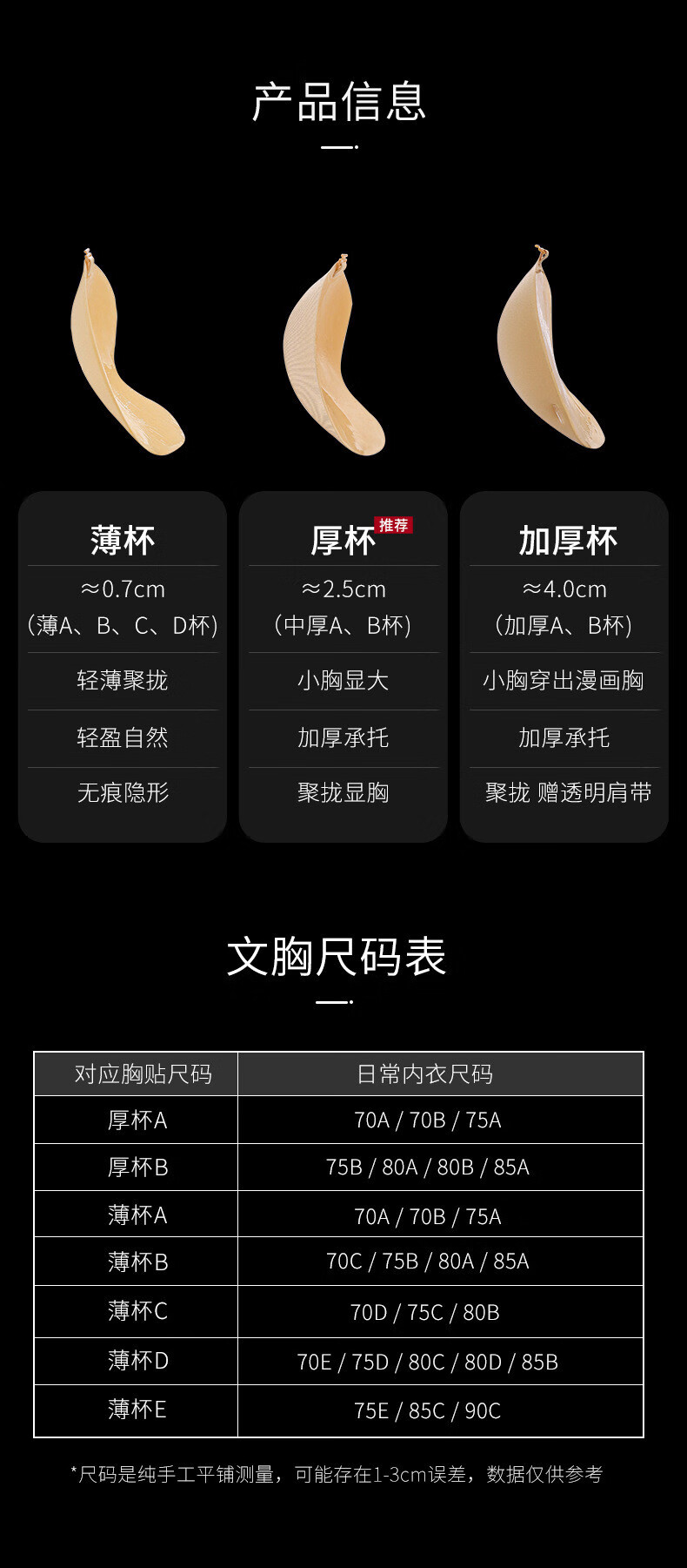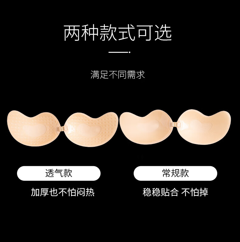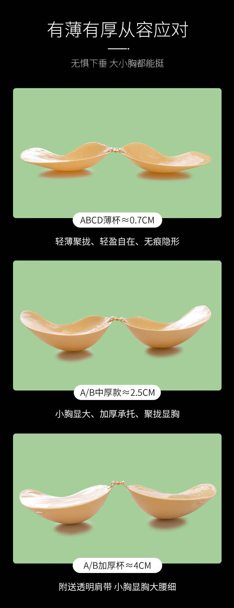 莫代尔芒果型硅胶乳贴婚纱用薄款胸贴女大胸显小聚拢上托防下垂隐形内衣 肤色常规款【薄款0.7cm】2对 A杯