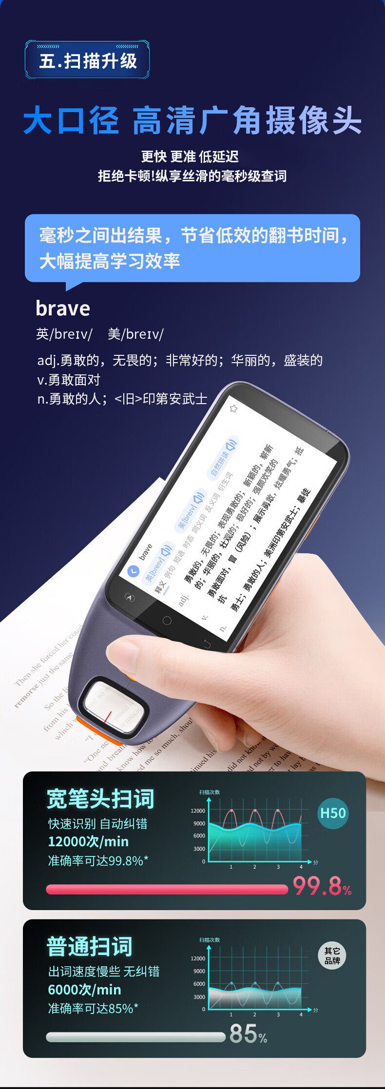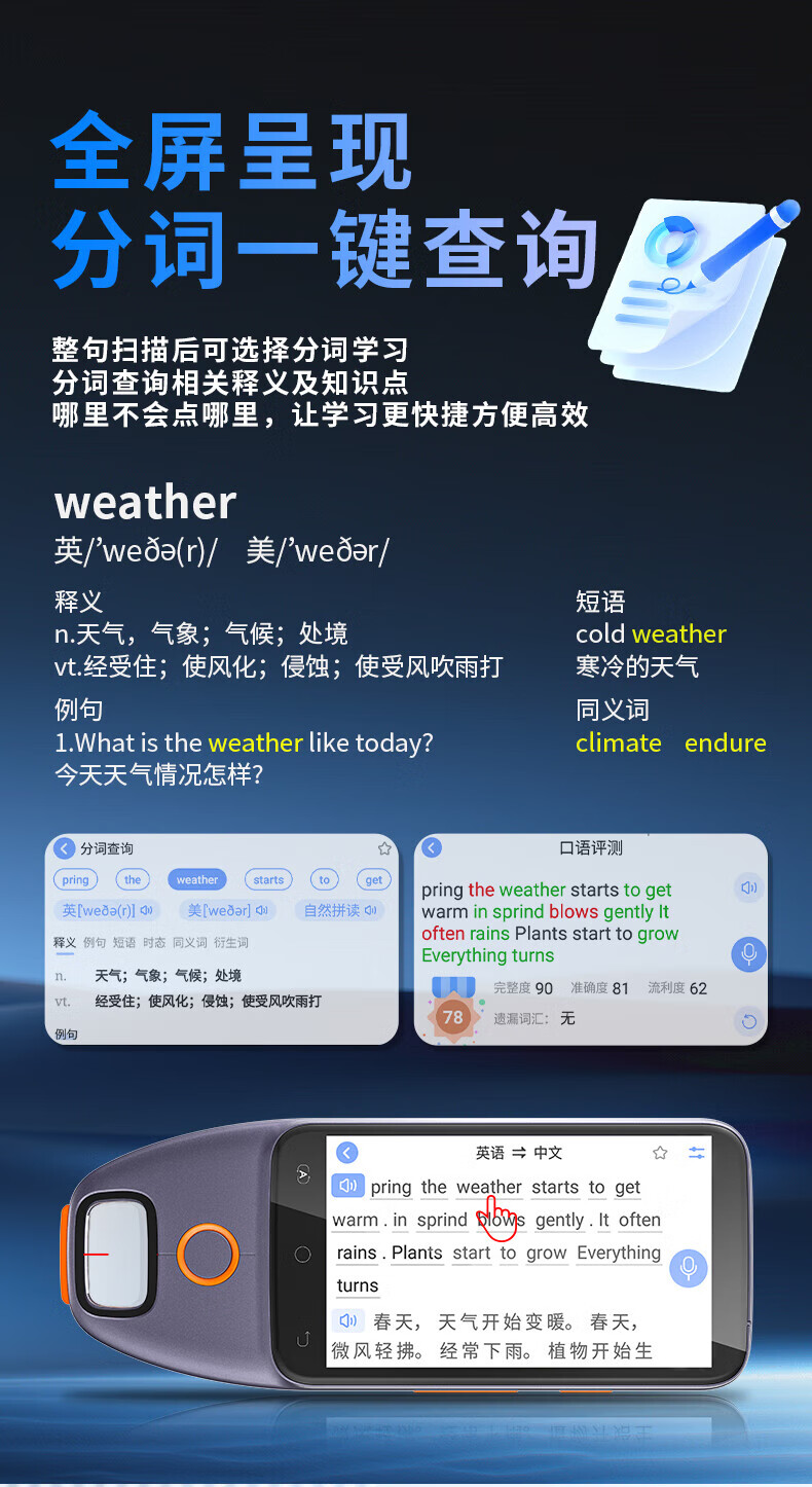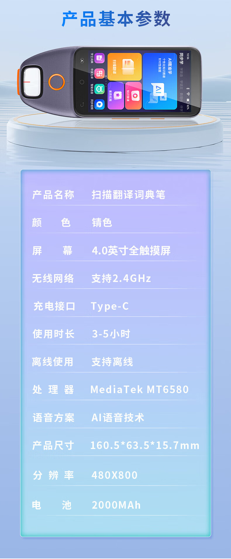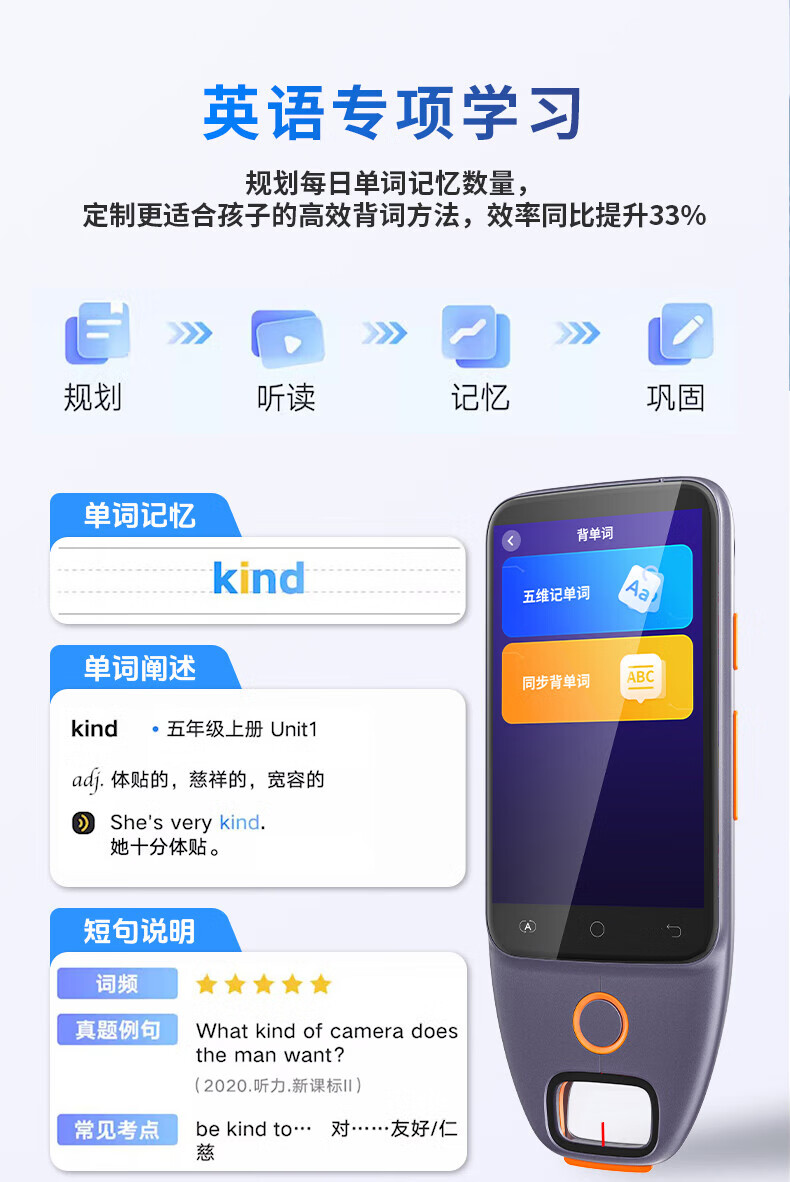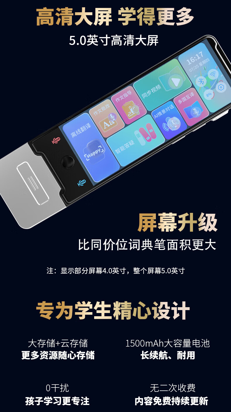 机适用点读笔智能扫描翻译电子词典单词机离线通用名师讲解 5英寸学习机扫读笔拍照搜题 8GB