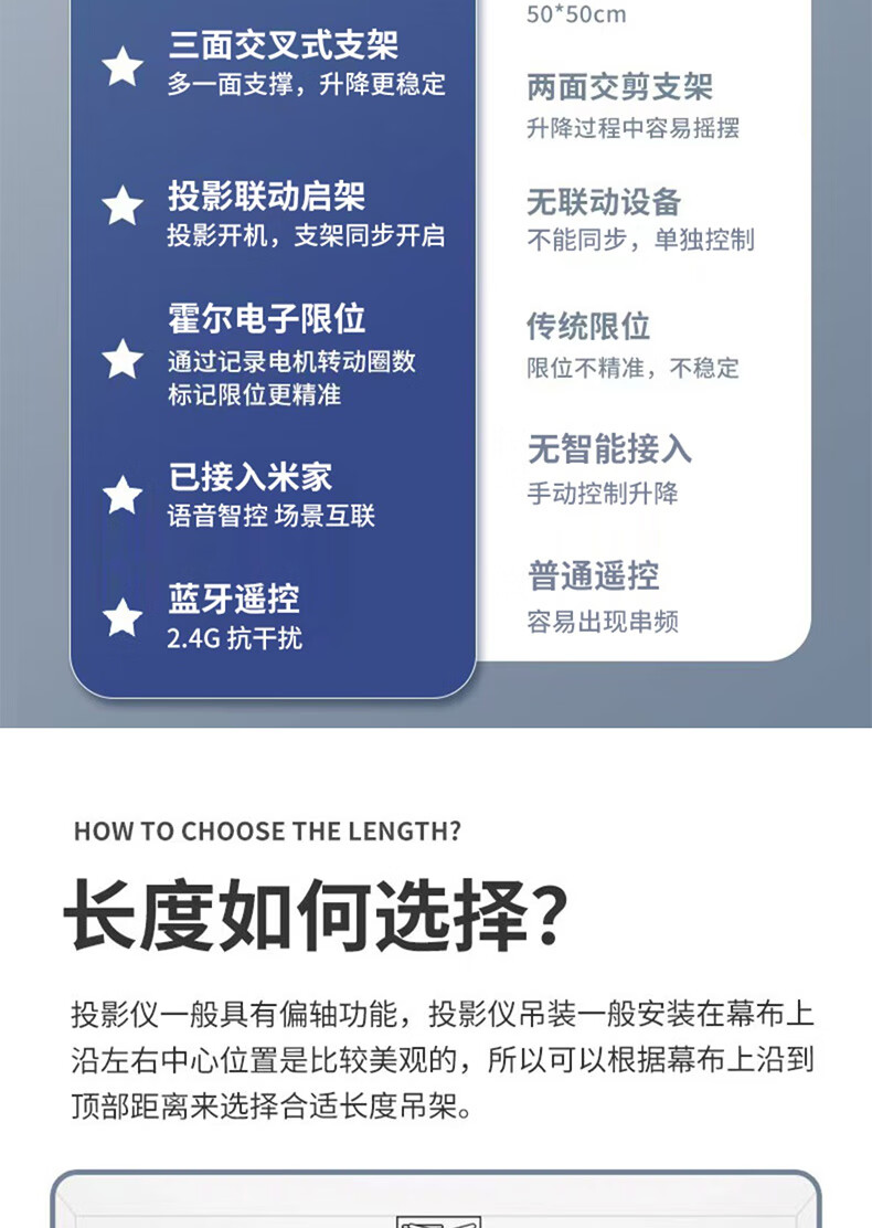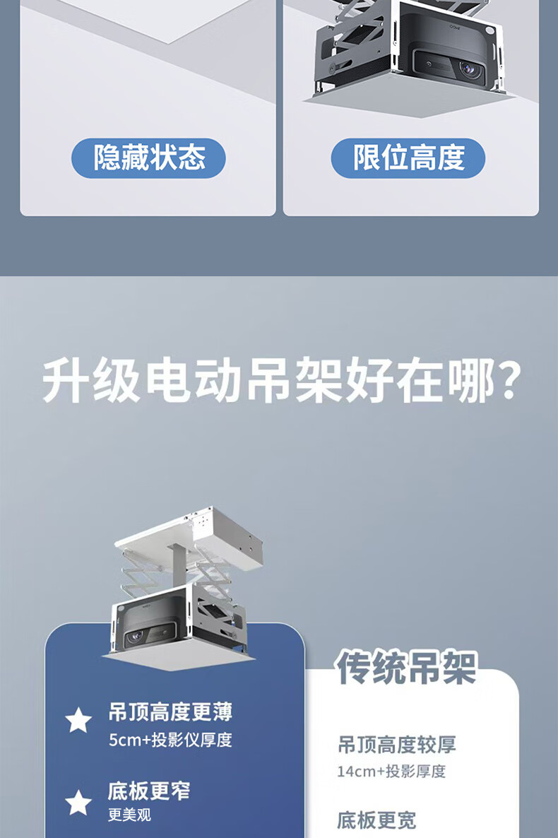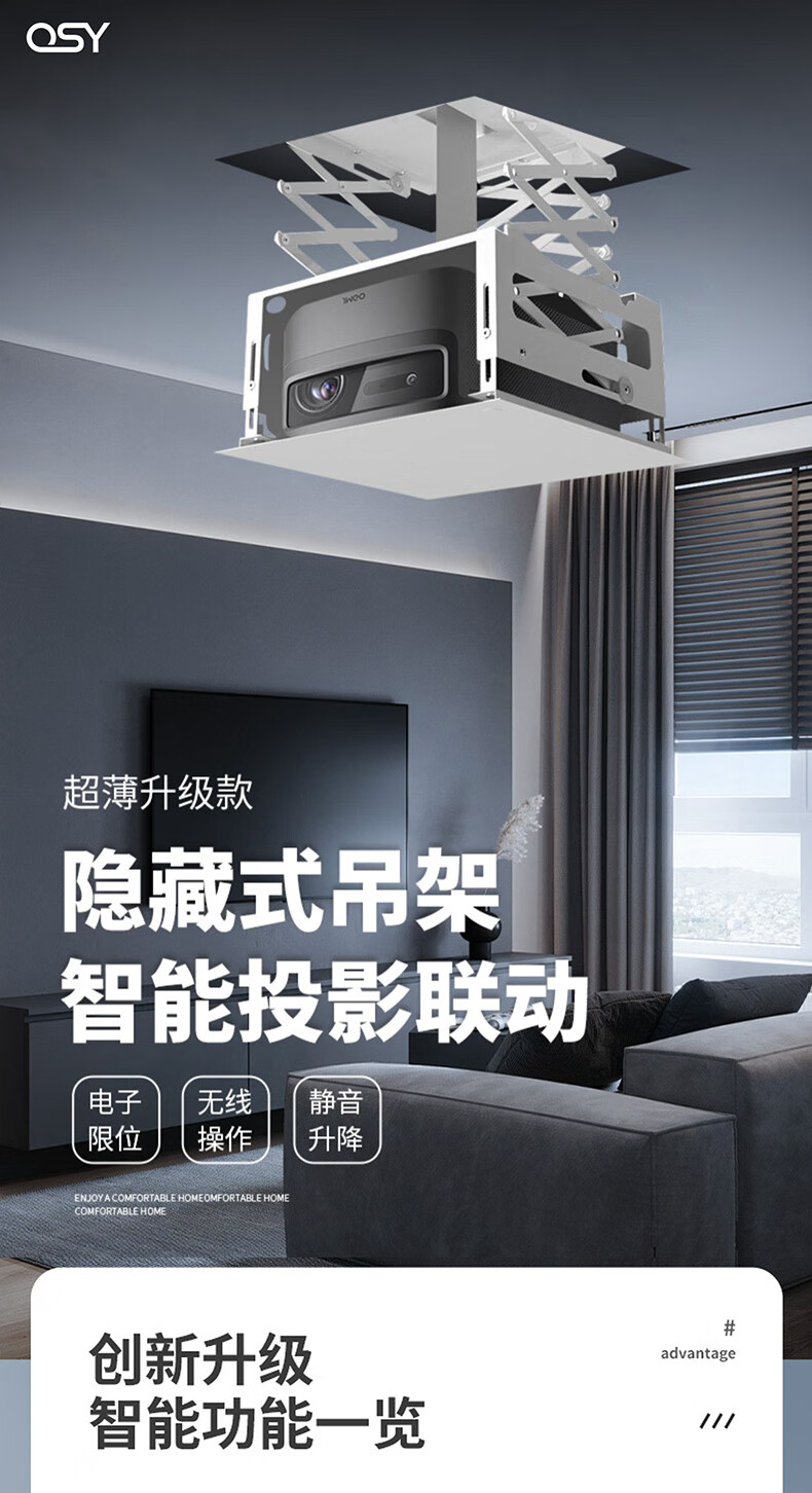 Qianseyu Hidden Projector Electric Hanger Projector Electric Lifting Hanger Ultra-Thin Ceiling Projector Automatic Telescopic Stand QSY-Standard Electric Hanger 1.5 Meter Stroke Intelligent Lift