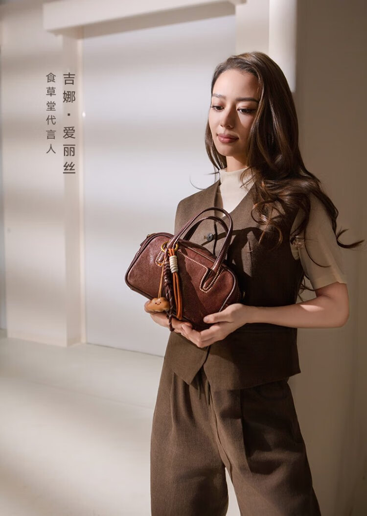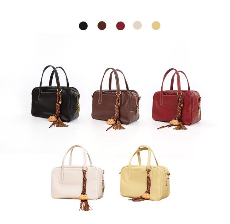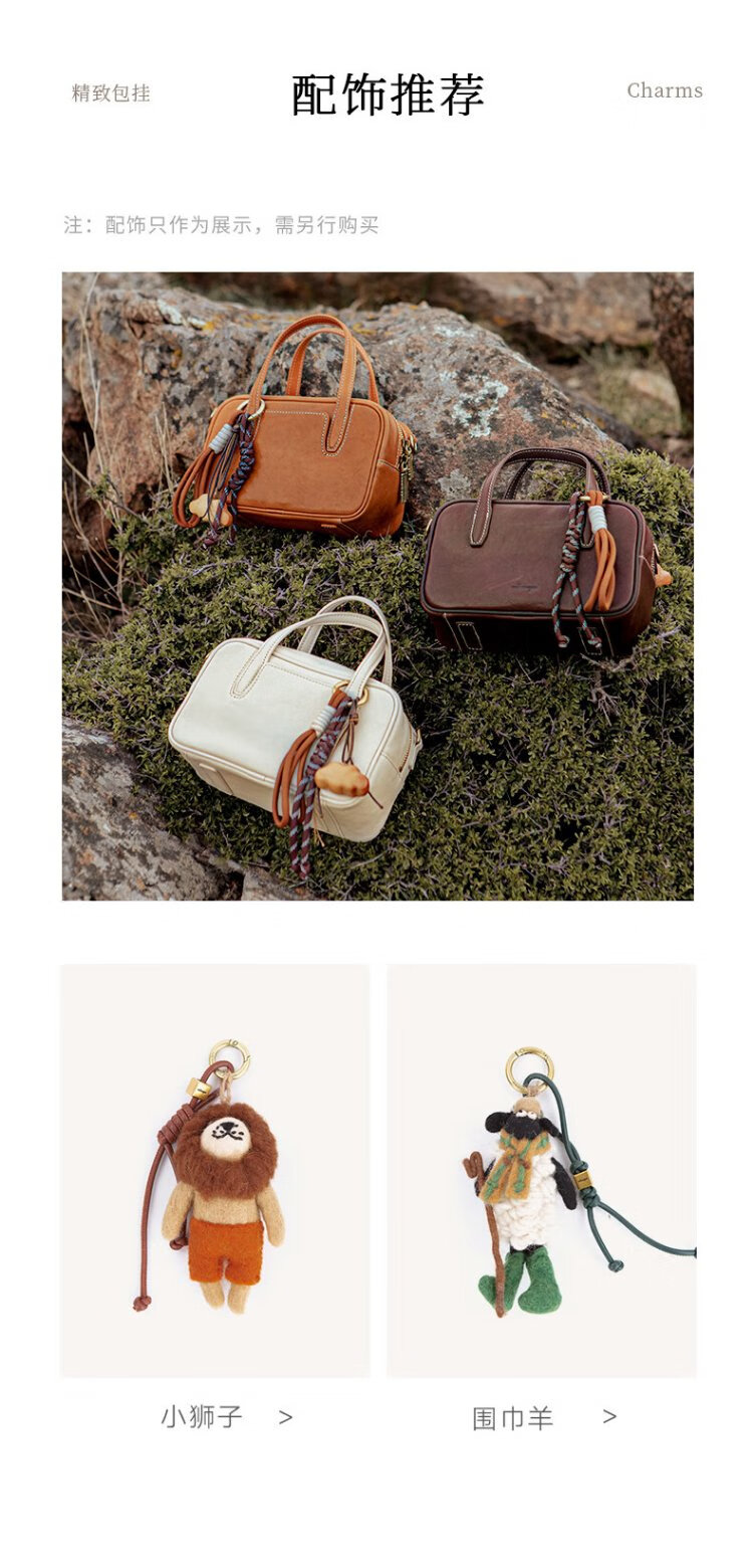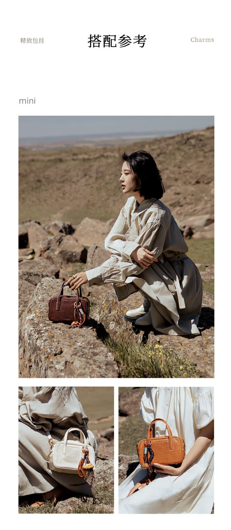 食草堂【吉娜同款】女包方糖保龄球头层植鞣牛皮手提斜挎小方包轻奢礼物 mini深啡 沈月同款/送随机挂饰