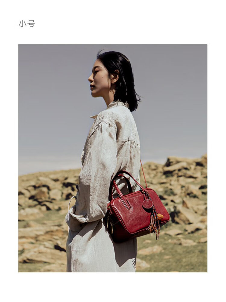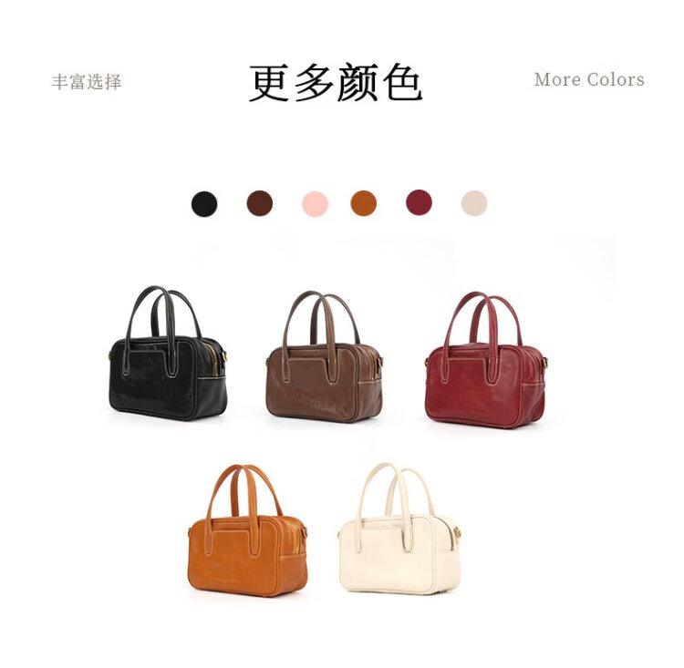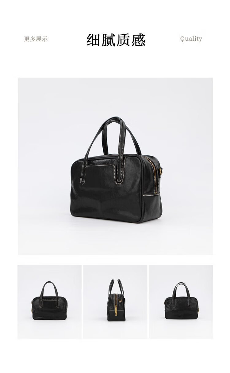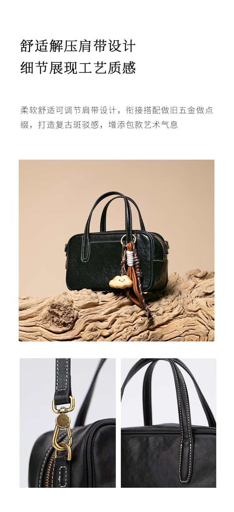 食草堂【吉娜同款】女包方糖保龄球头层植鞣牛皮手提斜挎小方包轻奢礼物 mini深啡  沈月同款/送随机挂饰
