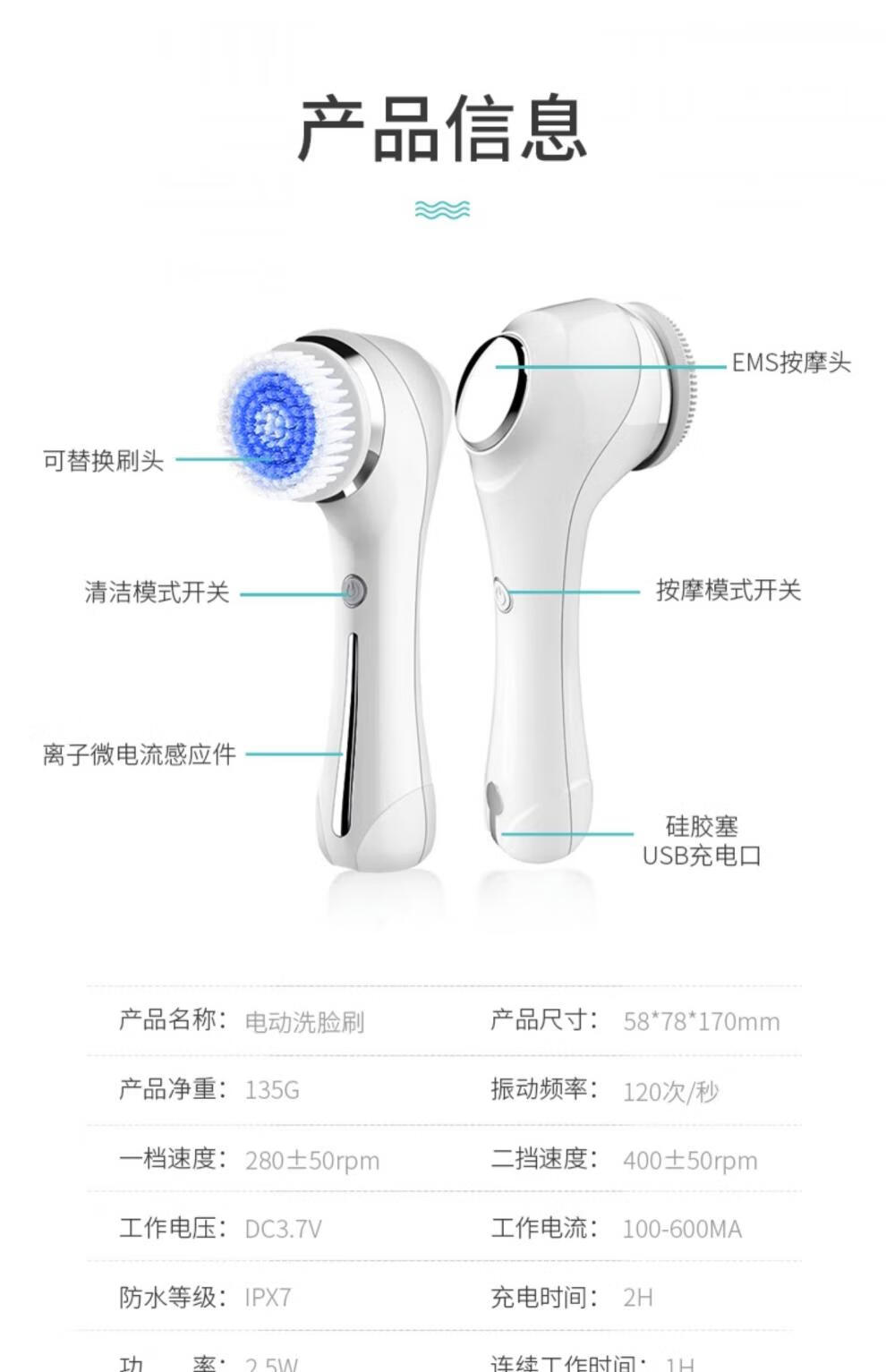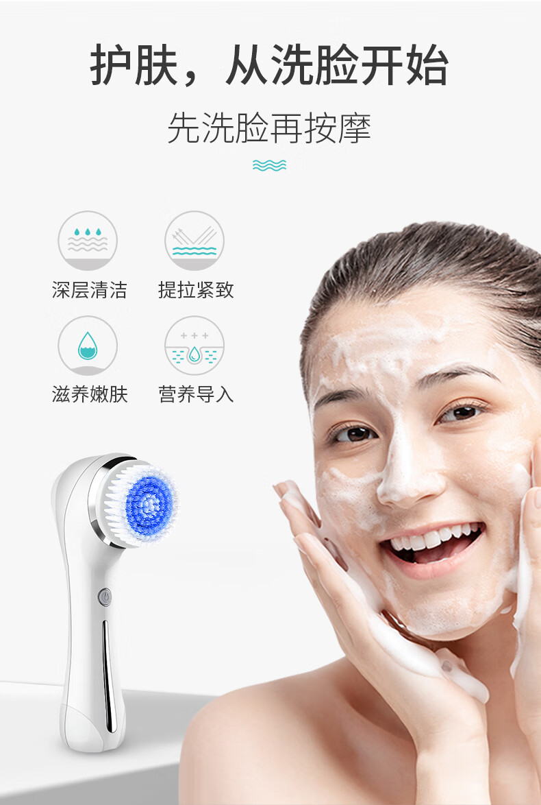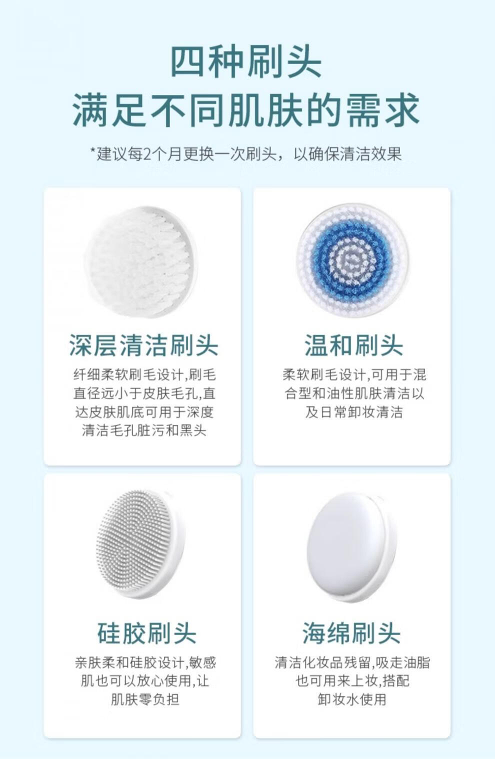 麦舒特电动洗脸神器清洁毛孔器电动洁面仪男女洗面刷充电式洗脸仪导入仪 珍珠白90天长久续航