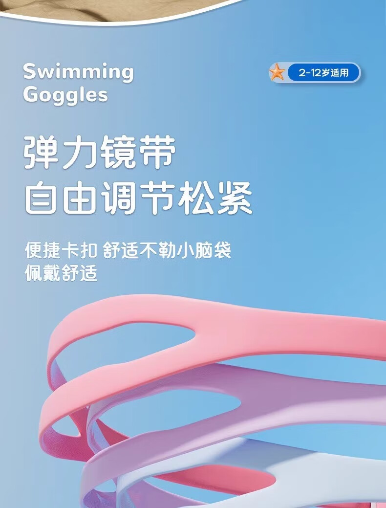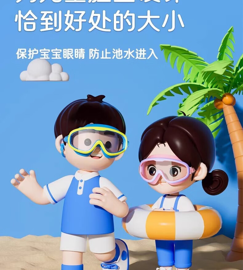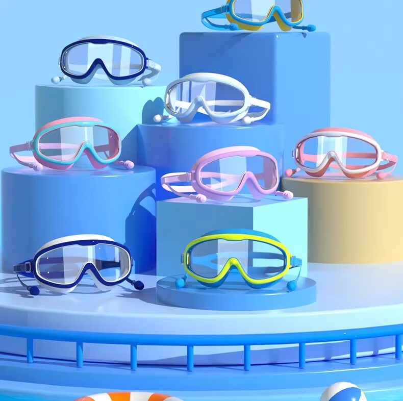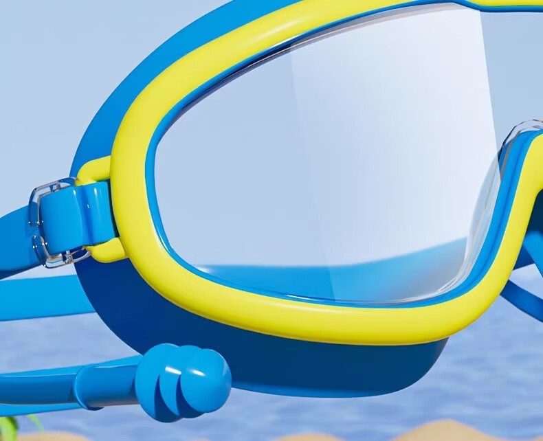 防水高清泳镜套装儿童专业训练男女成人大框游泳眼镜潜水鼻夹泳帽 天蓝色-儿童款66(袋装)