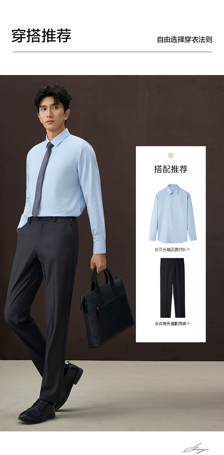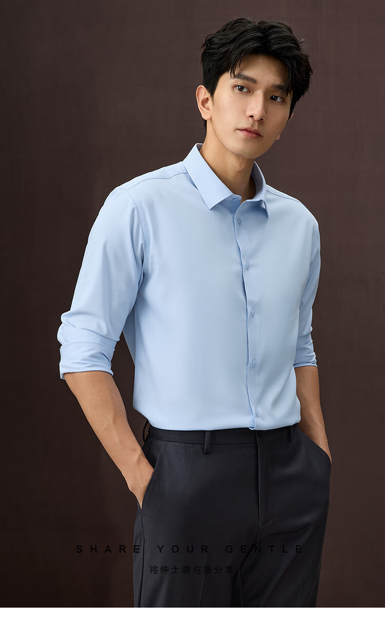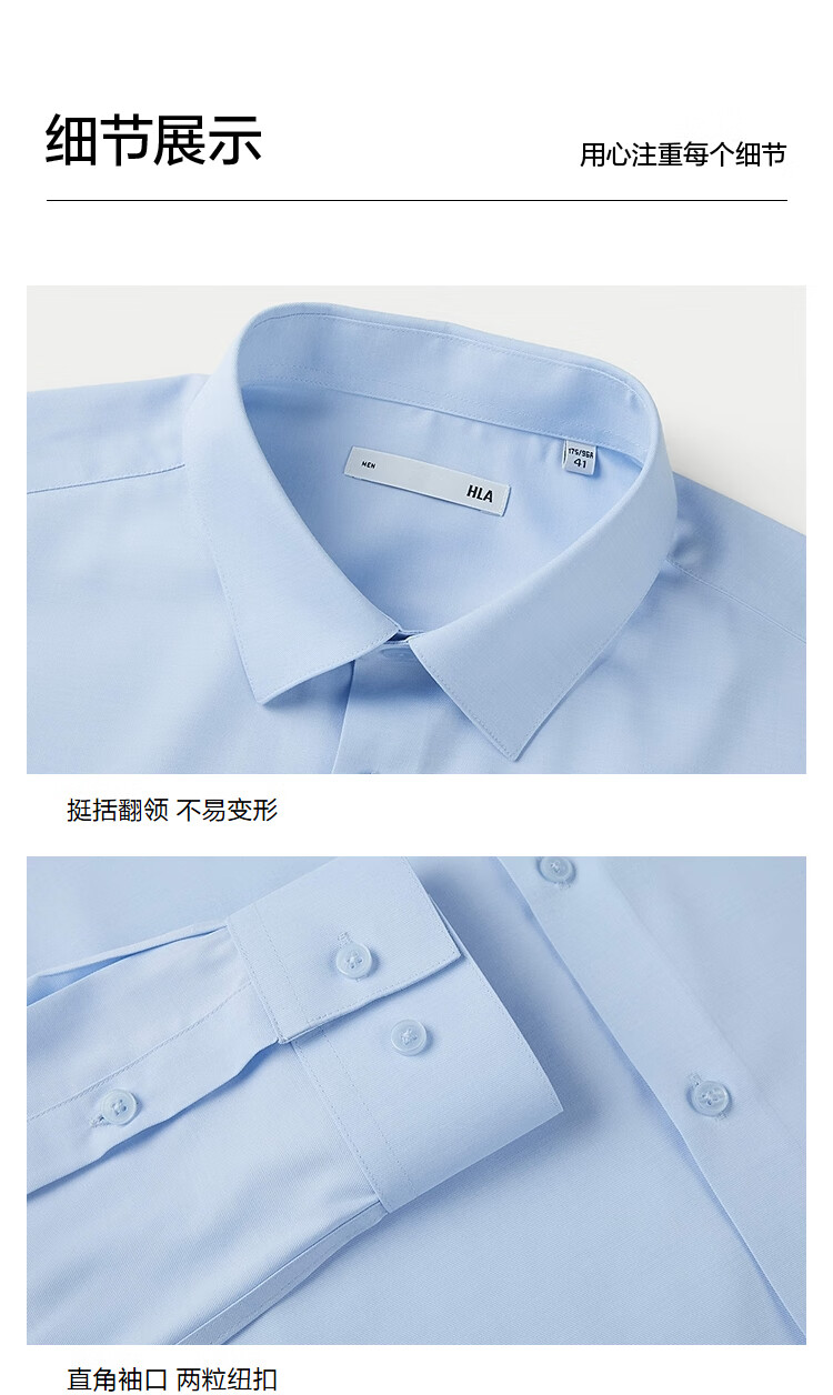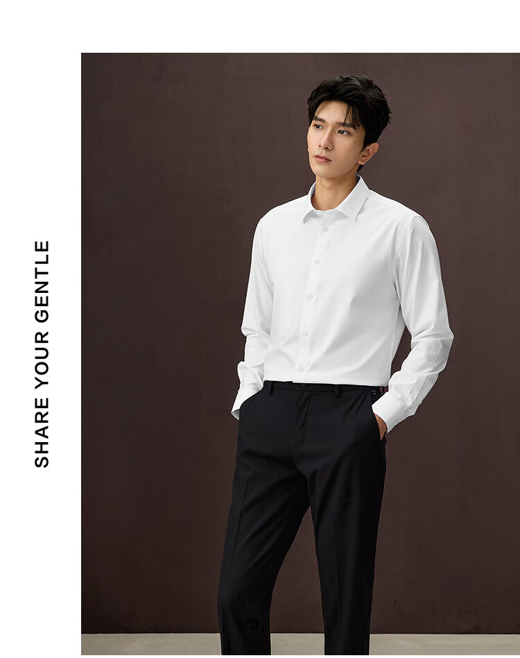 海澜之家(HLA)长袖衬衫男轻商务衫及系列正装衬衫男秋季 漂白66 40 175/92A 推荐137-148斤