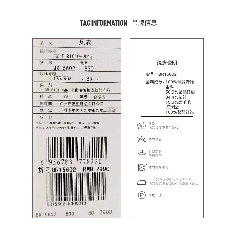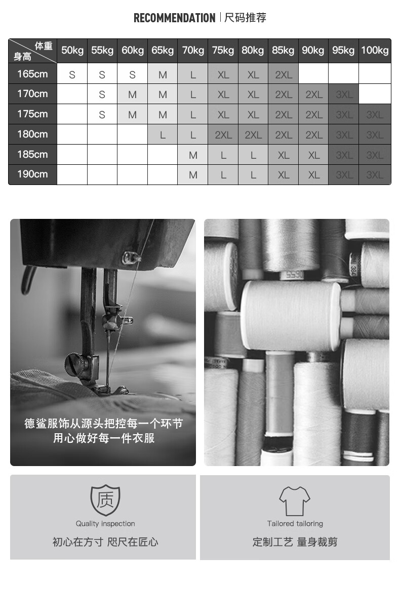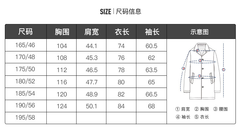China (cm) 165 / 88-90 170 / 96-98 175 / 108-110 180 / 118-122 185 / 126-130