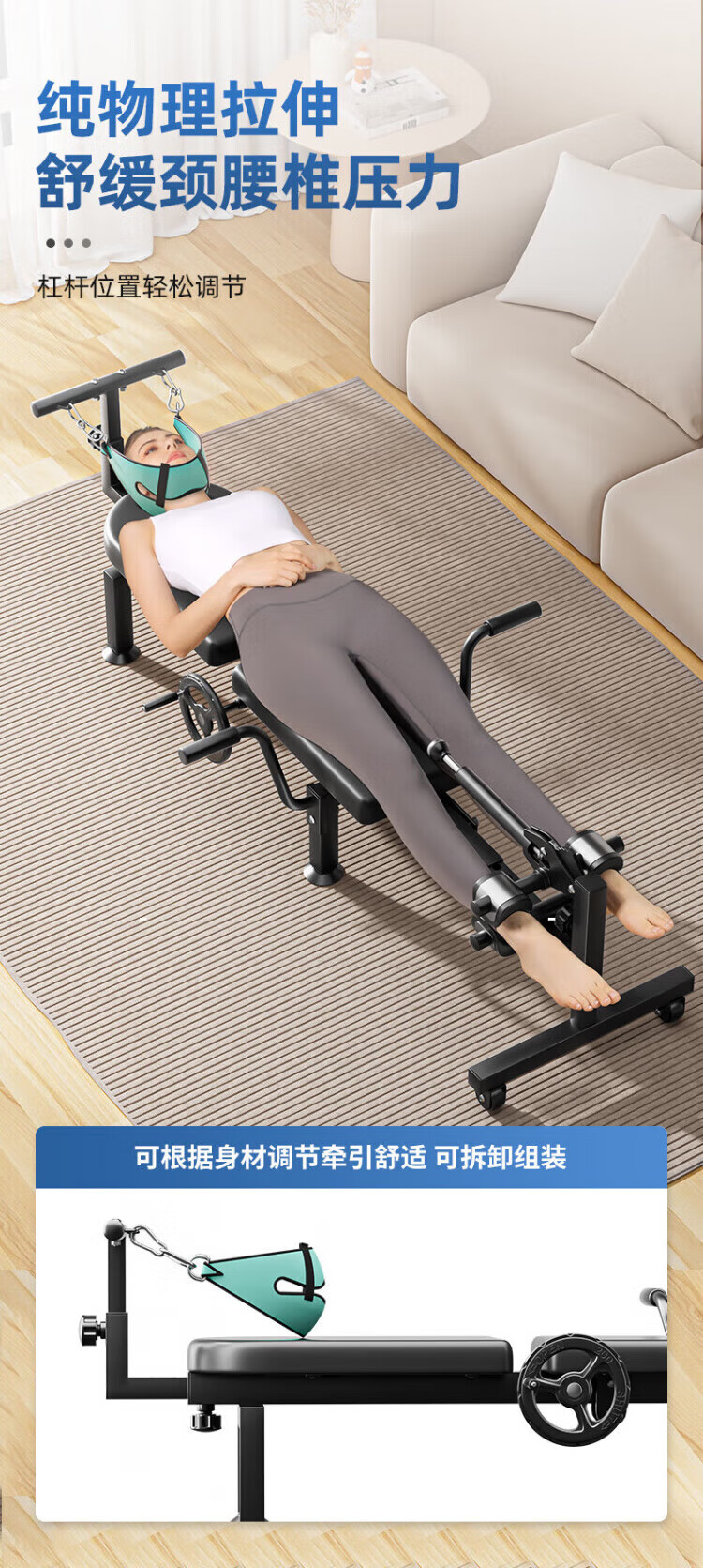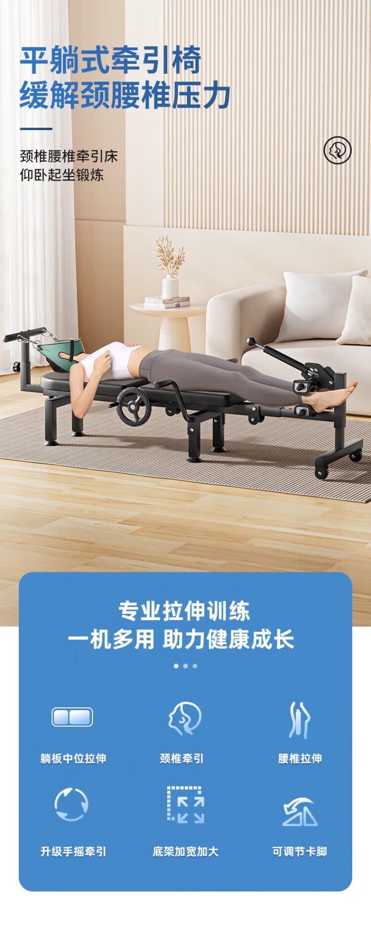 腰椎牵引器脊部柱拉伸医用抗阻训练器锻炼健身倒立机劲椎 增强款【腰部拉伸+升级省力手摇+舒适卡脚】