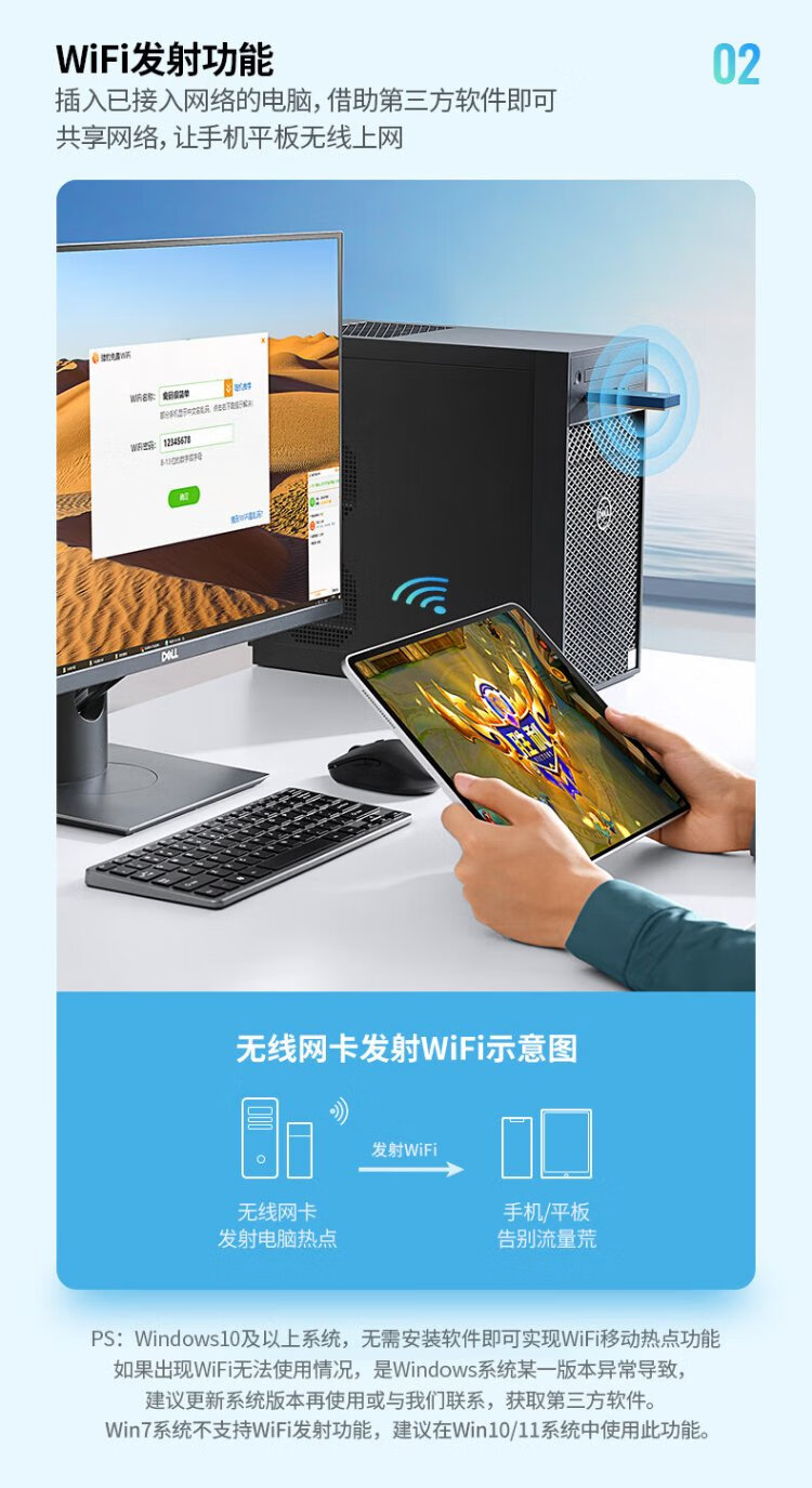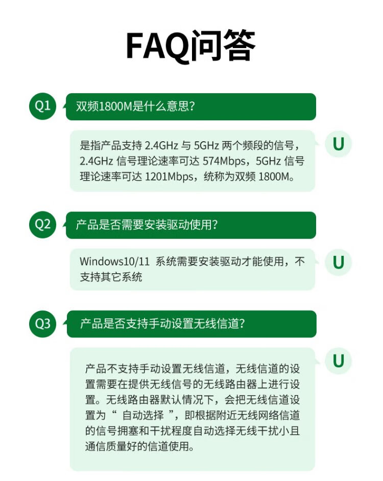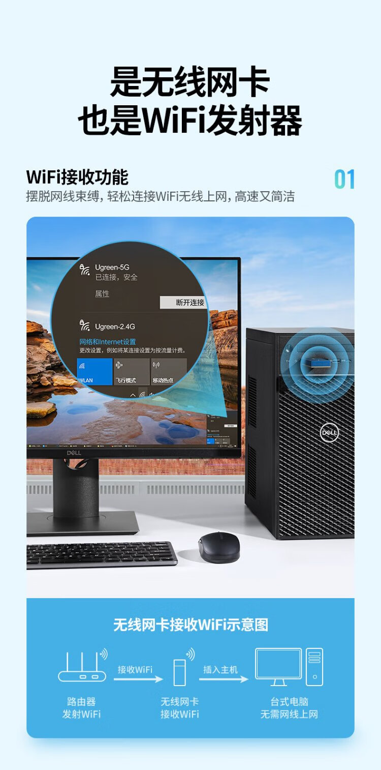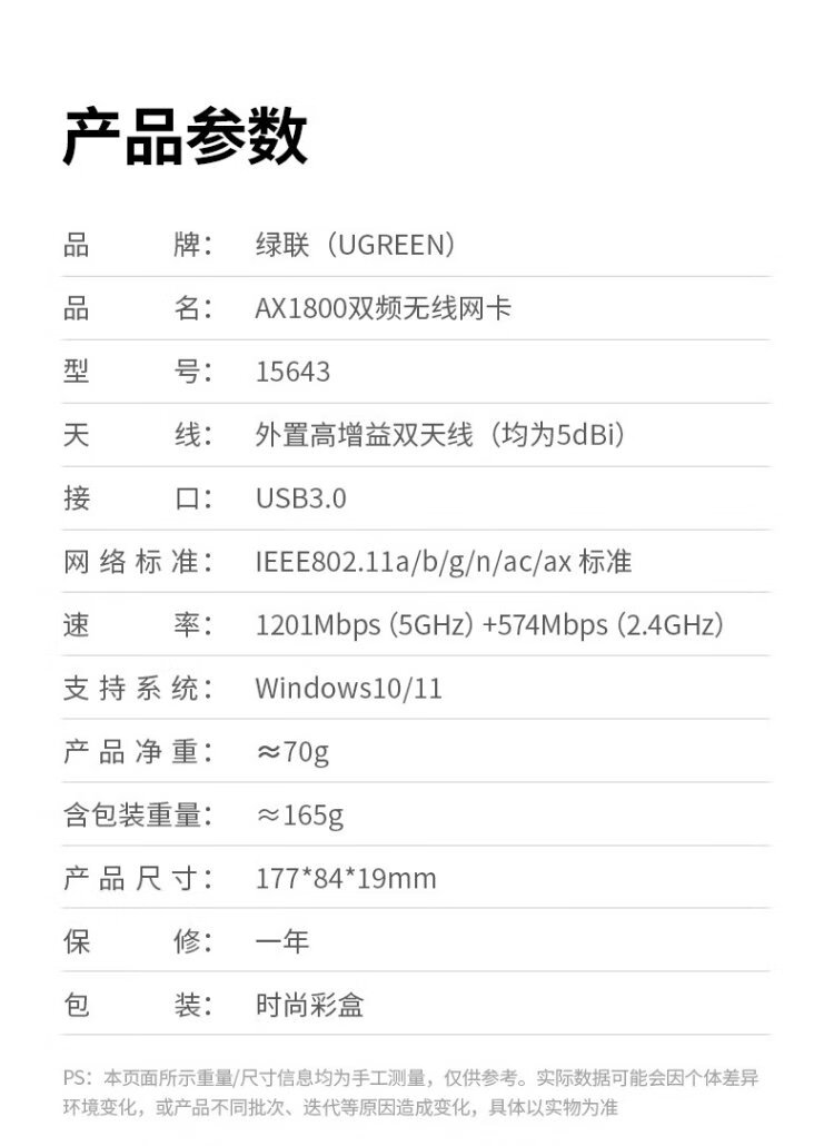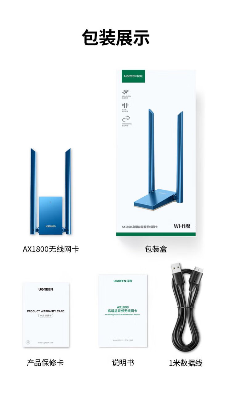绿联USB无线网卡WiFi6 千兆AX1800M双频5G 台式笔记本电脑无线接收器WIFI发射器 【AX3000-WiFi6】内置天线 5G双频