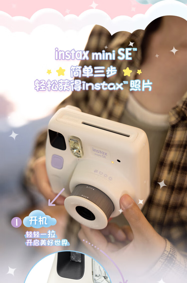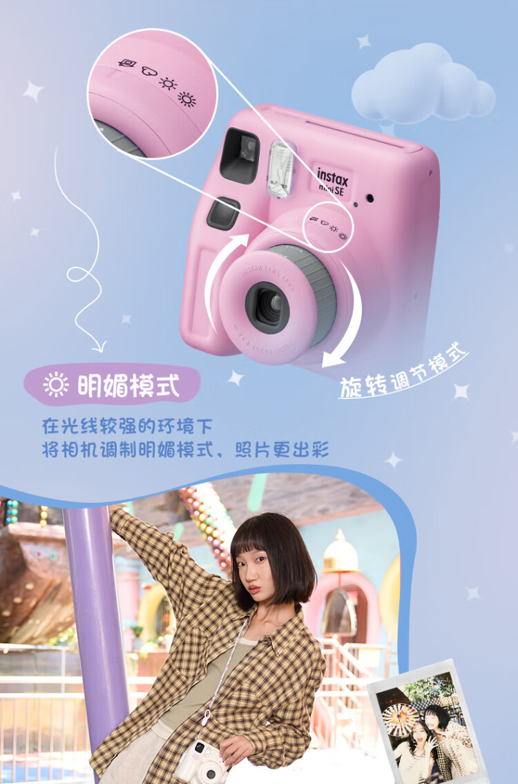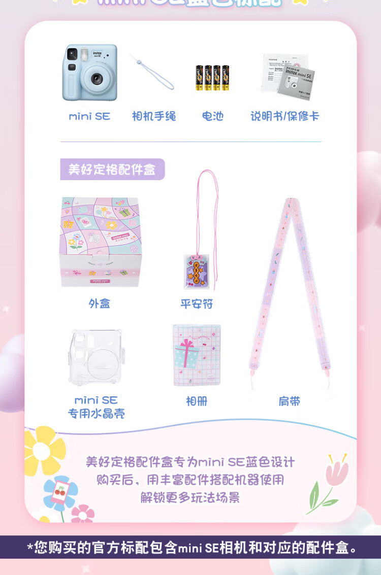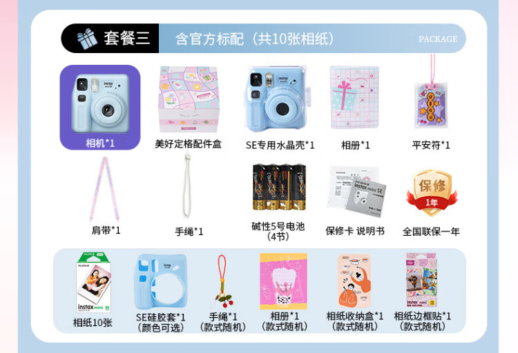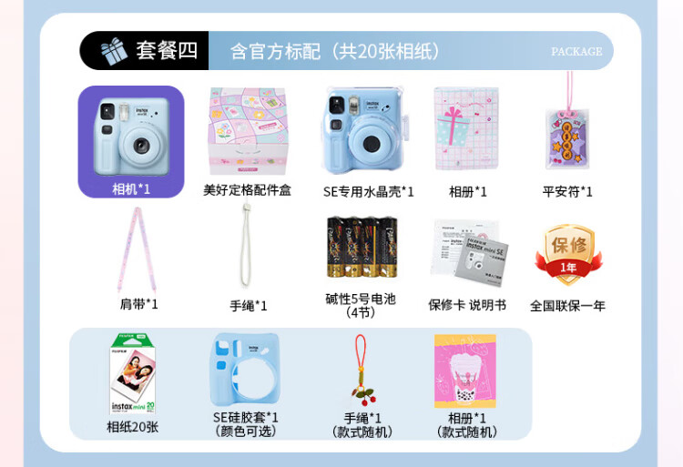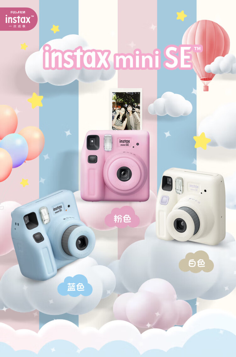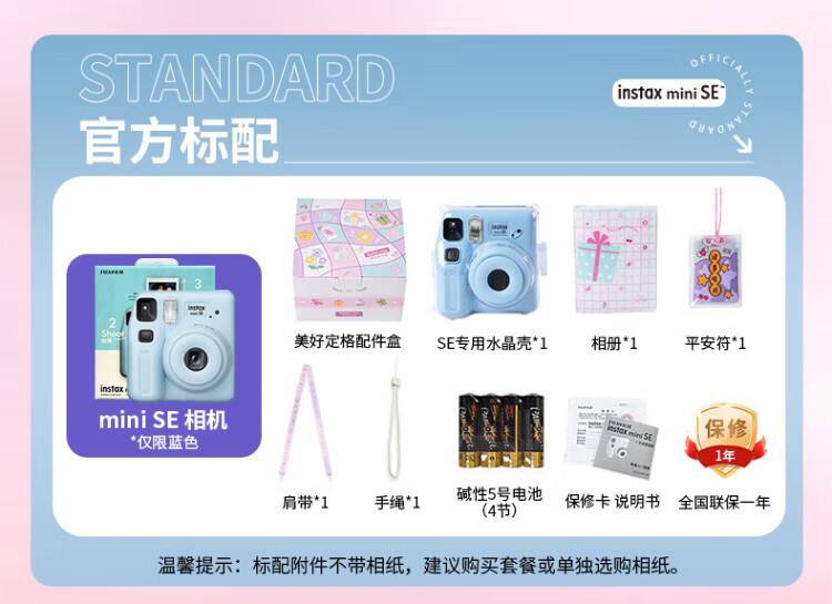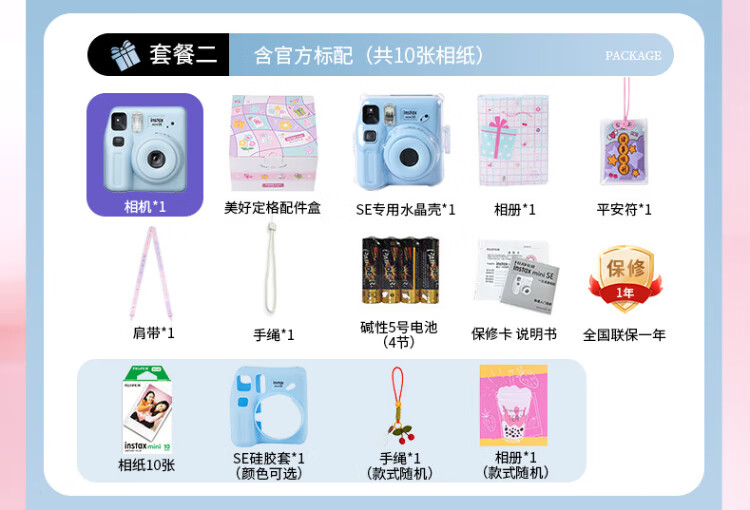 富士(FUJIFILM)拍立得instax mini SE男女学生款一次成像傻瓜相机mini 7+/7s/7c升级版套餐含相纸 蓝色【美好定格套装】 套餐二【标配+10张相纸+硅胶套+基础版礼包】