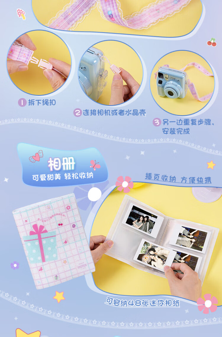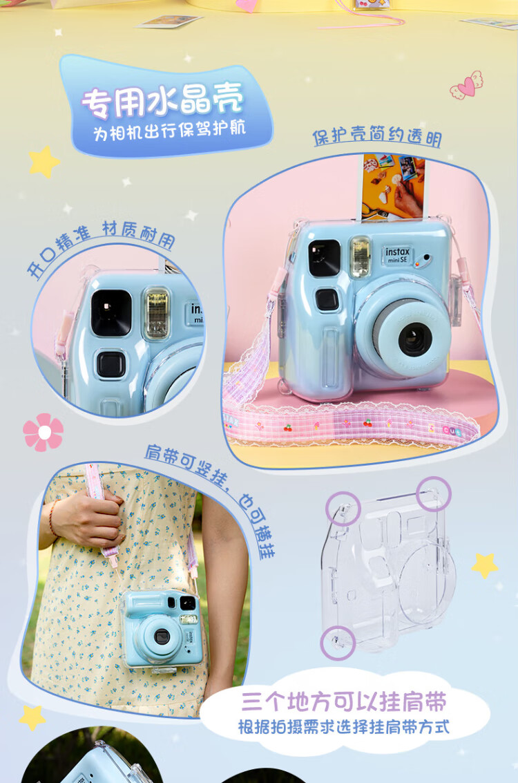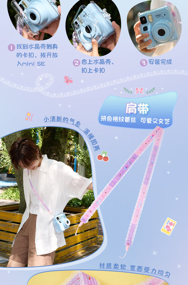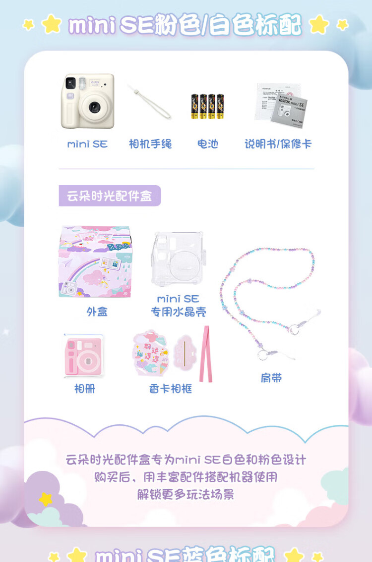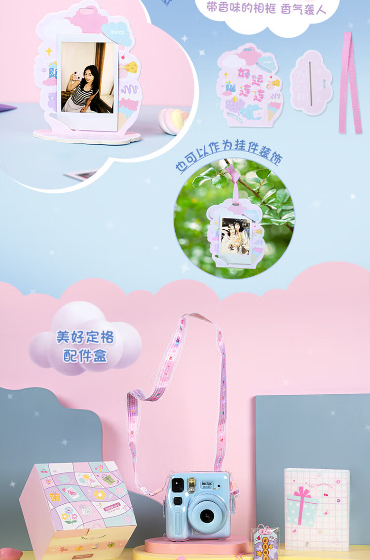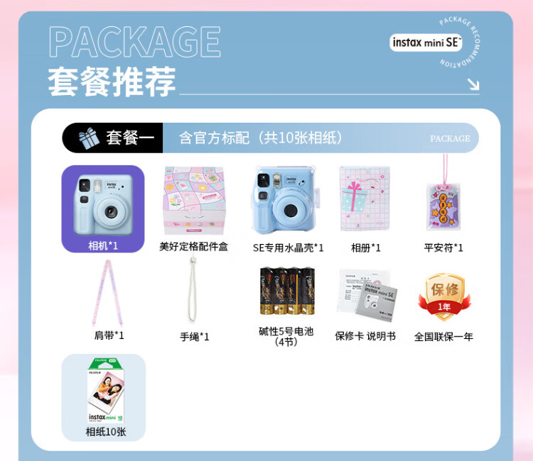 富士(FUJIFILM)拍立得instax mini SE男女学生款一次成像傻瓜相机mini 7+/7s/7c升级版套餐含相纸 蓝色【美好定格套装】 套餐二【标配+10张相纸+硅胶套+基础版礼包】