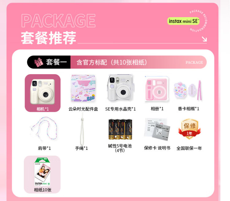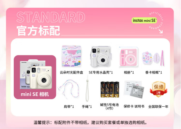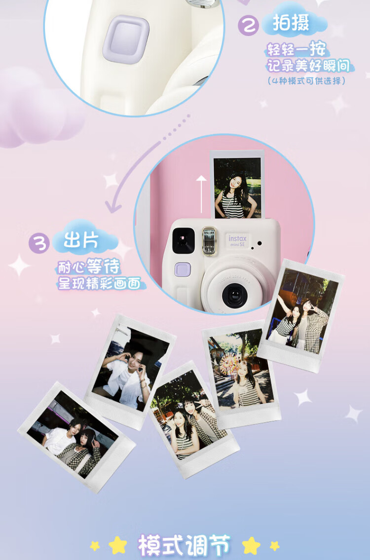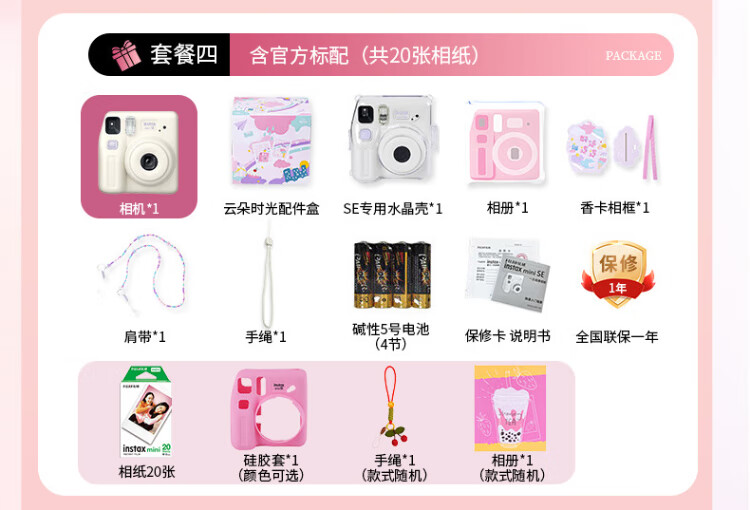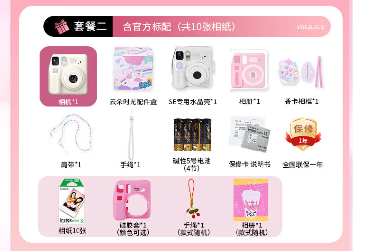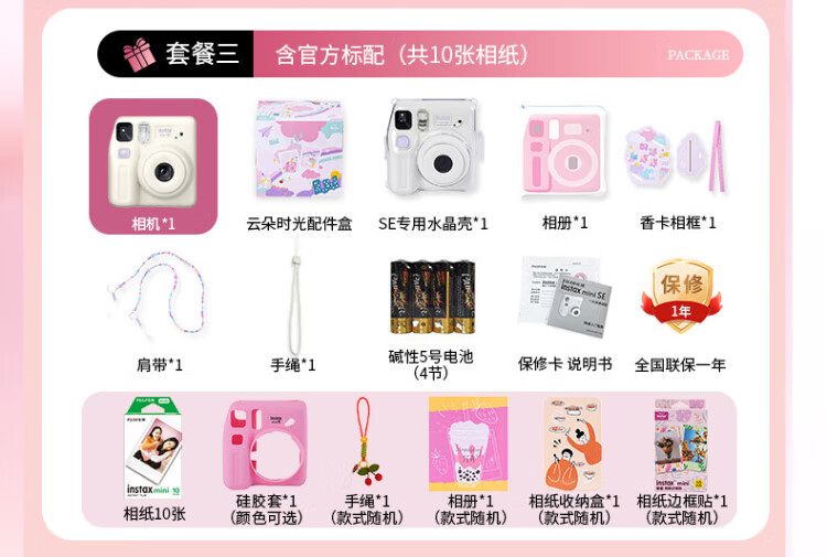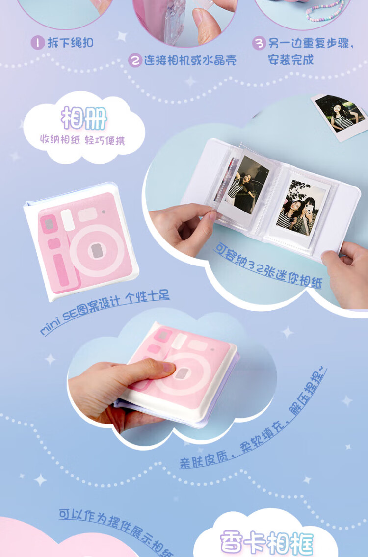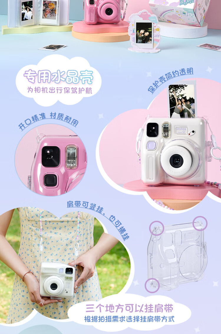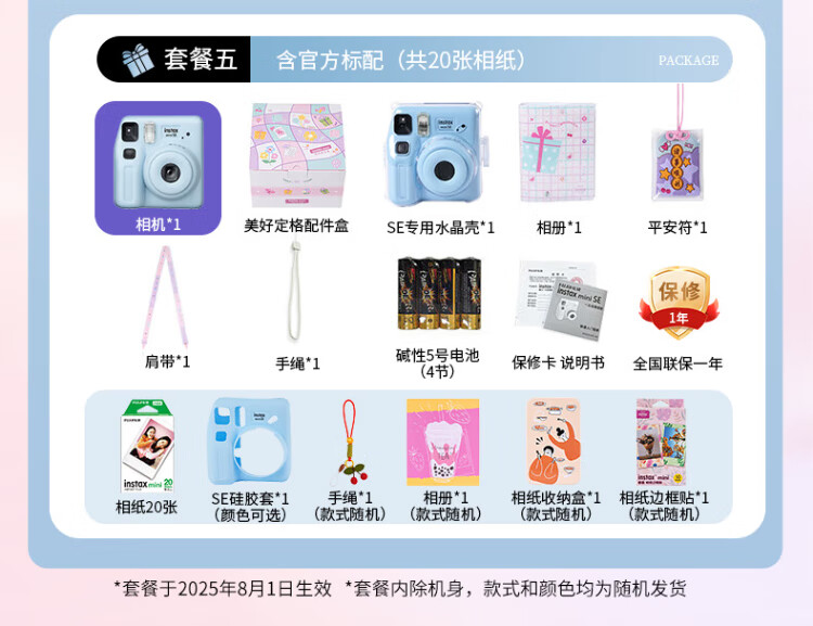 富士(FUJIFILM)拍立得instax mini SE男女学生款一次成像傻瓜相机mini 7+/7s/7c升级版套餐含相纸 蓝色【美好定格套装】 套餐二【标配+10张相纸+硅胶套+基础版礼包】