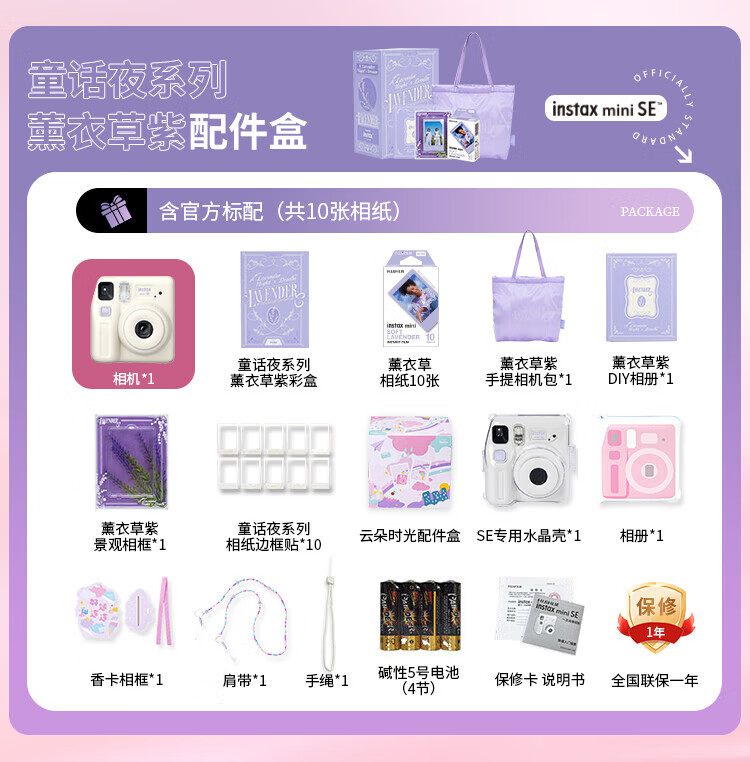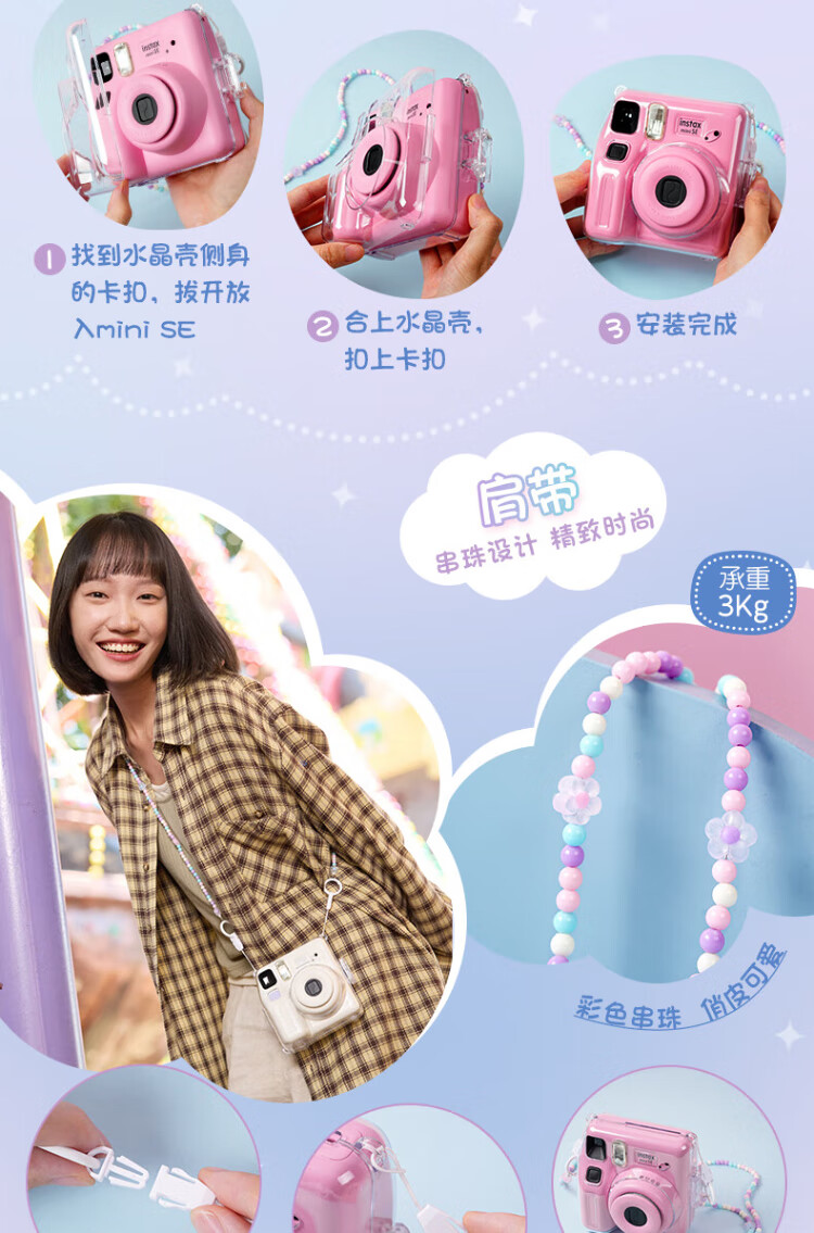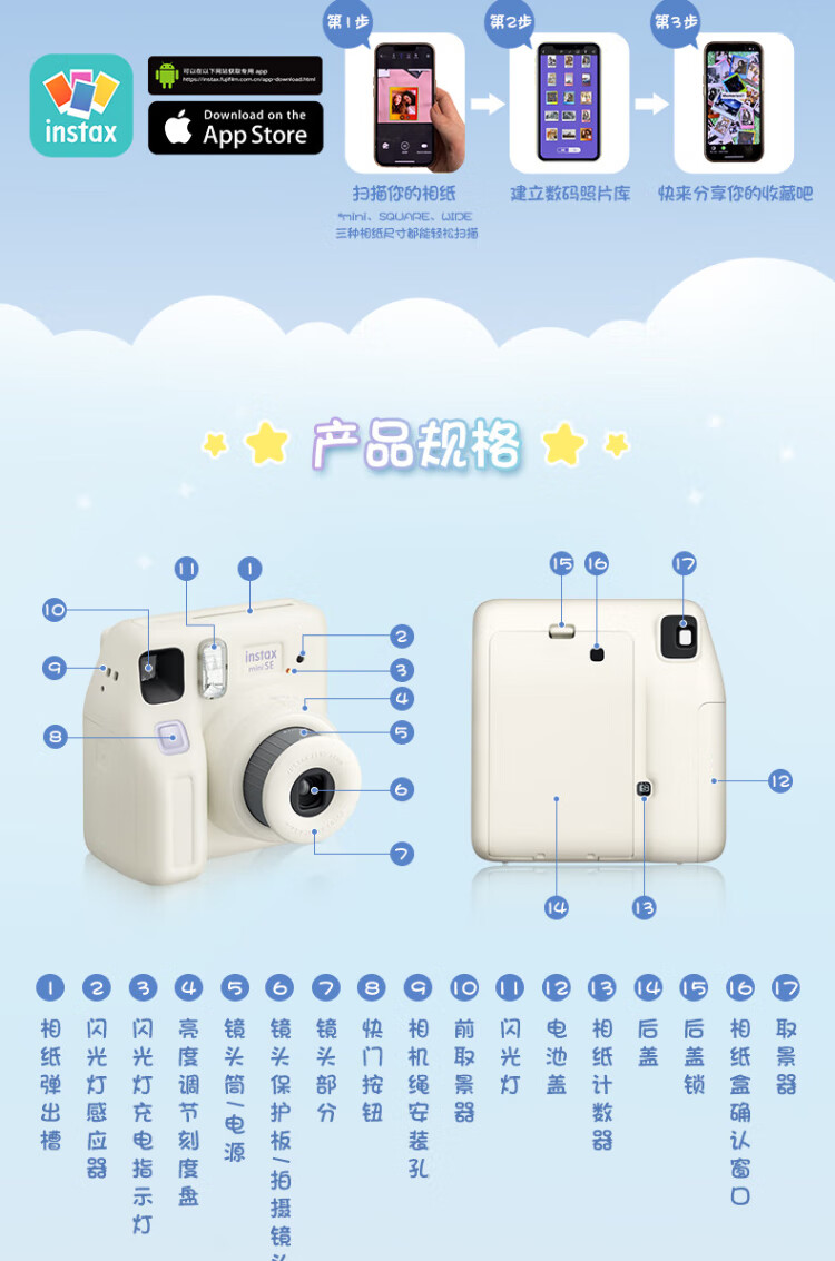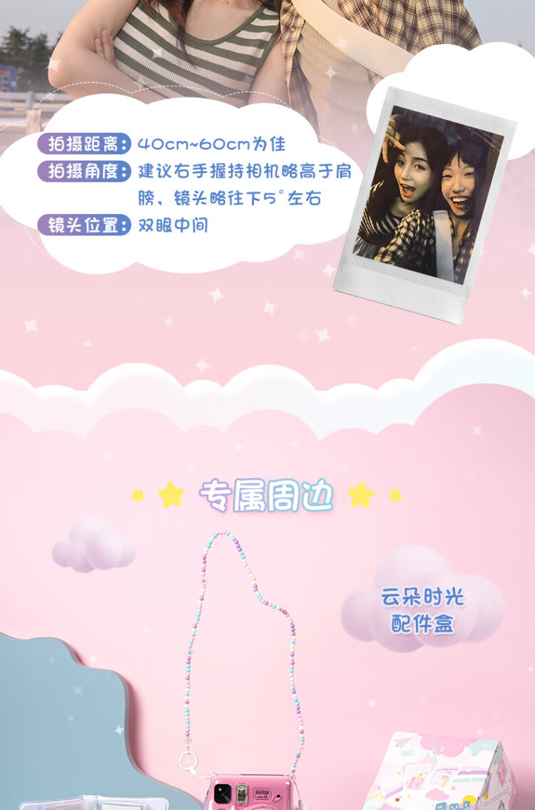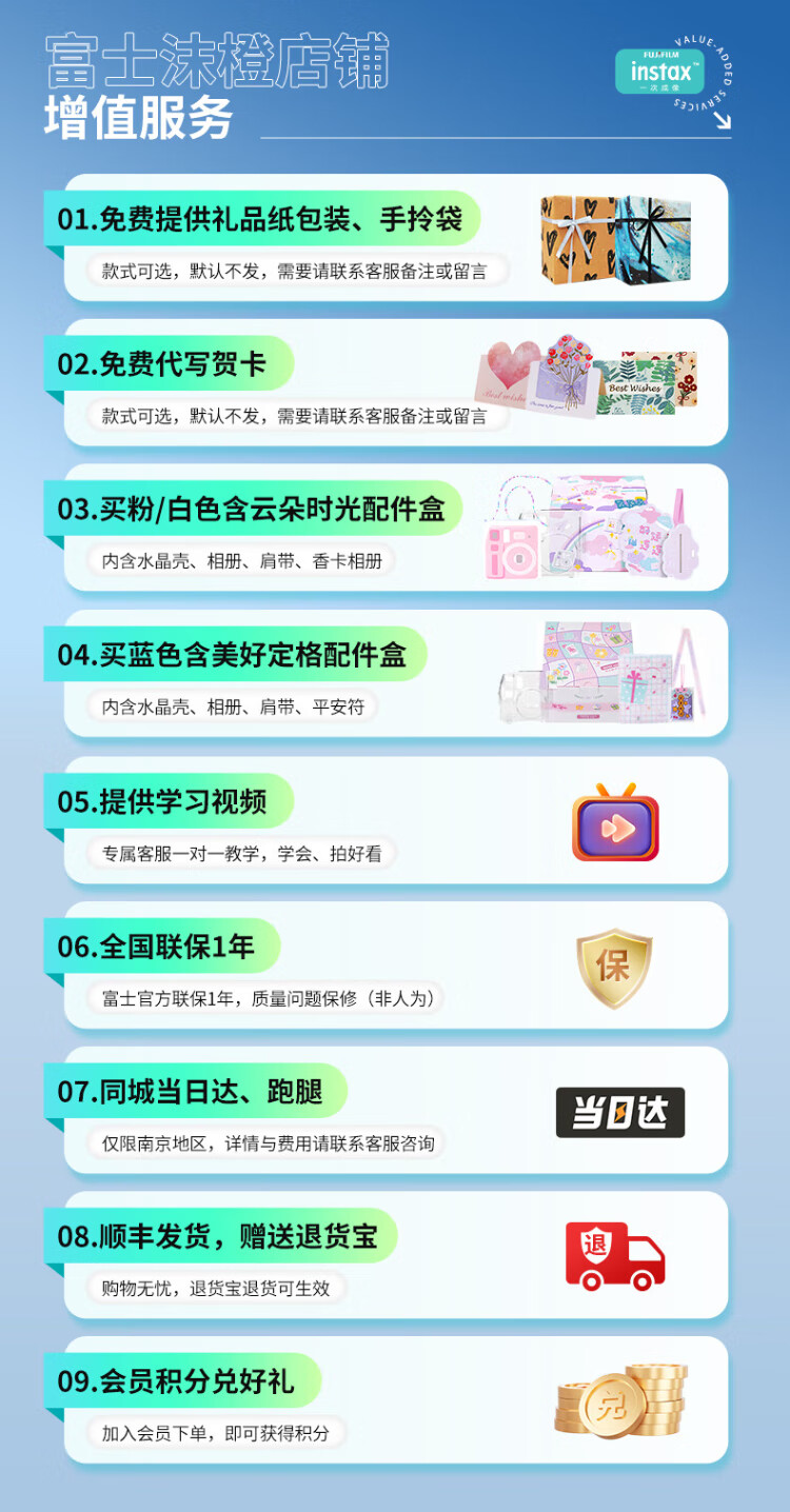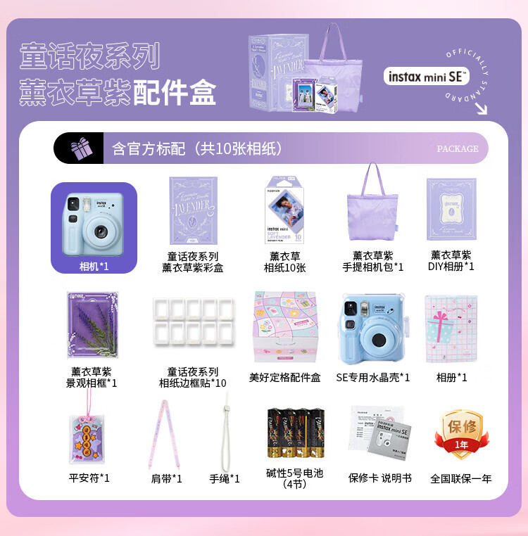 富士(FUJIFILM)拍立得instax mini SE男女学生款一次成像傻瓜相机mini 7+/7s/7c升级版套餐含相纸 蓝色【美好定格套装】 套餐二【标配+10张相纸+硅胶套+基础版礼包】