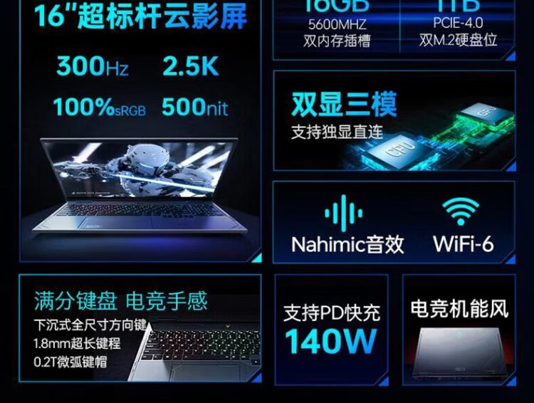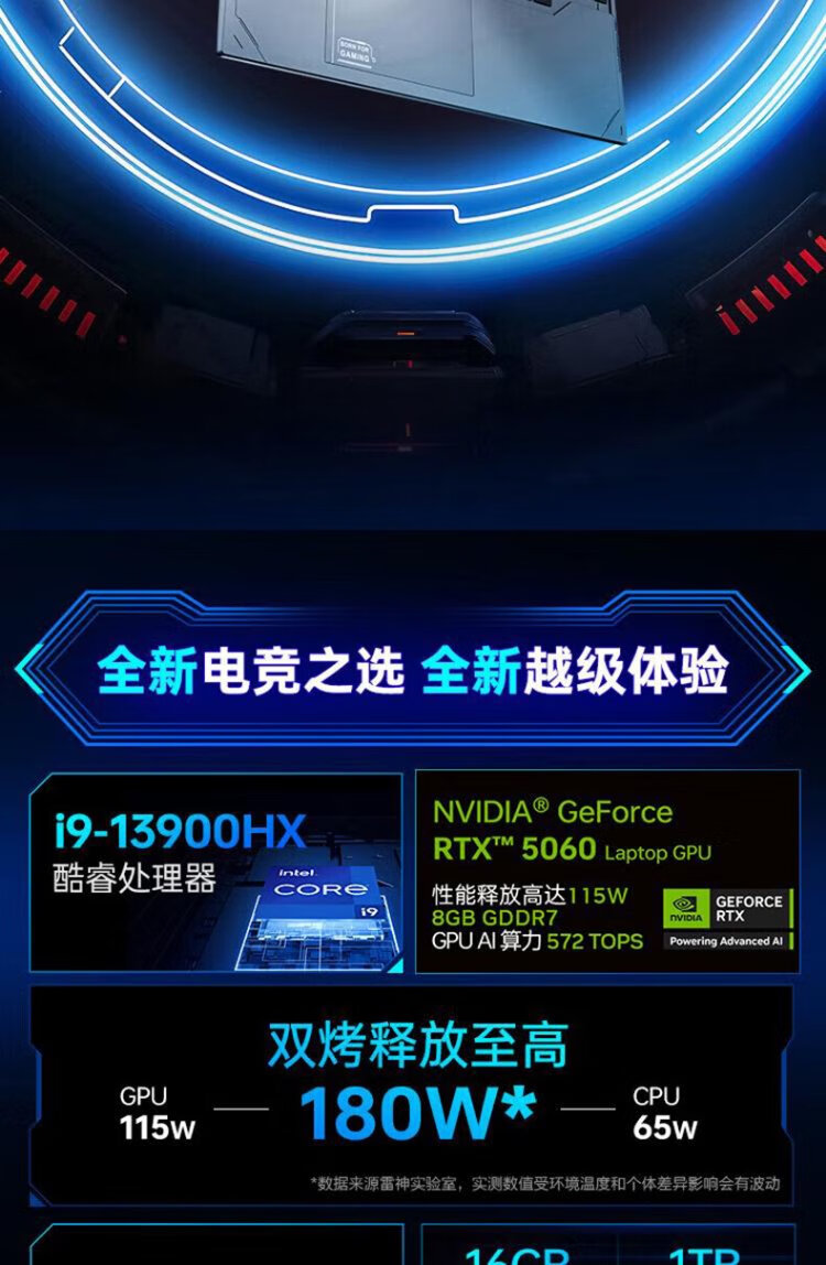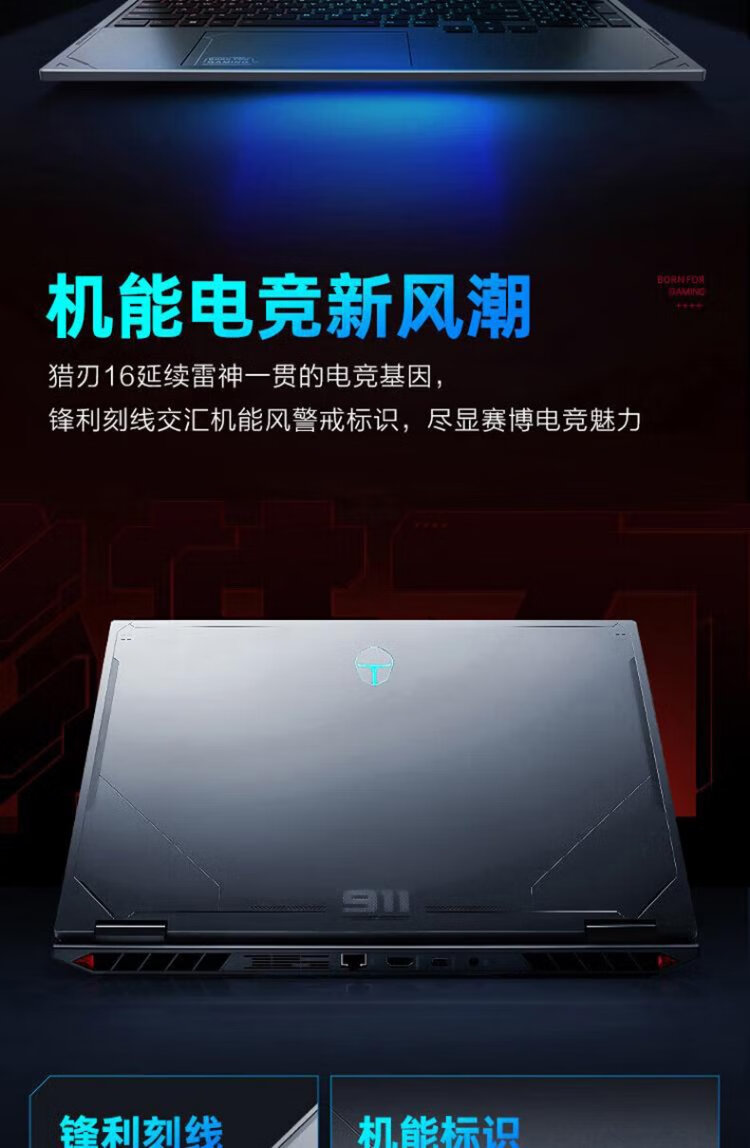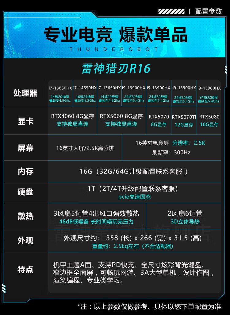 雷神(ThundeRobot)2025新品猎刃16英特尔酷睿i7/i9独显RTX4060/5060高性能学生轻薄电竞Ai游戏本笔记本电脑 i9-139HX/5070/16G1T