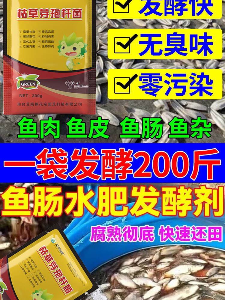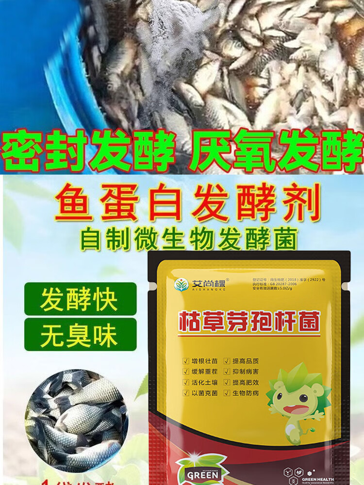 艾尚棵鱼蛋白发酵剂专用酶解粉枯草芽孢杆菌种自制水溶肥料鱼杂虾堆肥 1袋装【可发酵150斤】