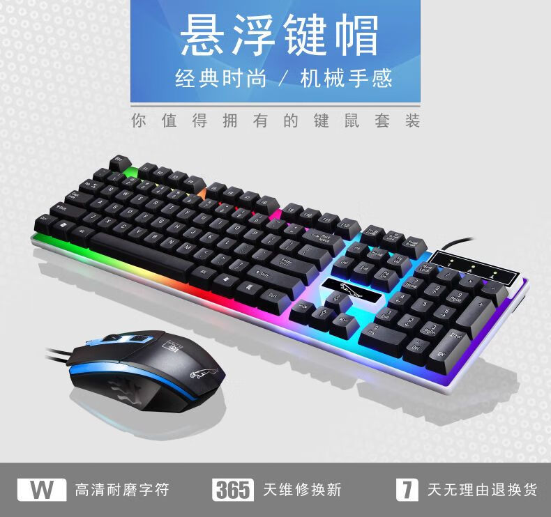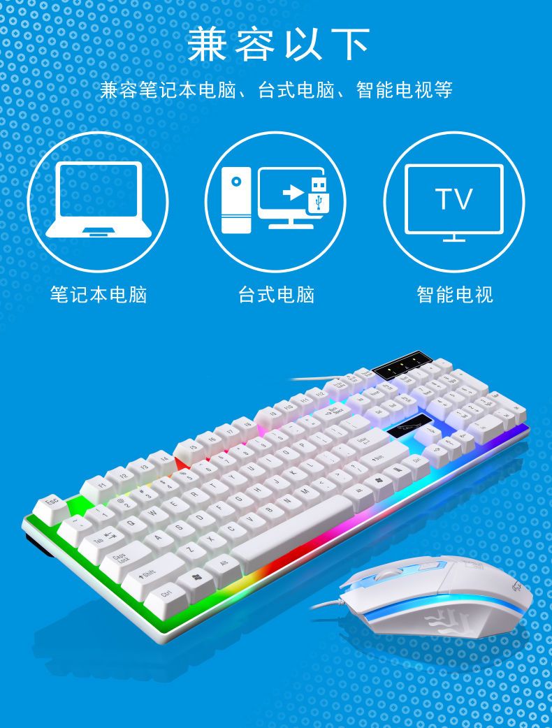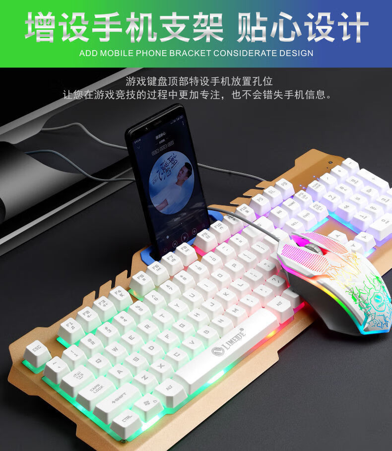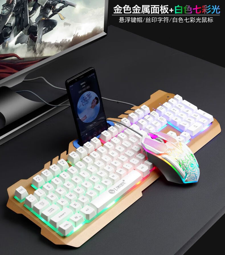 Topka E-Sports Mechanical Feel Gaming Keyboard and Mouse Set Desktop Notebook Universal Computer Wired Keyboard and Mouse Illuminated White Value Edition-Mechanical Feel