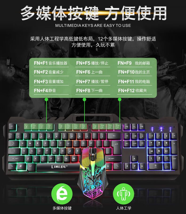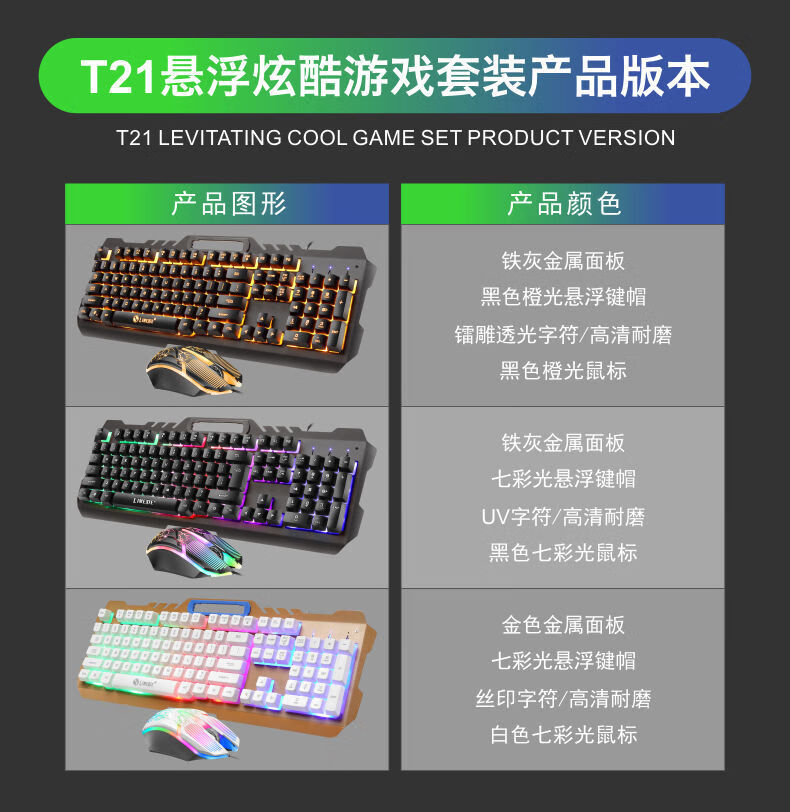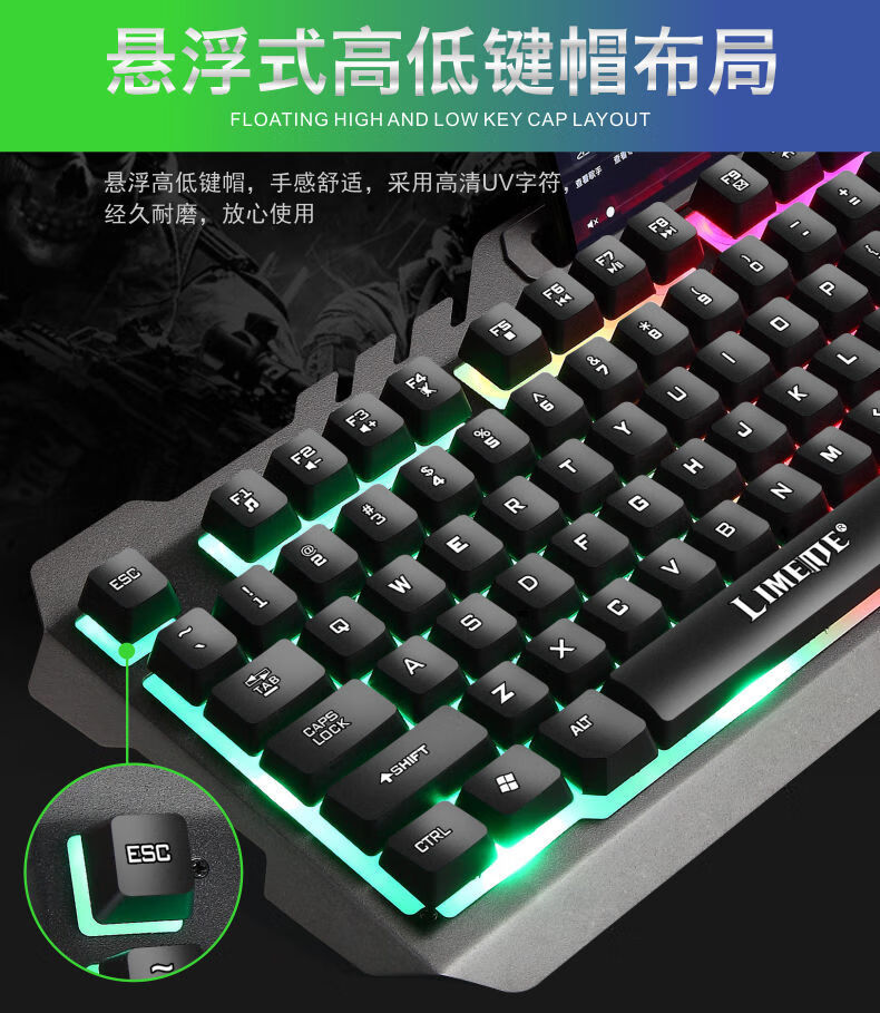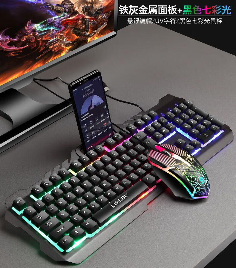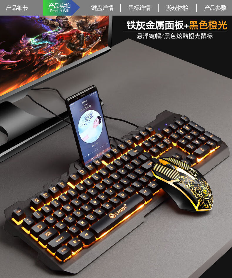 Topka E-Sports Mechanical Feel Gaming Keyboard and Mouse Set Desktop Notebook Universal Computer Wired Keyboard and Mouse Illuminated White Value Edition-Mechanical Feel