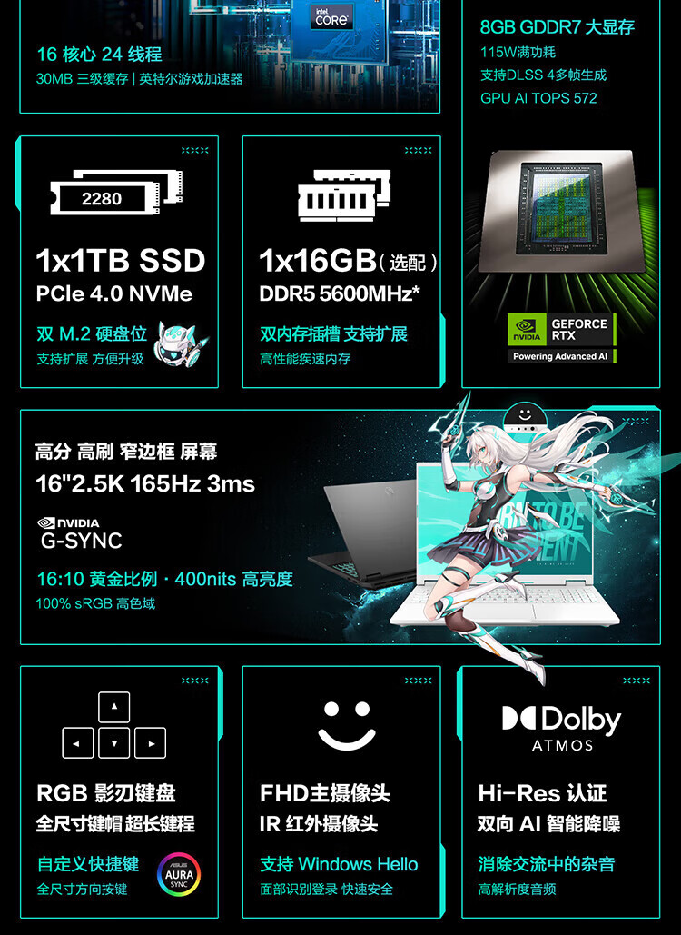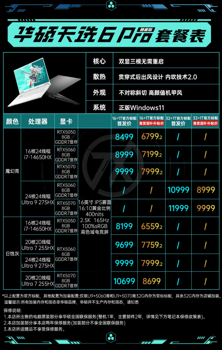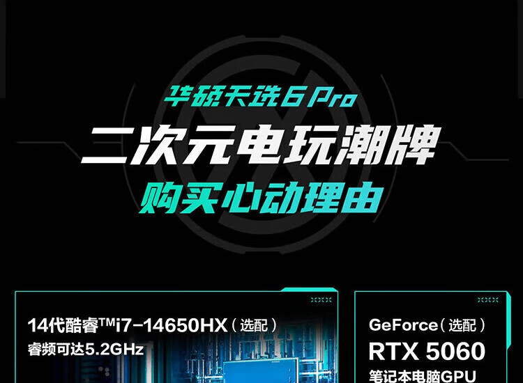华硕(ASUS)天选6 Pro 酷睿版 国家补贴20% 酷睿HX 16英寸电竞游戏本 笔记本电脑 酷睿U7-255HX|RTX5060|日蚀灰 16G内存/1T高速固态硬盘 2.5K 16:10高刷高亮高色域电竞屏