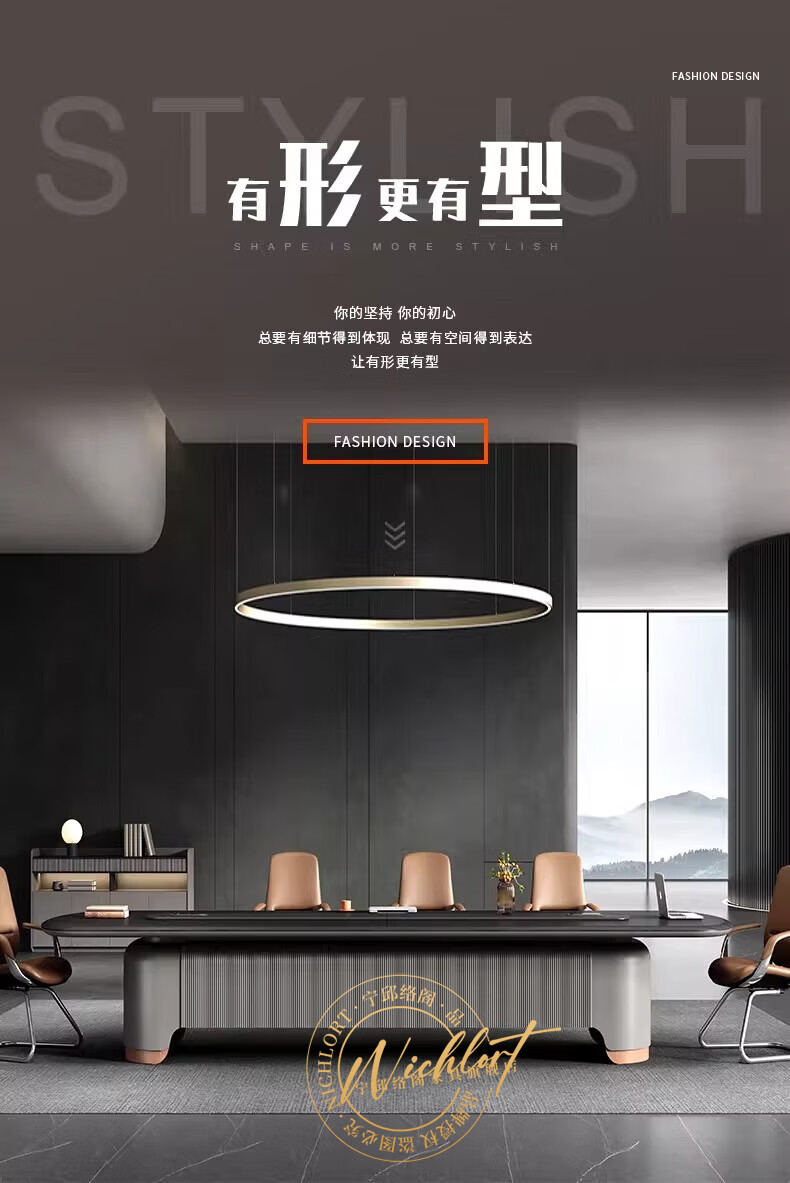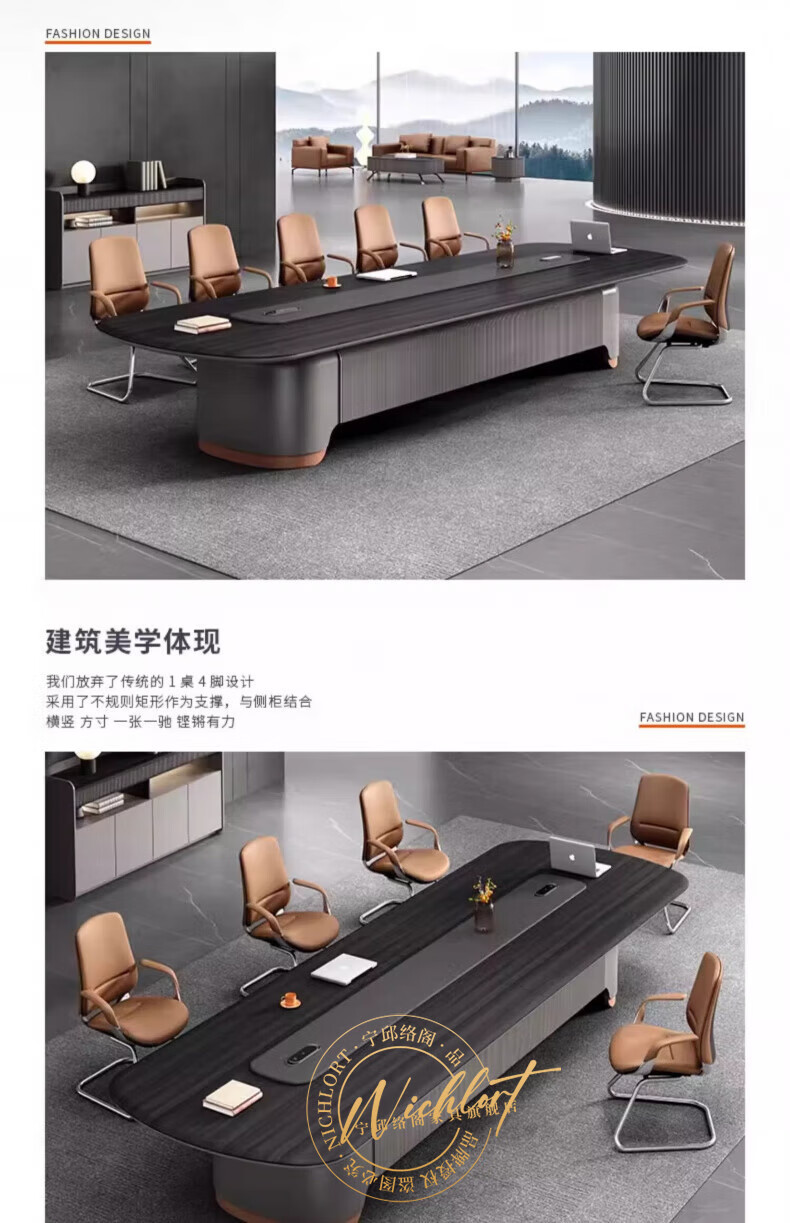 宁邱络阁(NICHLORT)办公家具会议桌长桌简约现代会议室接待长条洽谈桌桌椅组合 4.8m会议桌