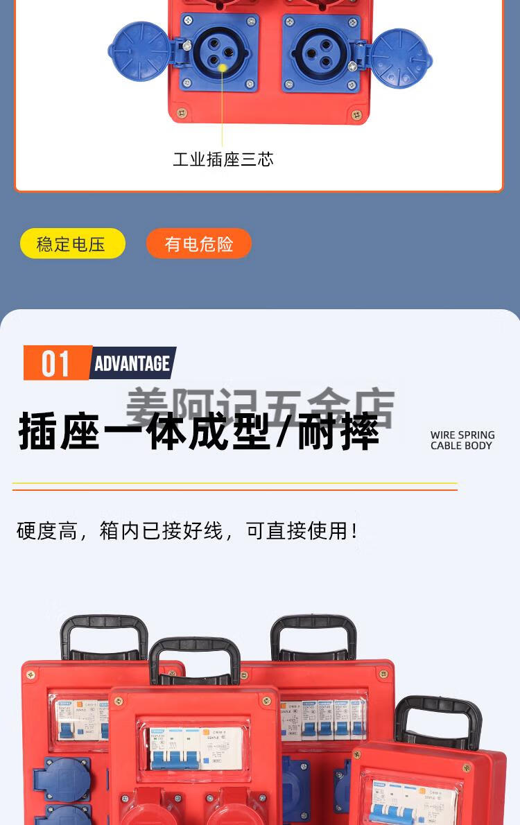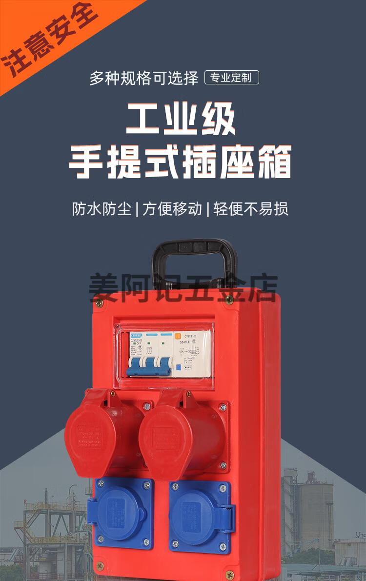 工地临时专用三极配电箱220v380v塑壳防水防爆插座手提式移动电箱 大方体__双漏保三相两位防爆手提