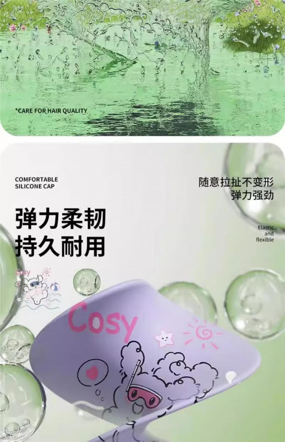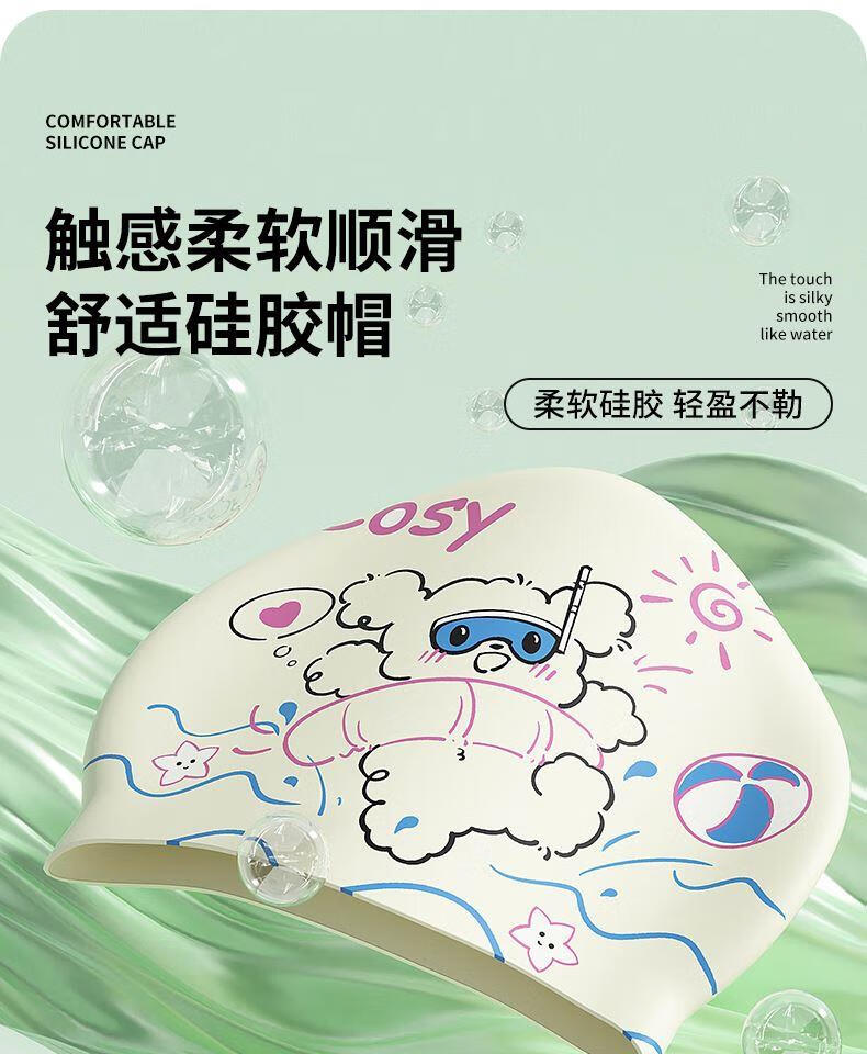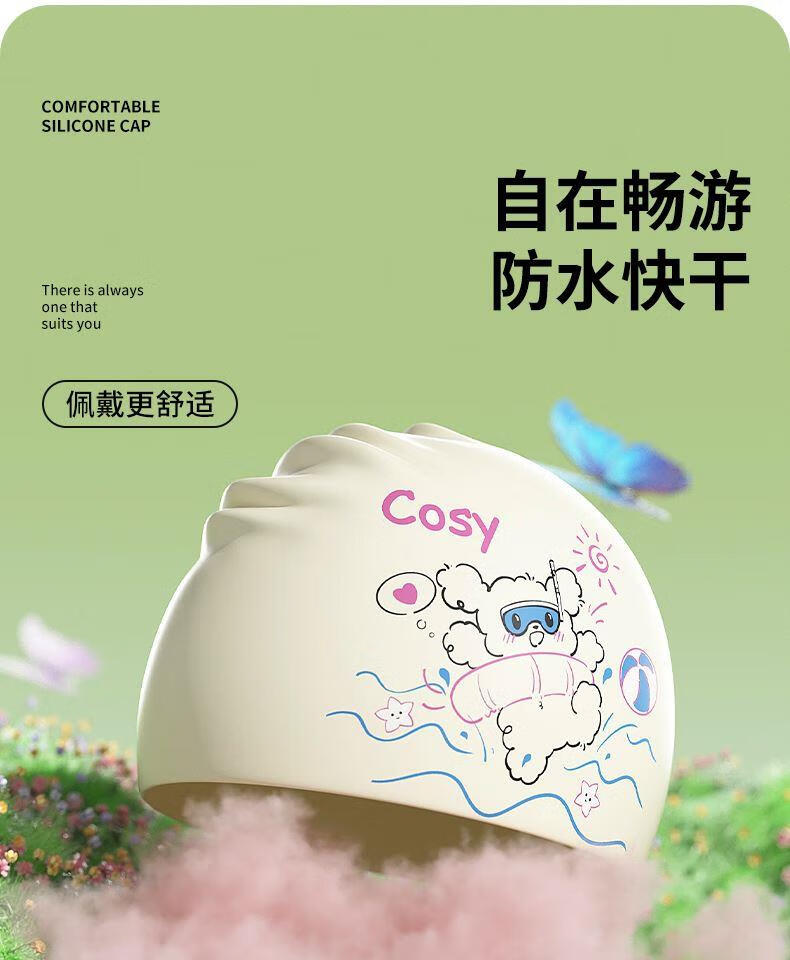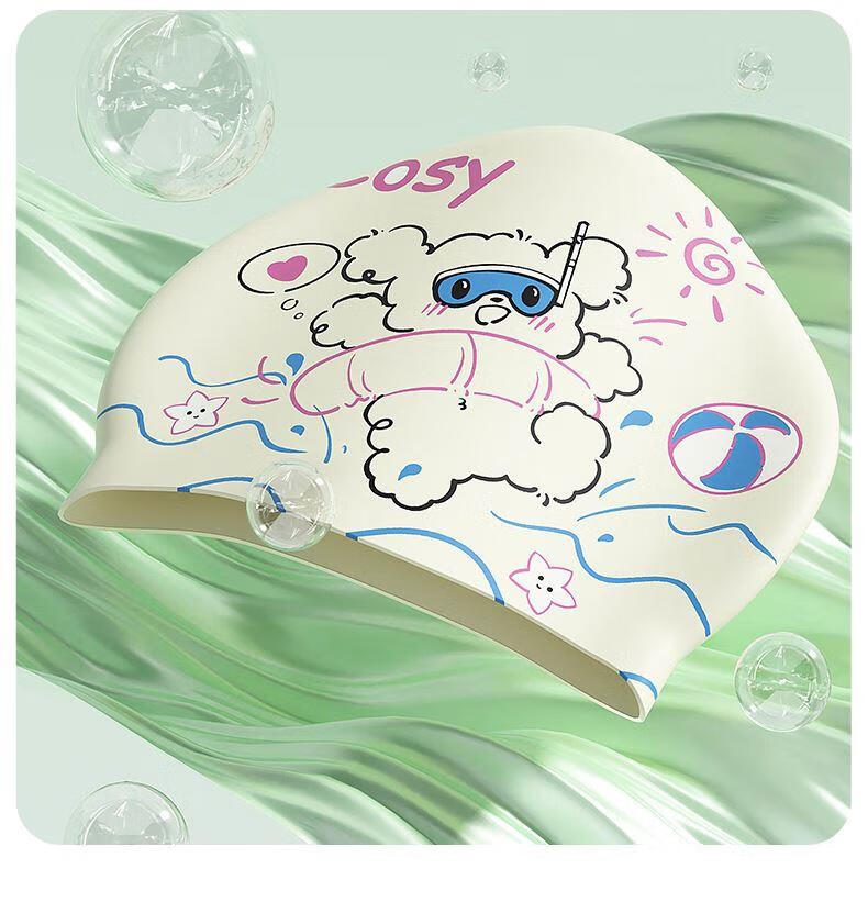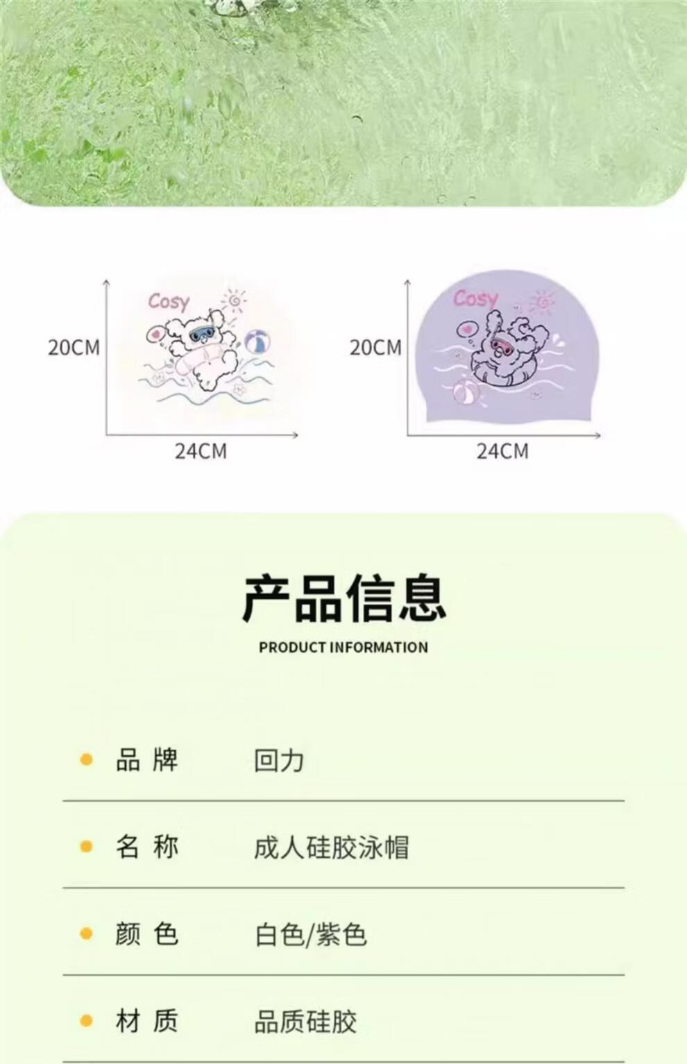 JCZS德国品牌硅胶泳帽女款长发加大头围成人可爱高颜值防水护耳游泳帽 紫色线条狗+粉色泳镜