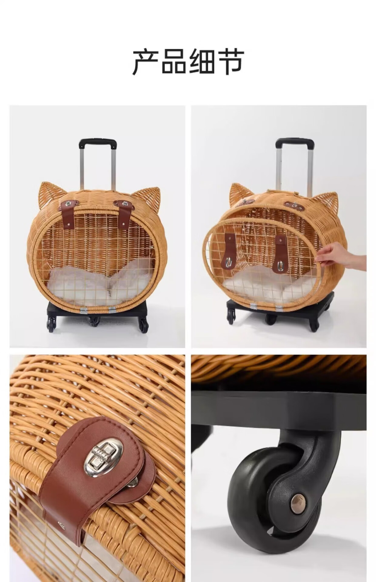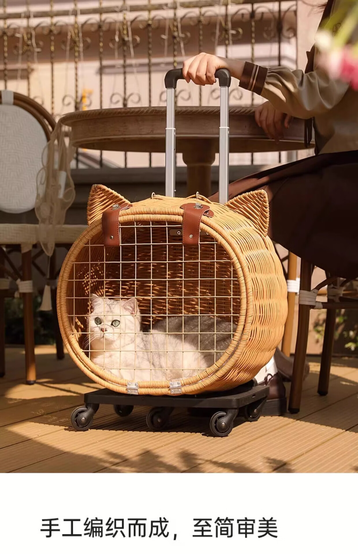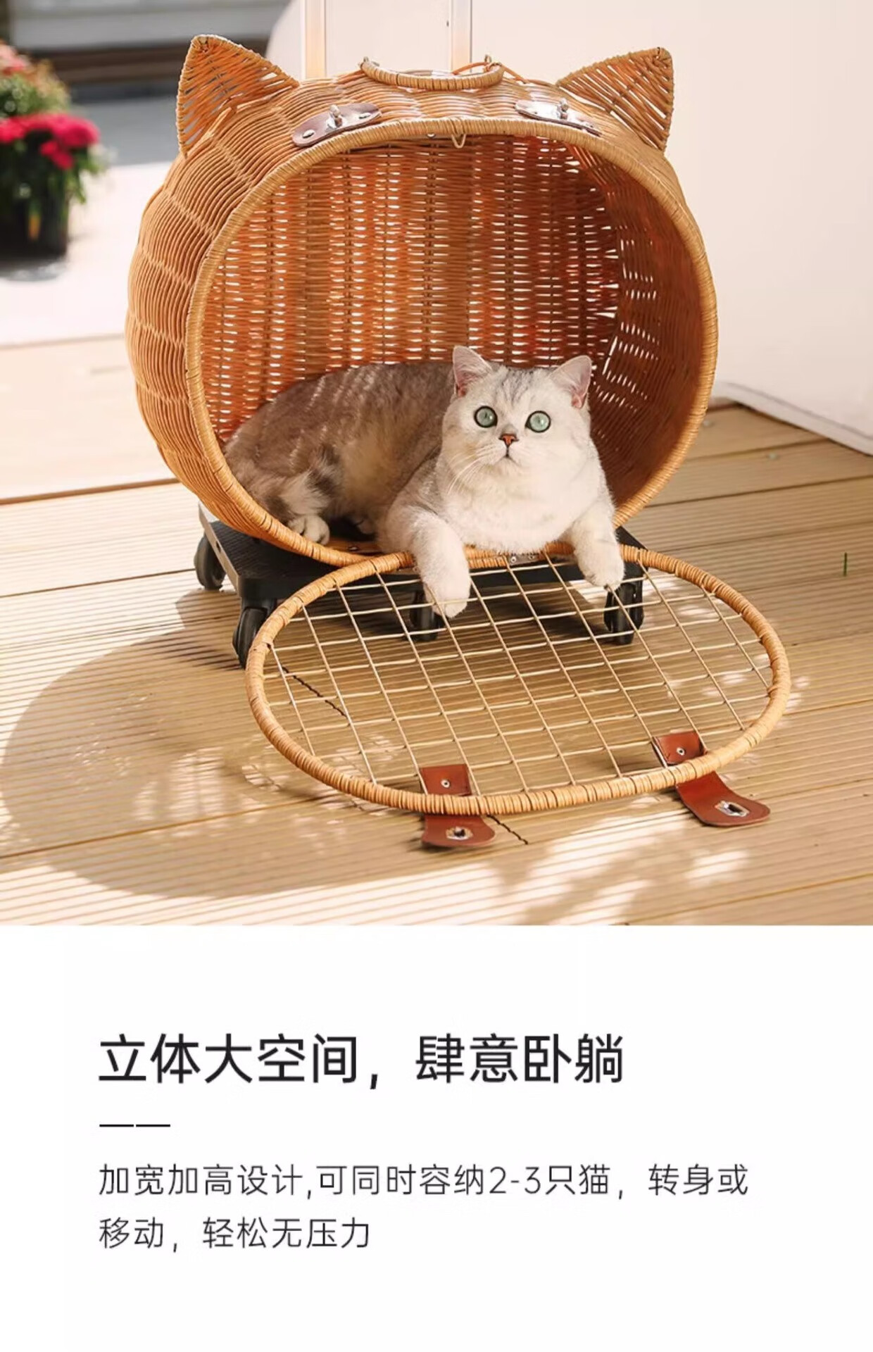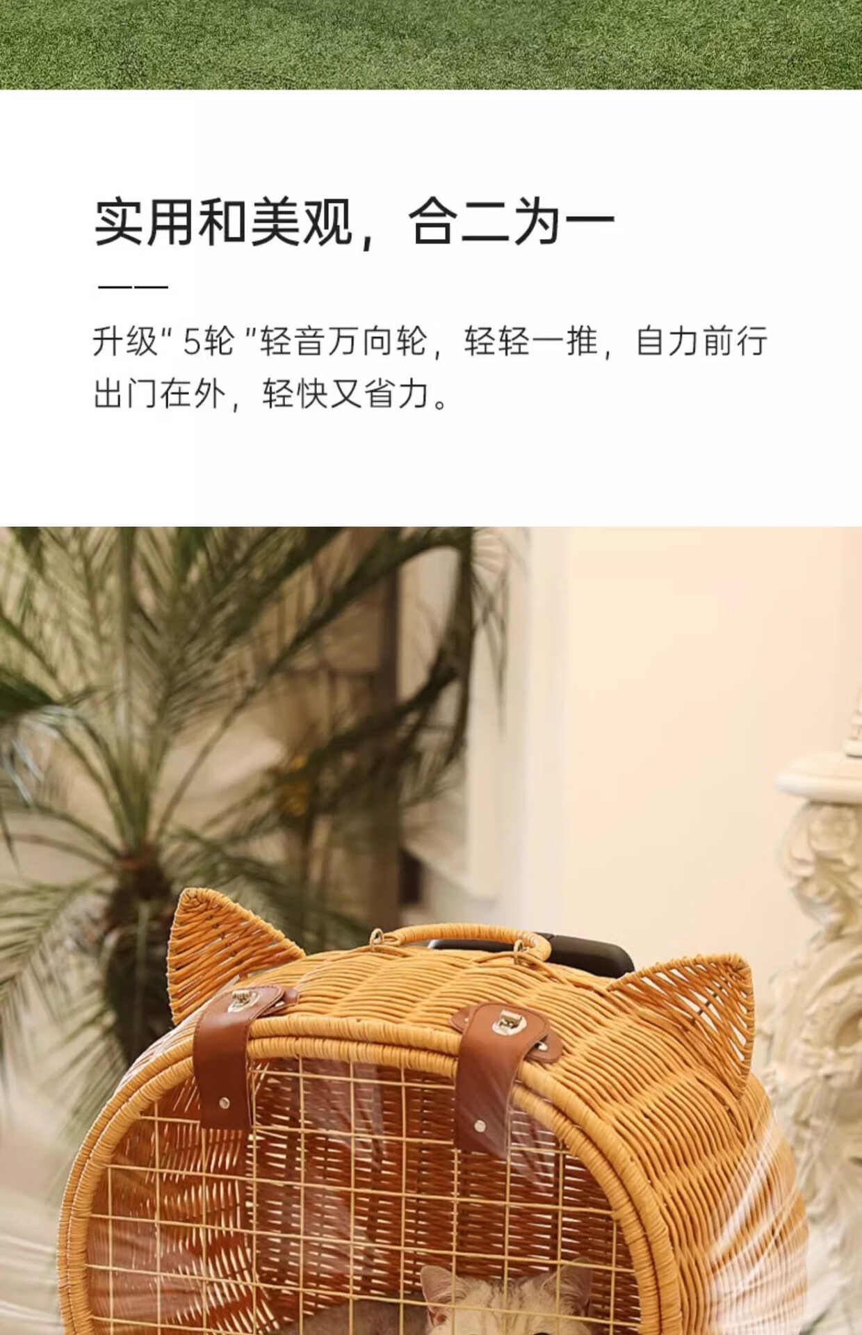 田园顽狗宠物外出推车小狗猫咪小拉车遛狗车小型犬博美约夏克狗狗推车用品 猫头形 48*45*30cm