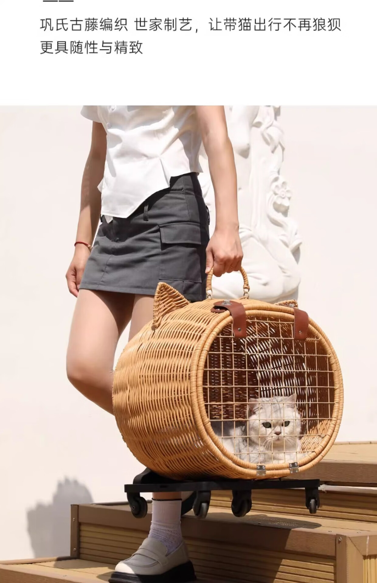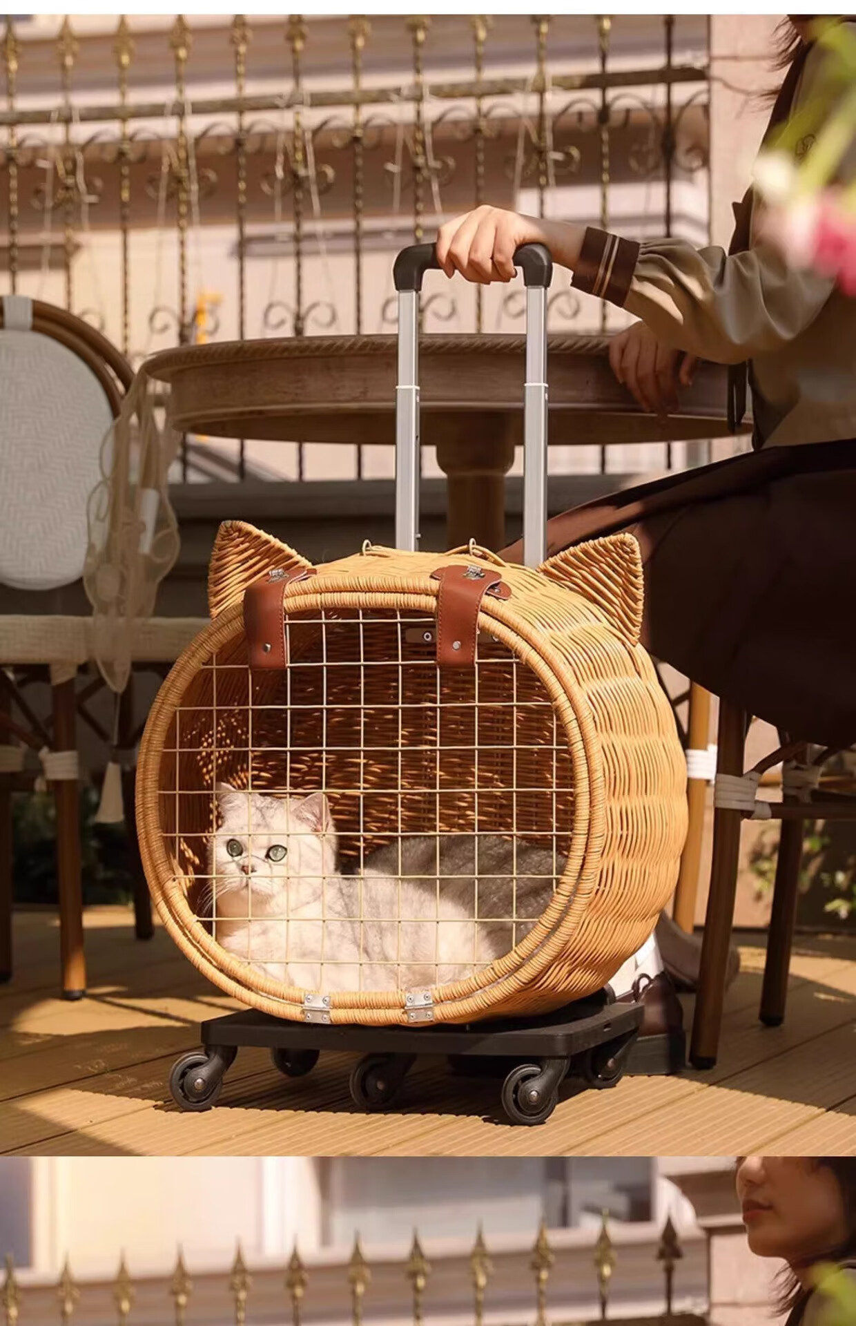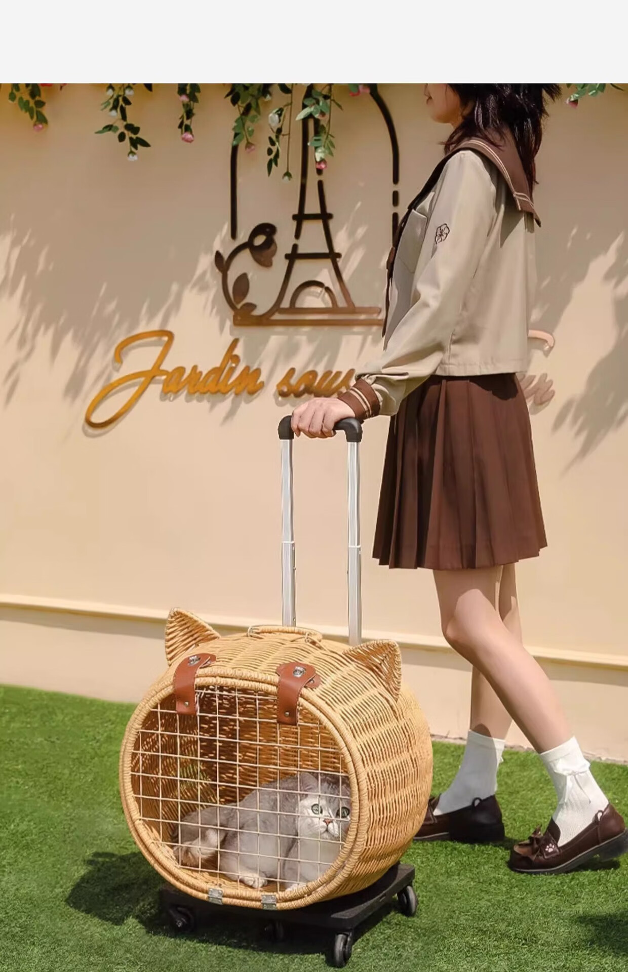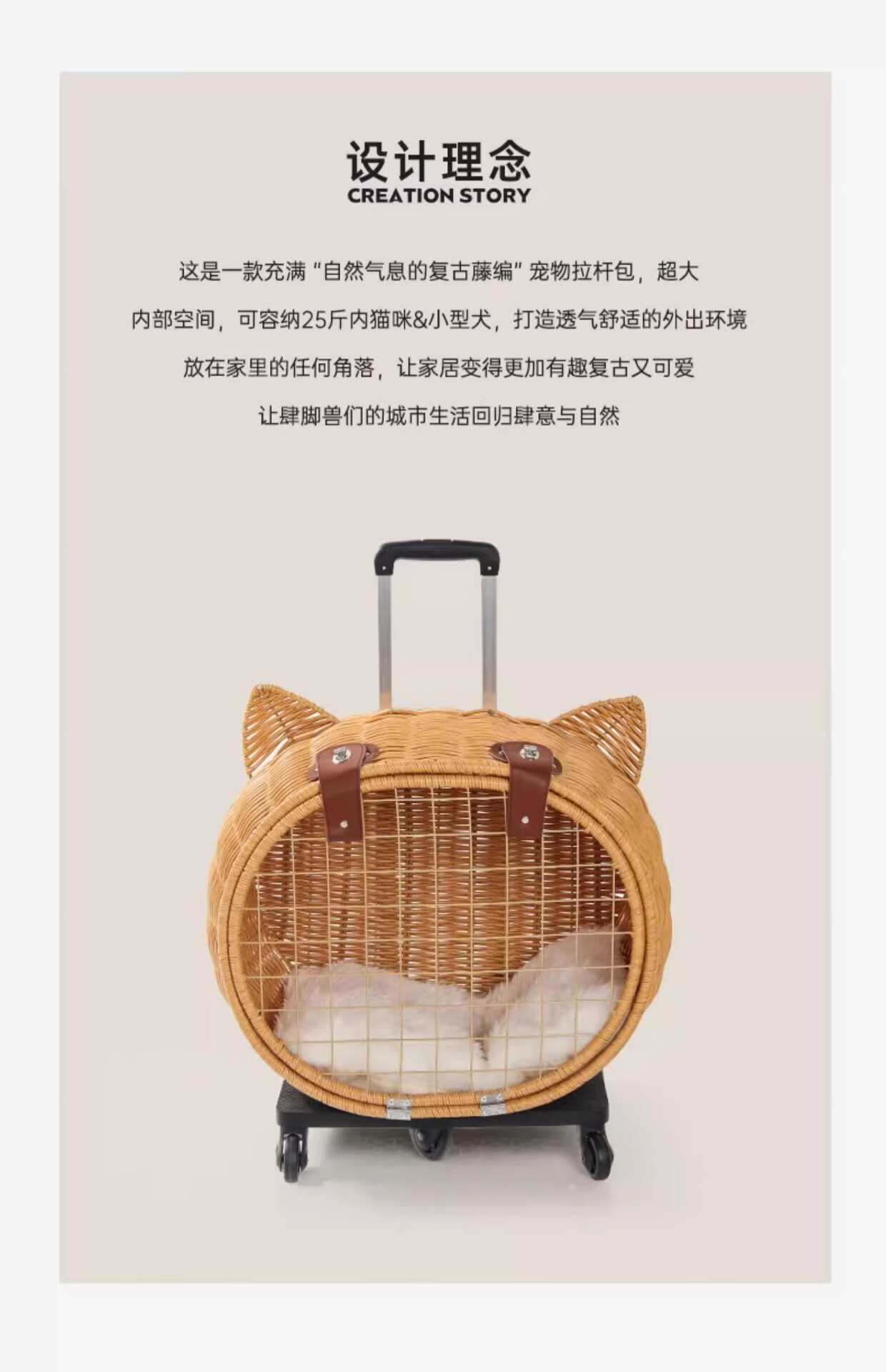 田园顽狗宠物外出推车小狗猫咪小拉车遛狗车小型犬博美约夏克狗狗推车用品 猫头形 48*45*30cm
