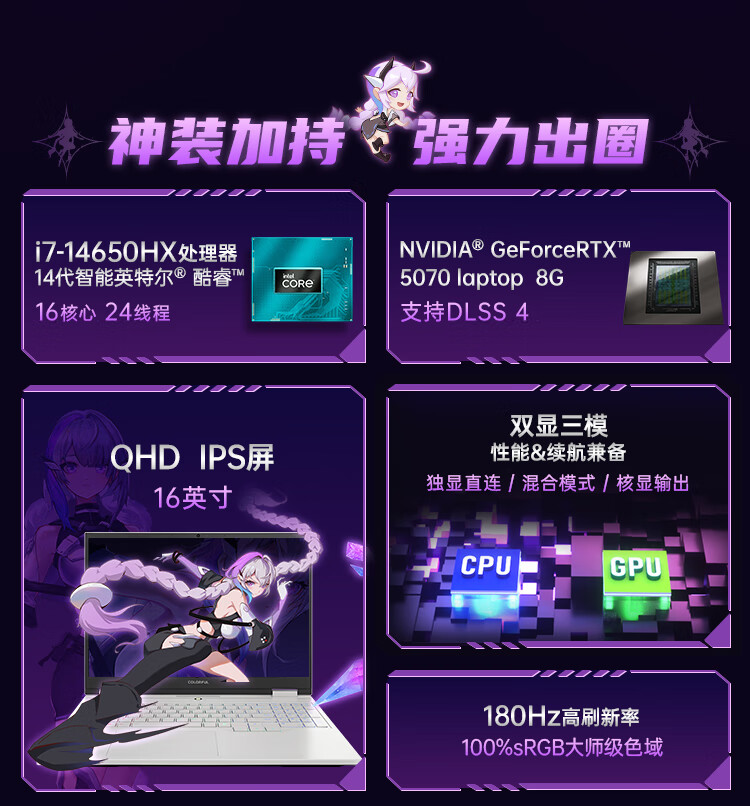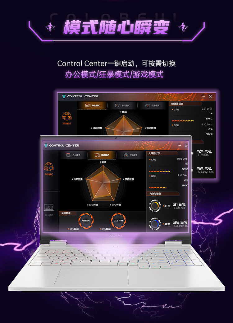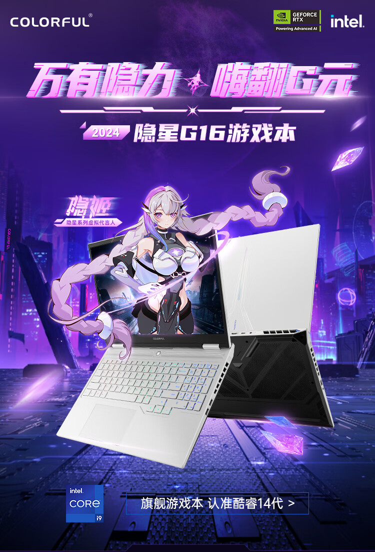 Colorful Hidden Star g16pro/P16 gaming laptop e-sports notebook Core i9 5060/5070 full blood independent display student design AI editing computer to play Black Myth i7-14650HX /5070 16G 1T