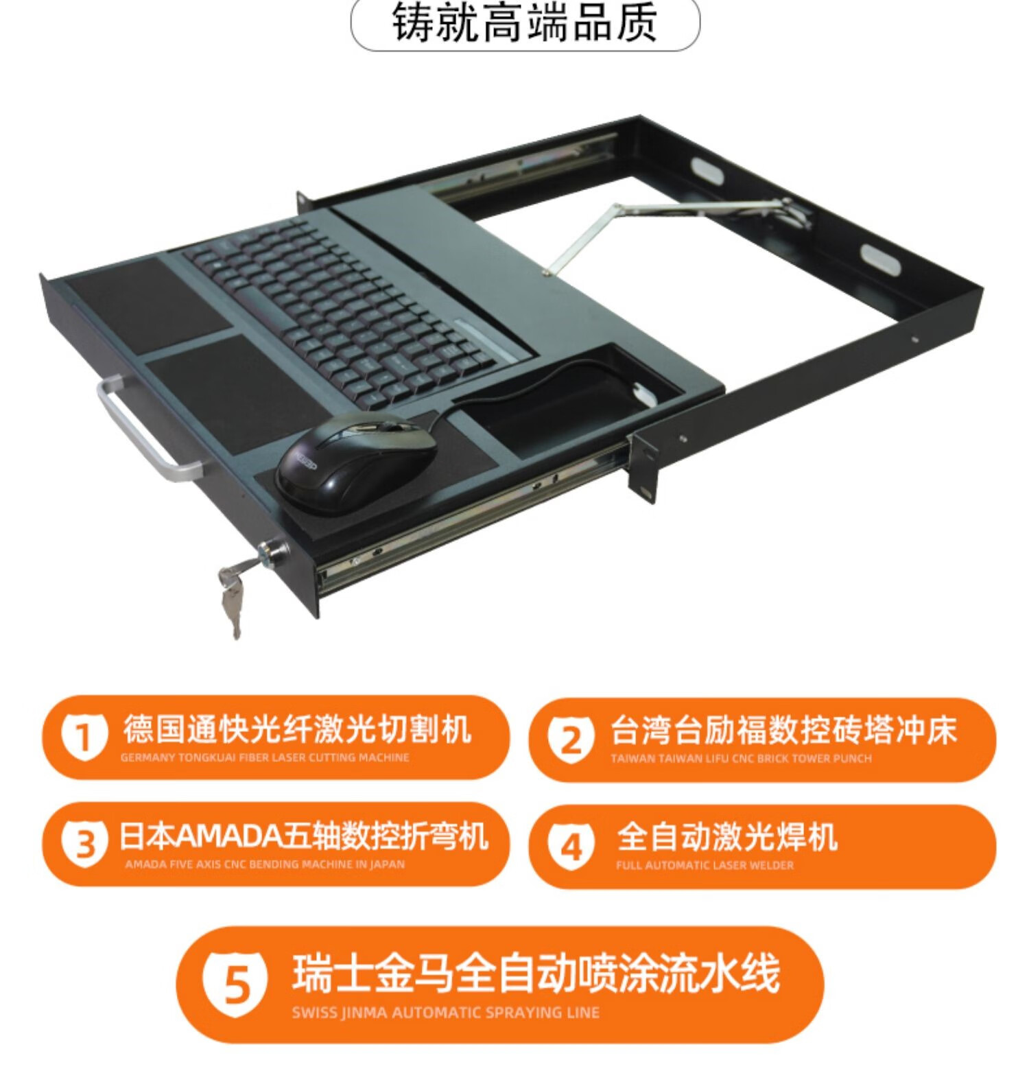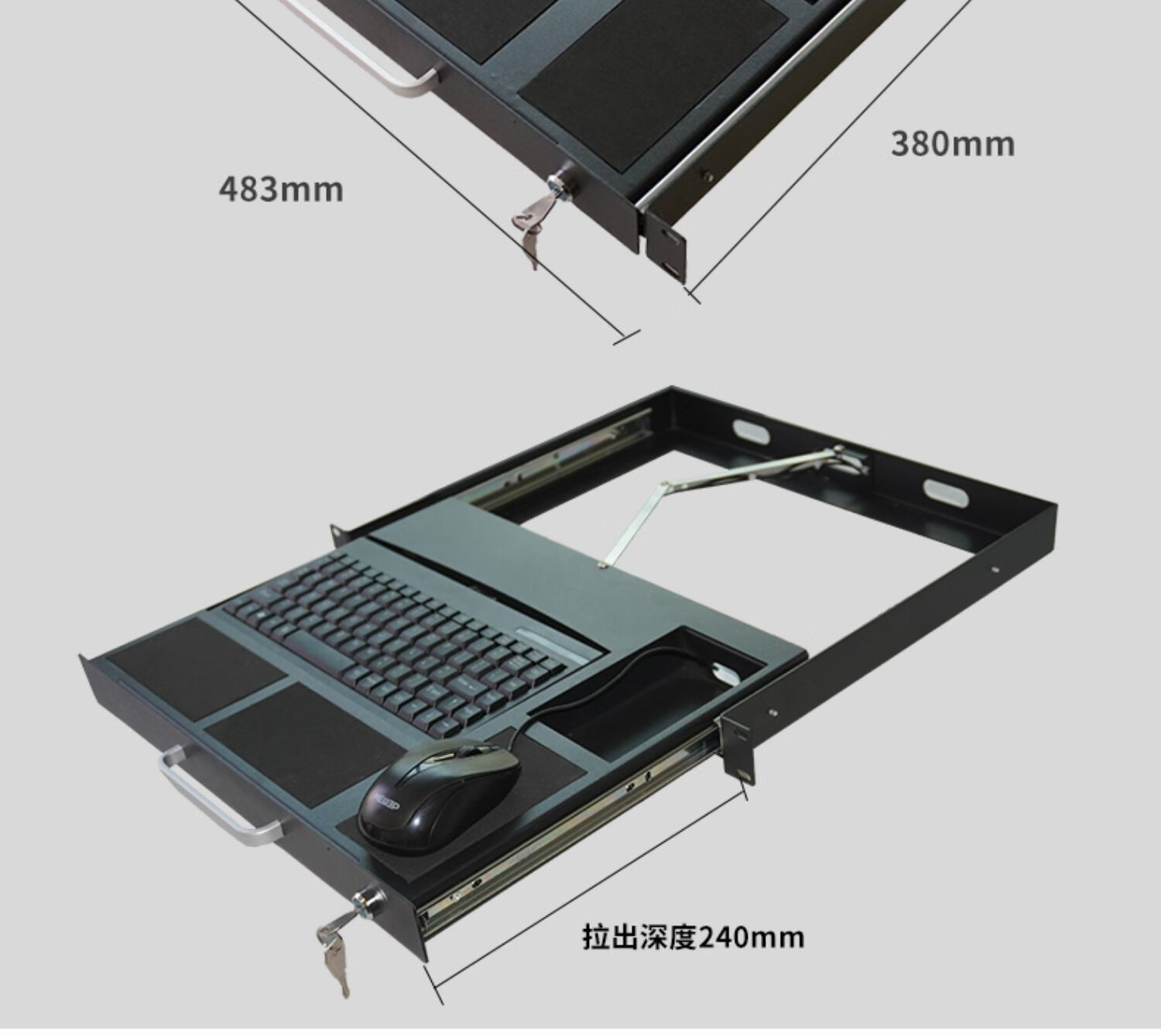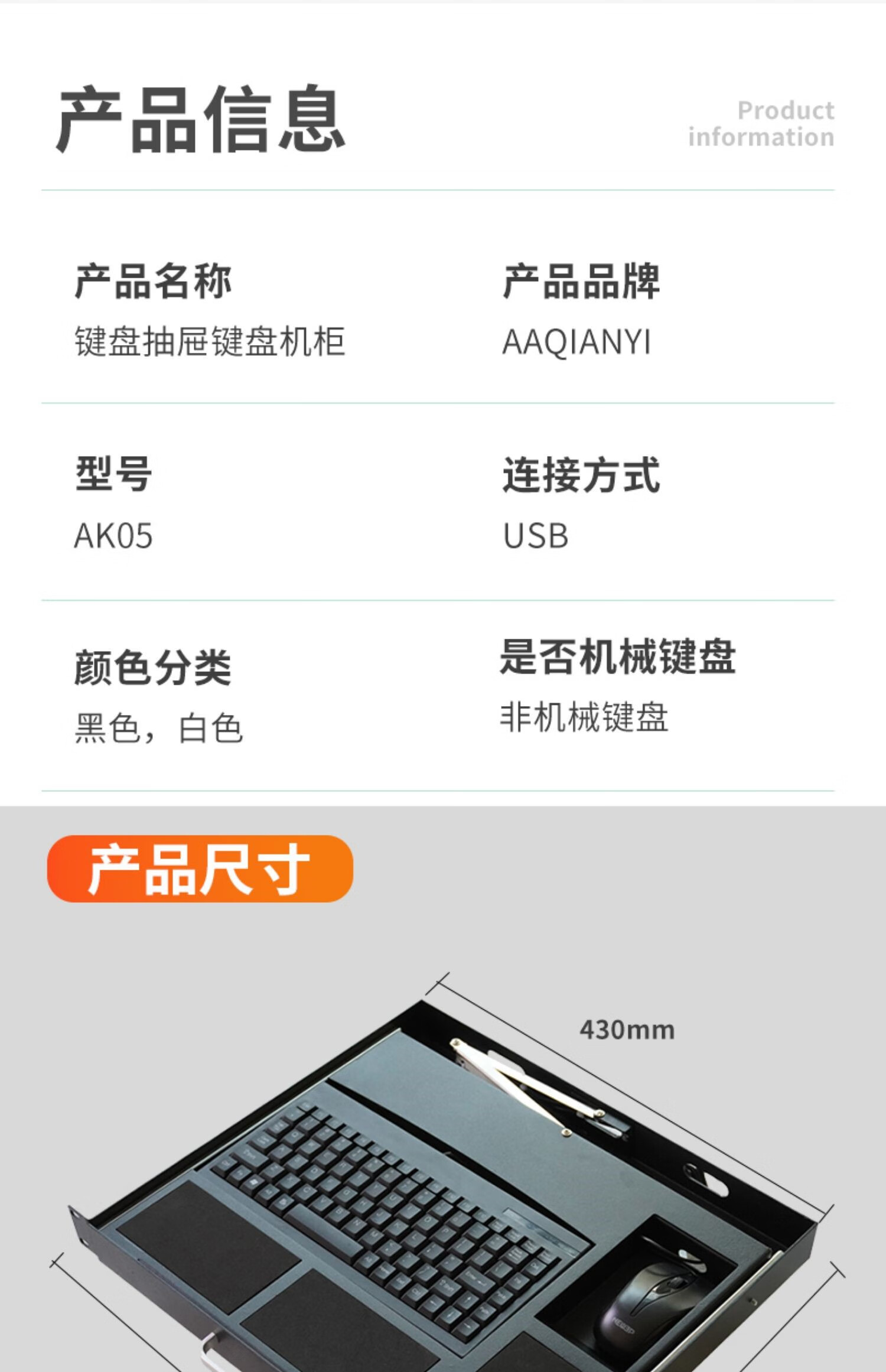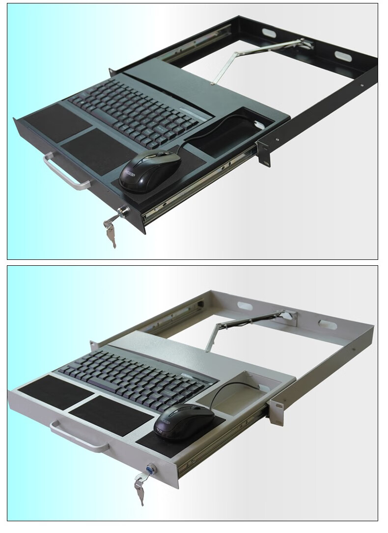 1U上架式键盘抽屉键盘机柜USB键盘LKB90工业黑色键盘工业抽屉工控 白色套餐1(RAL7035)