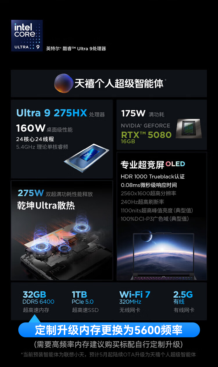 联想拯救者Y9000P 2025新款电竞游戏笔记本电脑 AI元启 旗舰酷睿Ultra9-275HX 32G 1T RTX5060 黑丨国补 16英寸|240Hz高刷