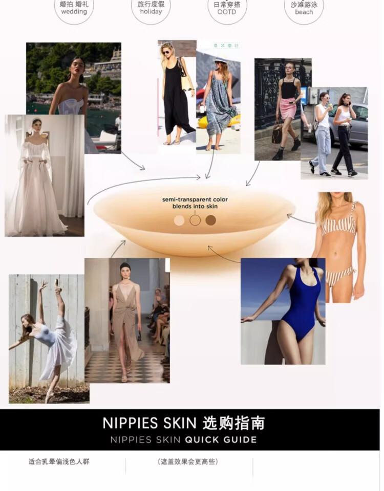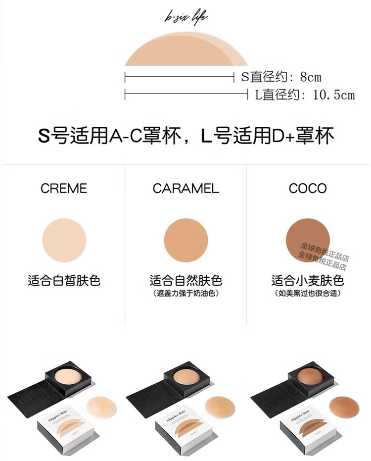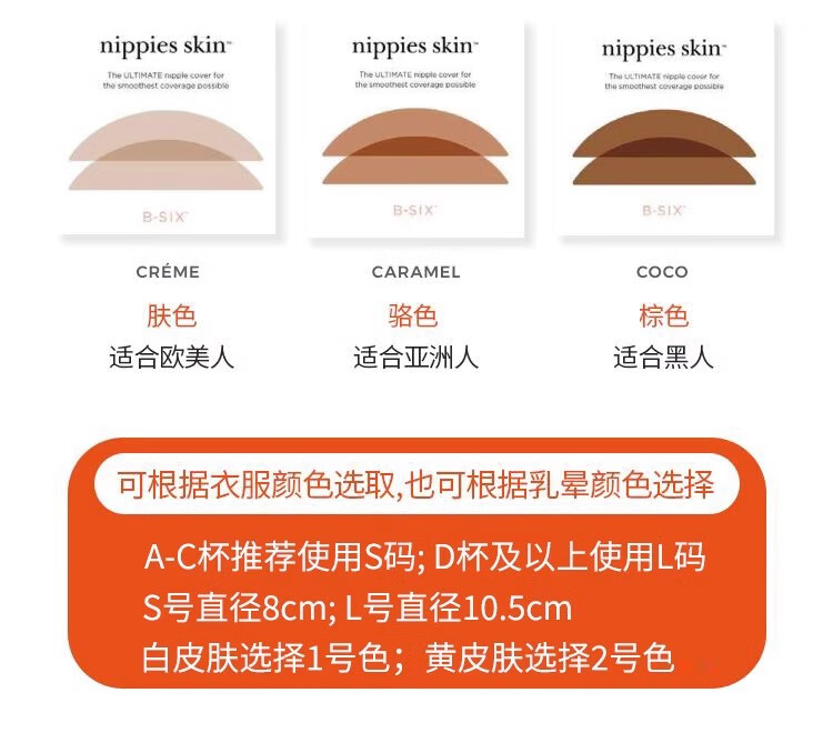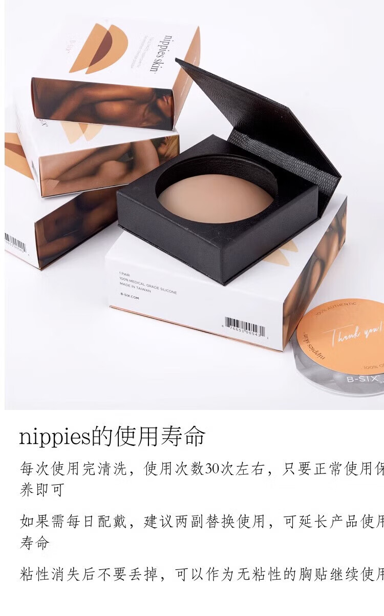 Bristols 6 bsix NippiesSkin粘性隐形硅胶文胸胸贴乳贴 S#中肤色适合A到C杯