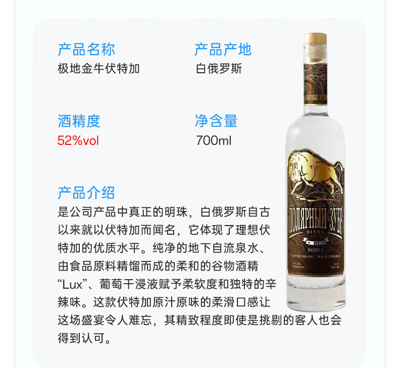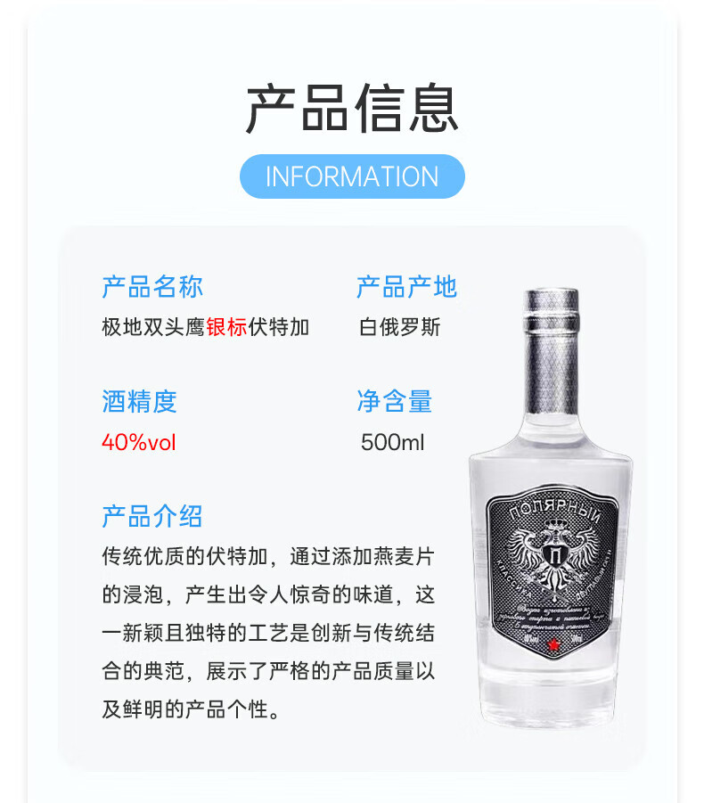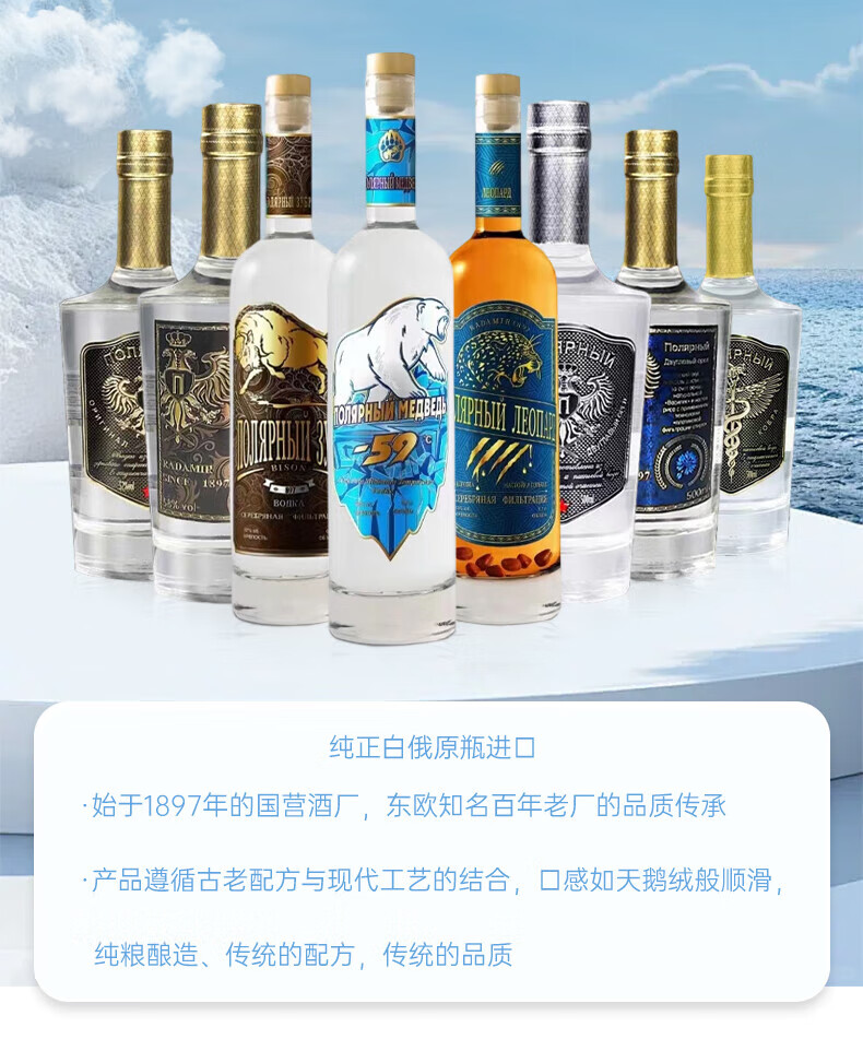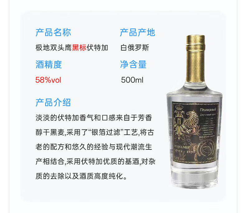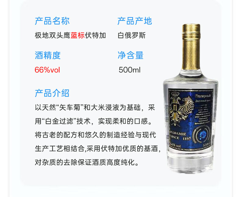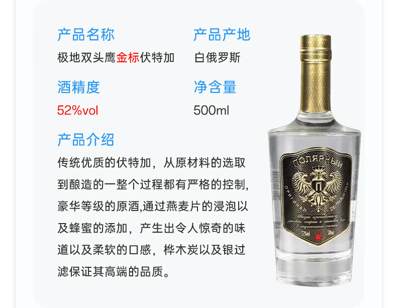 Polar Double-Headed Eagle Vodka Belarus Radamir Distillery Vodka Original bottle of imported foreign wine Blending base liquor Gift Polar Double-Headed Eagle Gold Label 52 degrees 500ML
