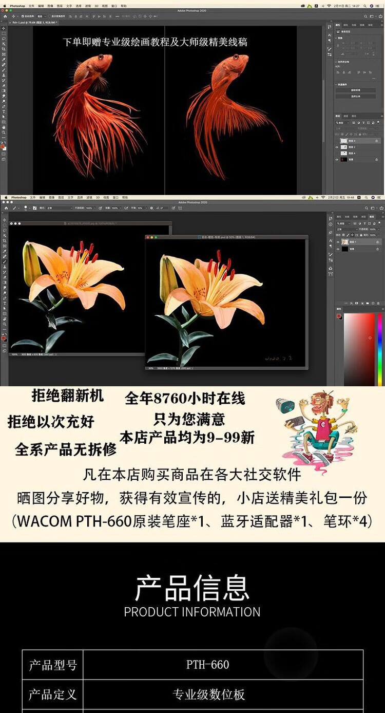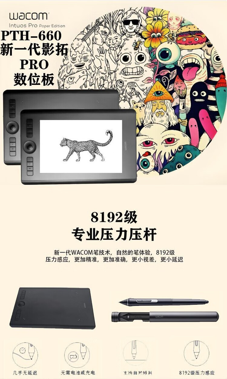 和冠数位板PTH660影拓pro Intuos专业手绘板学生电子绘画板蓝牙 PTH-460 单板+线