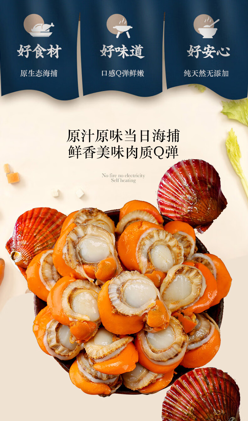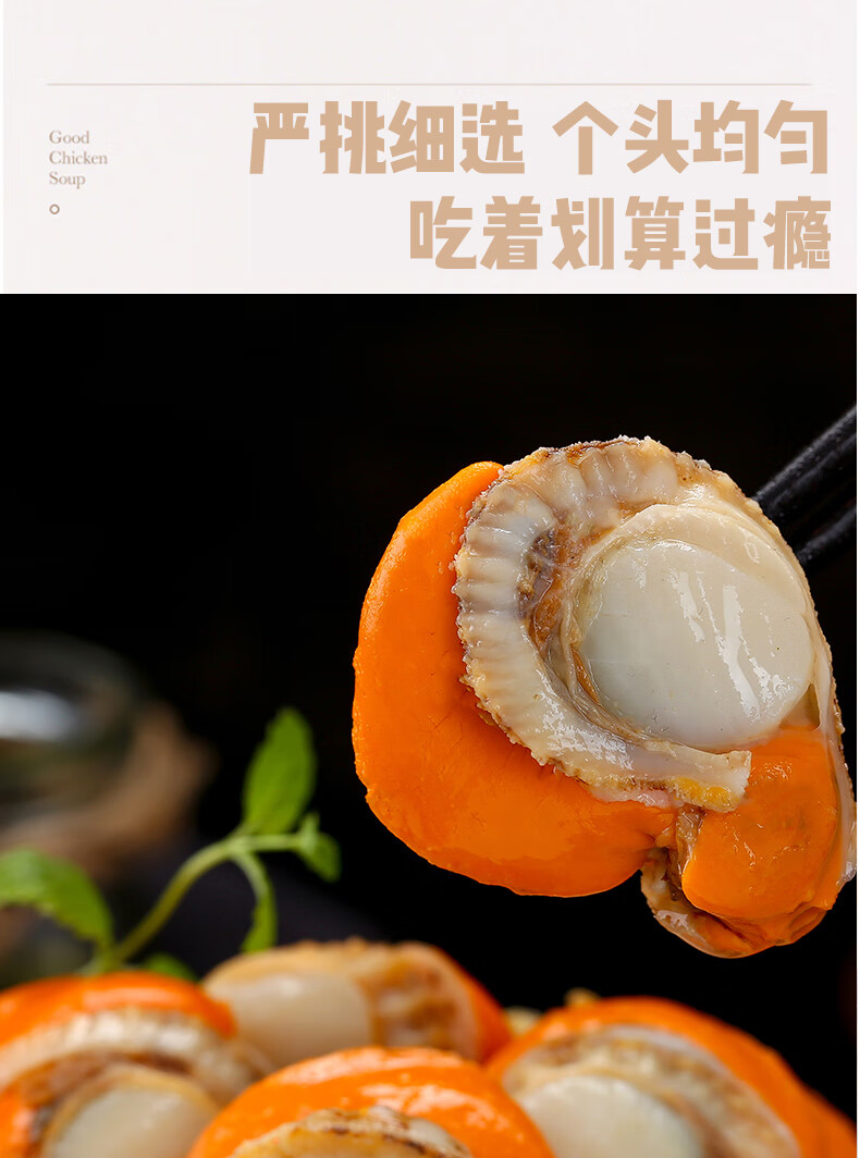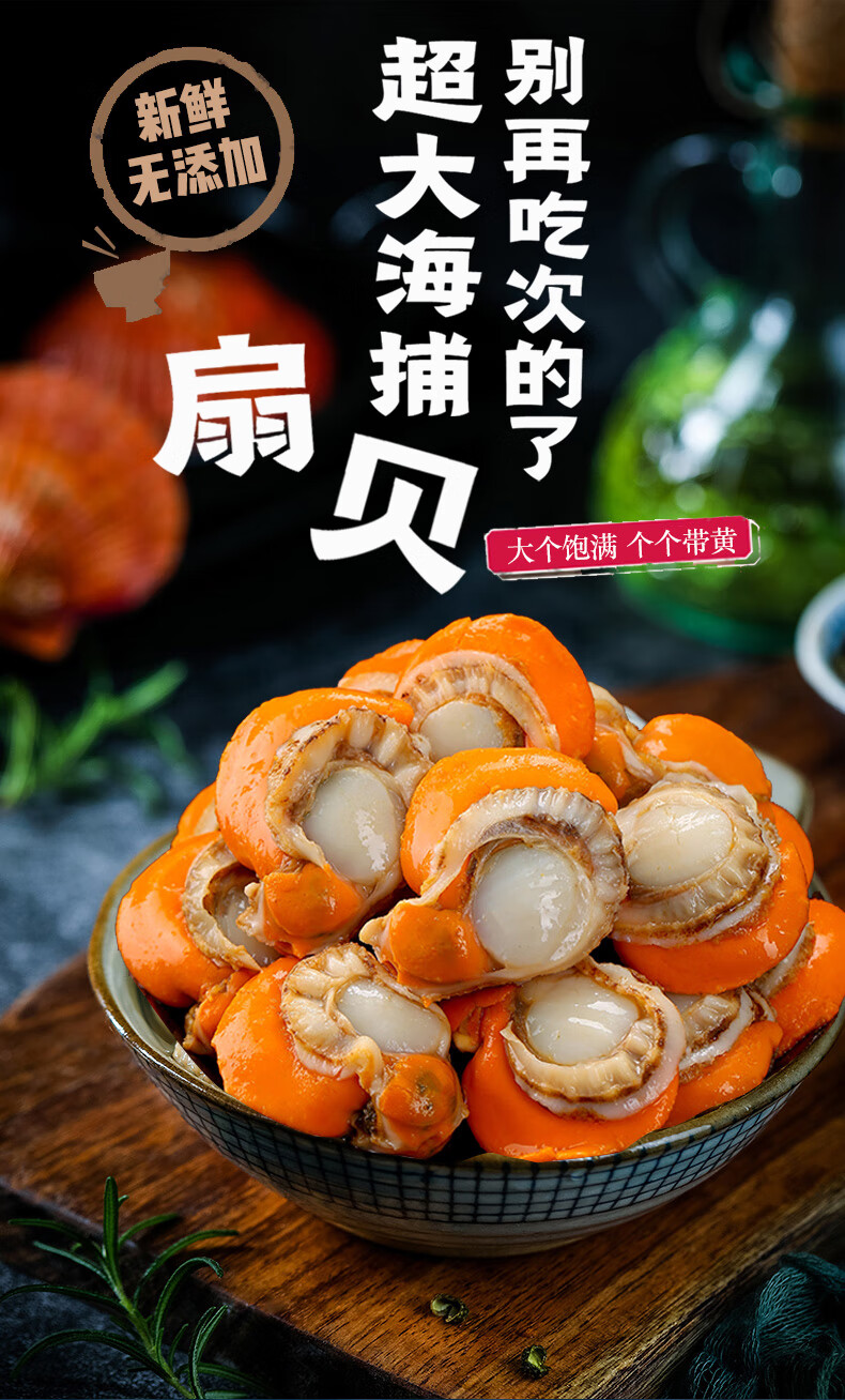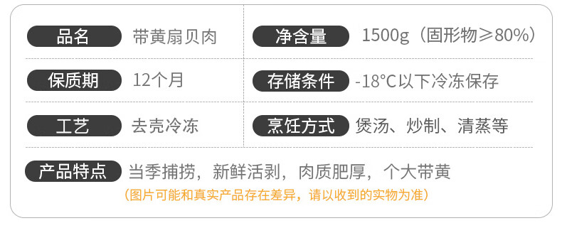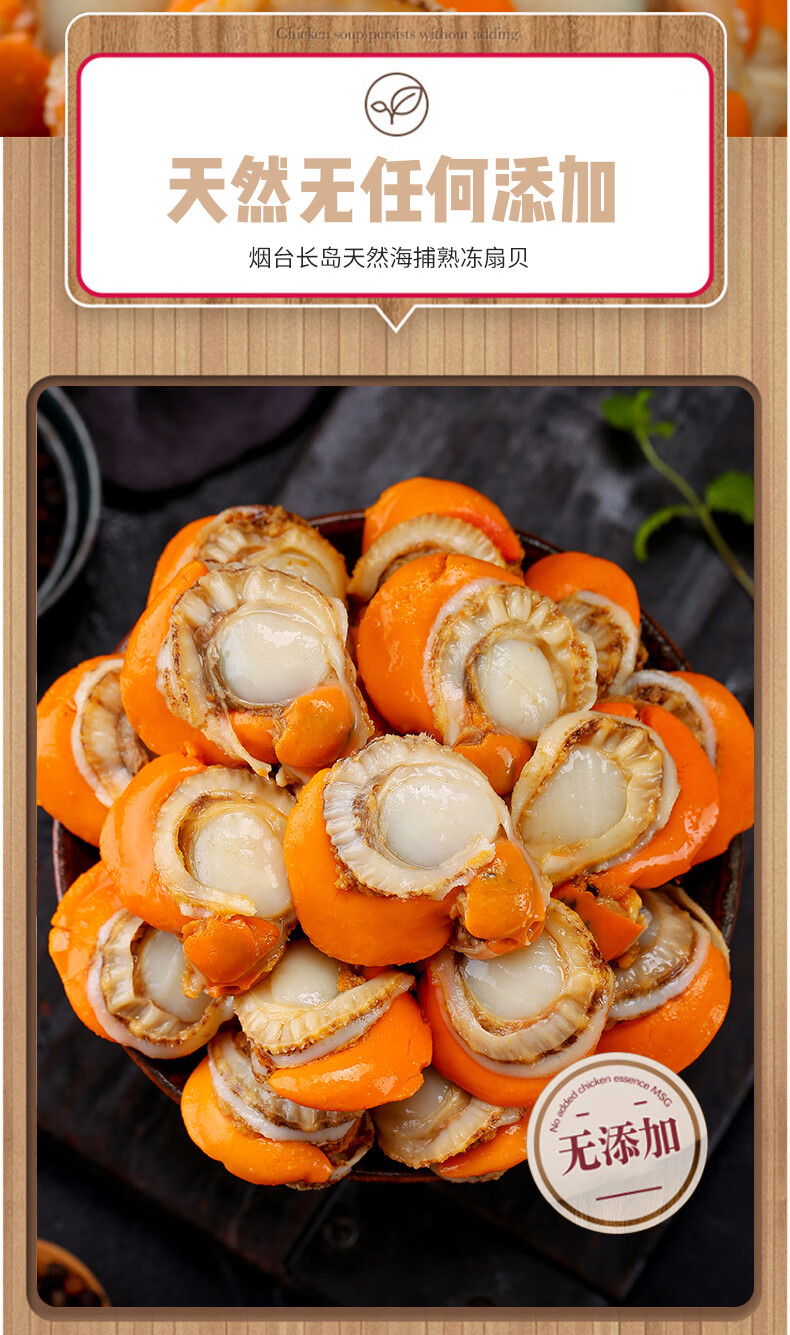 一虾一世界冷冻大号带黄扇贝肉 无沙蒜蓉粉丝扇贝去壳去沙 海鲜火锅烧烤食材 大号扇贝肉500g*3袋【40/60规格】